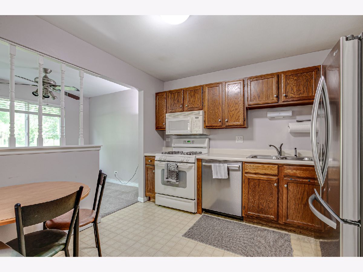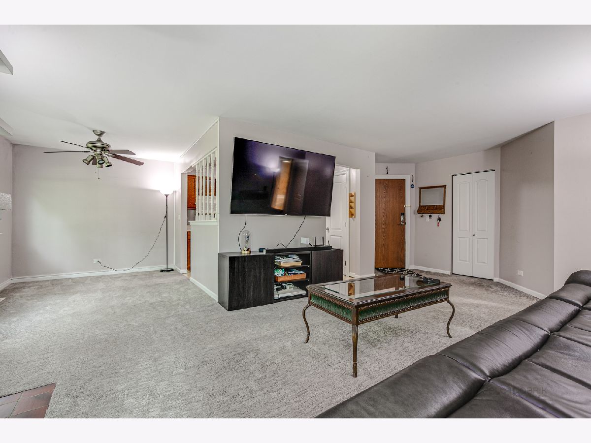 Rarely available open and airy Lexington in the Park coach Home on first floor, interior, end unit location! An abundance of large windows provides panoramic views of the park-like landscape with mature trees and green space. Spacious, bright bedrooms, eat-in kitchen, FULL size W/D in Laundry Room, beautiful brick fireplace, walk-out private patio perfect for Summer nights and entertaining! Updated bathrooms, newer windows, all newer doors throughout. Washer, Dryer, carpet, paint -2017. Dishwasher, refrigerator - 2020, HWH - 2022. Ivy Hall, Twin Groves, Stevenson High School. Close to schools, shopping, golf course, Buffalo Creek Forest Preserve for hiking, running and fishing.