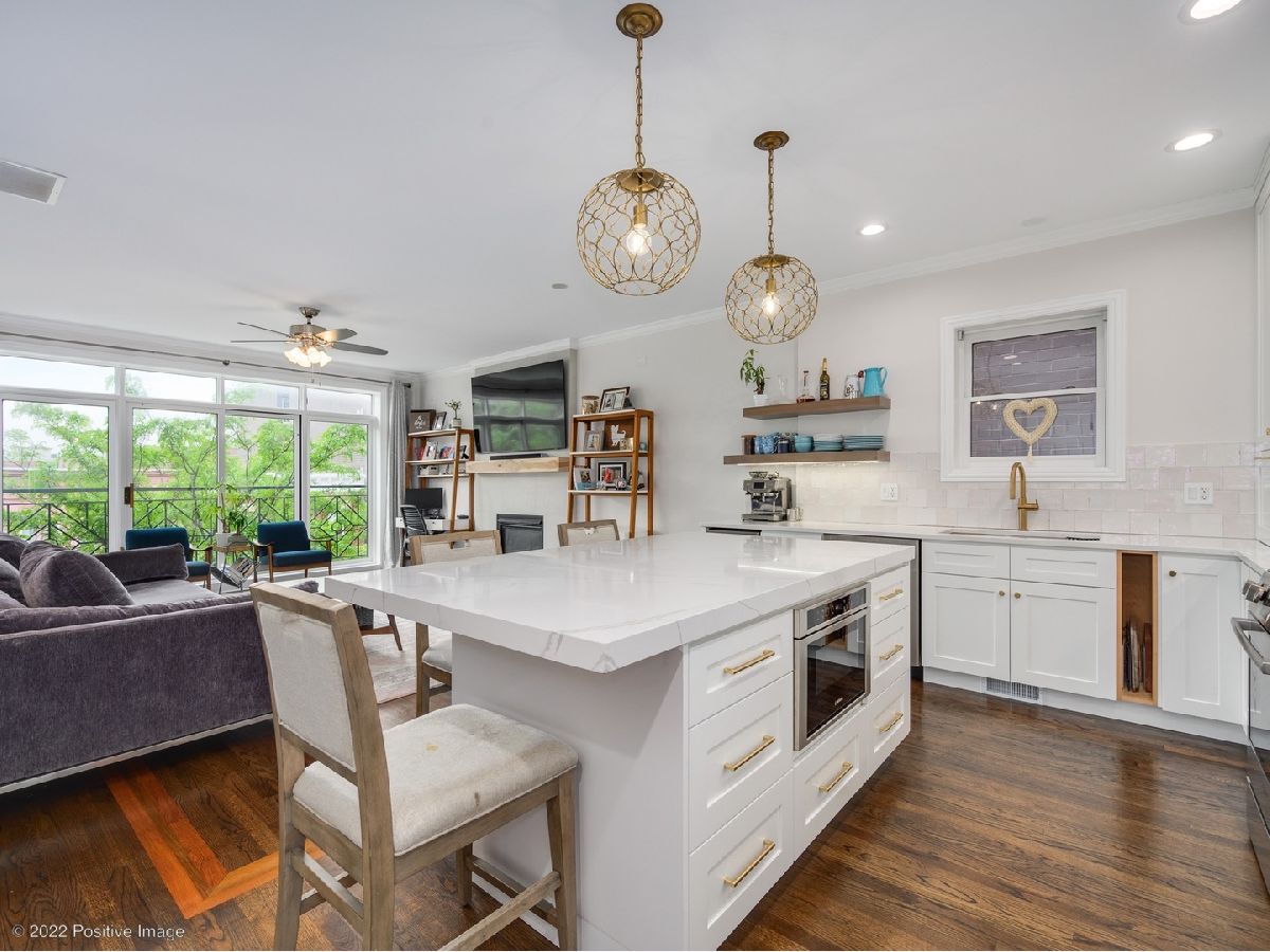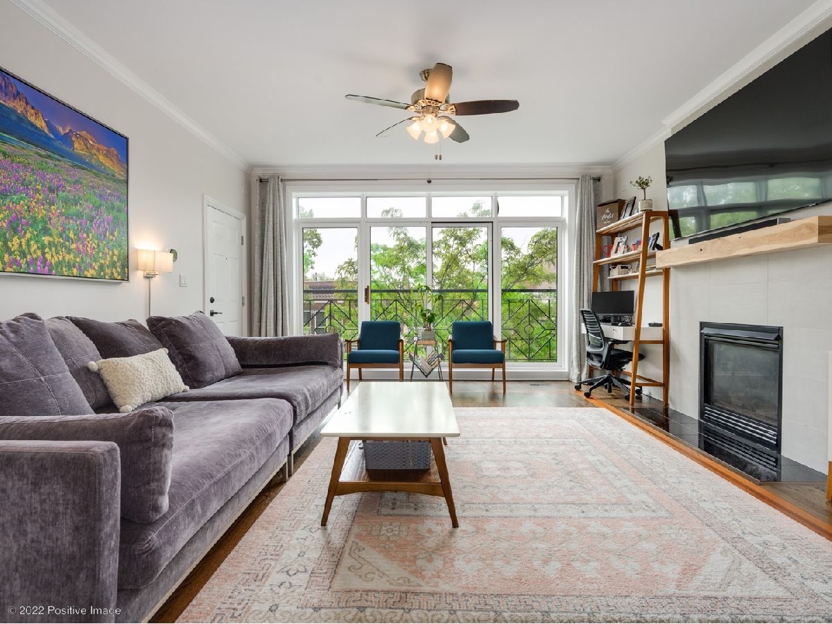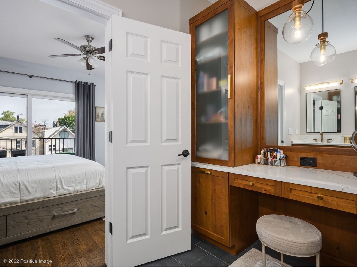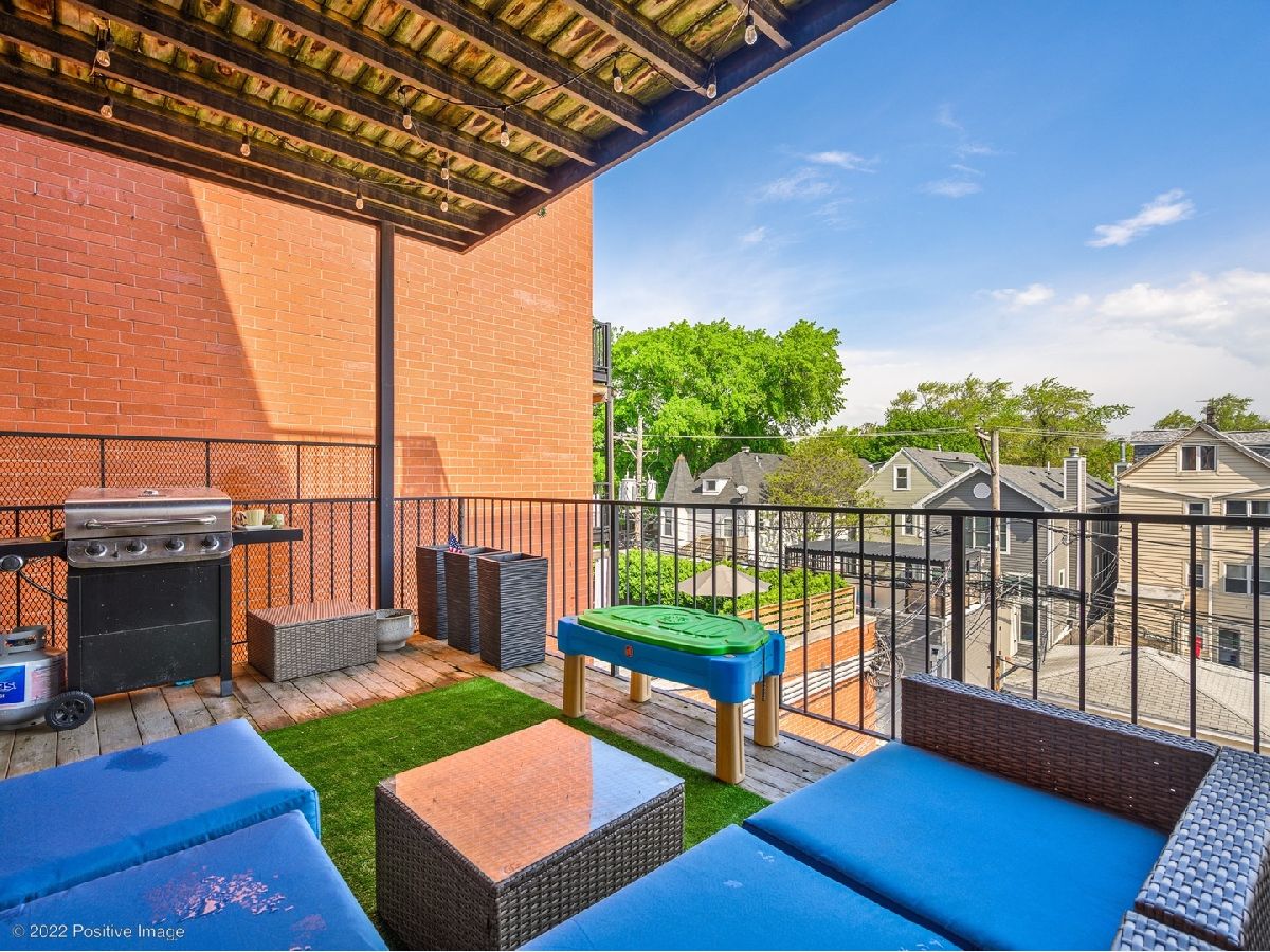 Craftsman quality newly renovated (2021) 3 bedroom 2 bath in the heart of Roscoe Village! Luxury throughout- coffee stained hardwood floors, crown moldings, fire place, new washer/dryer. Kitchen boasts stainless steel Bosch appliances, semi-custom cabinets, custom range hood, granite countertops and deep sink. Spacious living area with fire place and space for formal dining area. Primary suite with walk-in closet, attached spa quality walk-in shower and custom vanity. All bedrooms are generous size. Private deck perfect for entertaining. Covered parking space included in price. Prime location steps to Roscoe Village restaurants, shops, night life. Well maintained all brick building in Award winning Audubon school district.