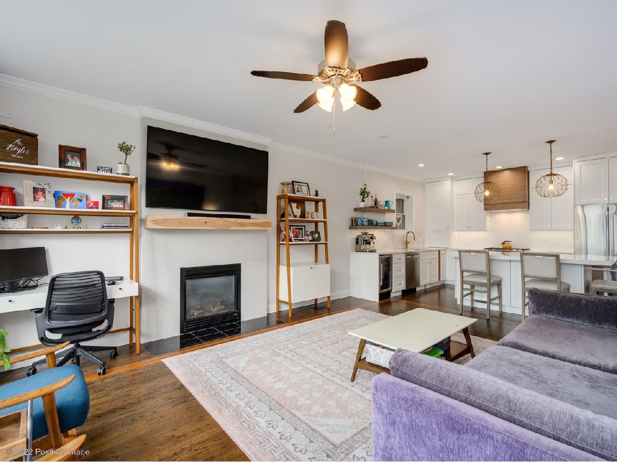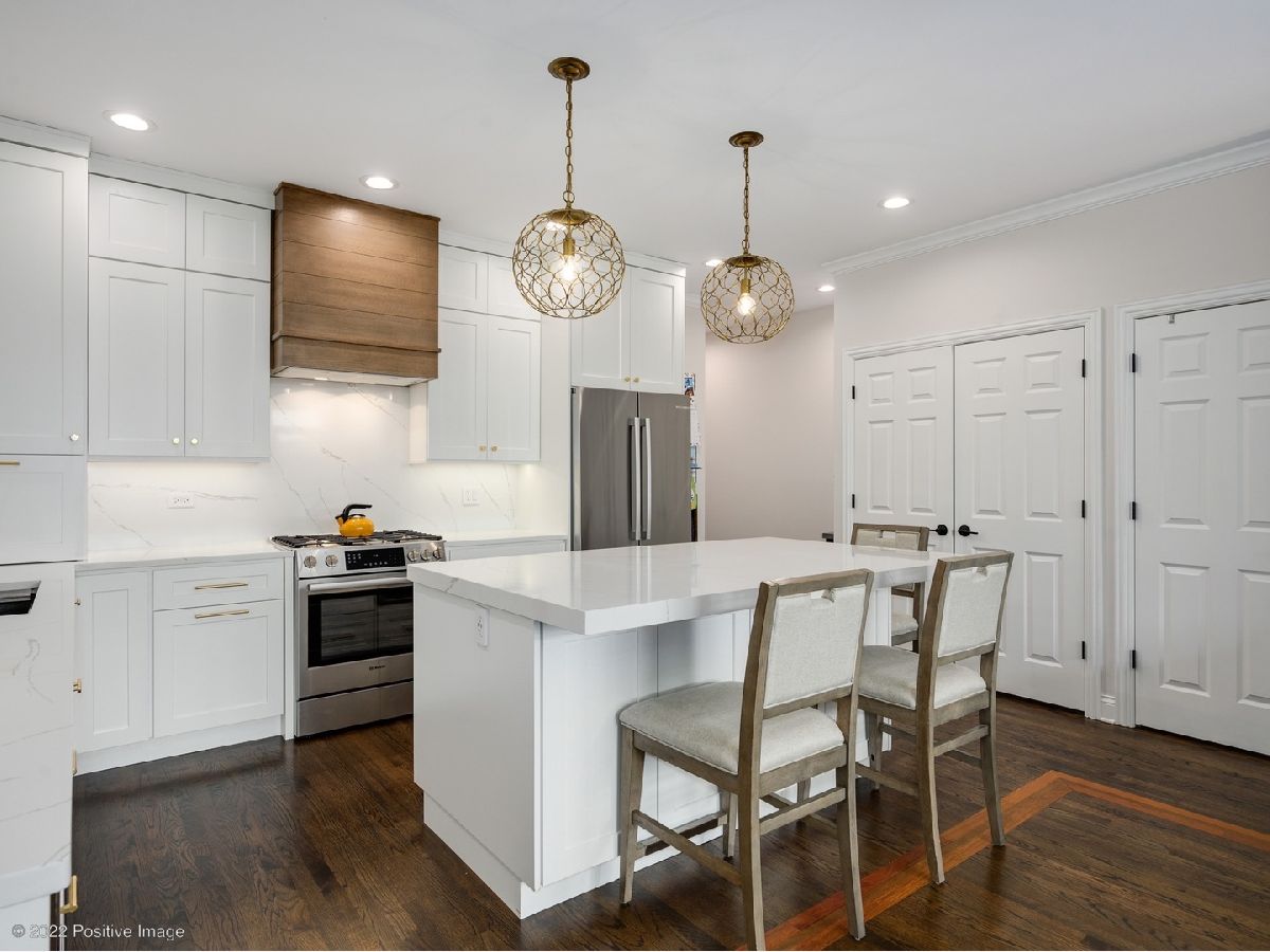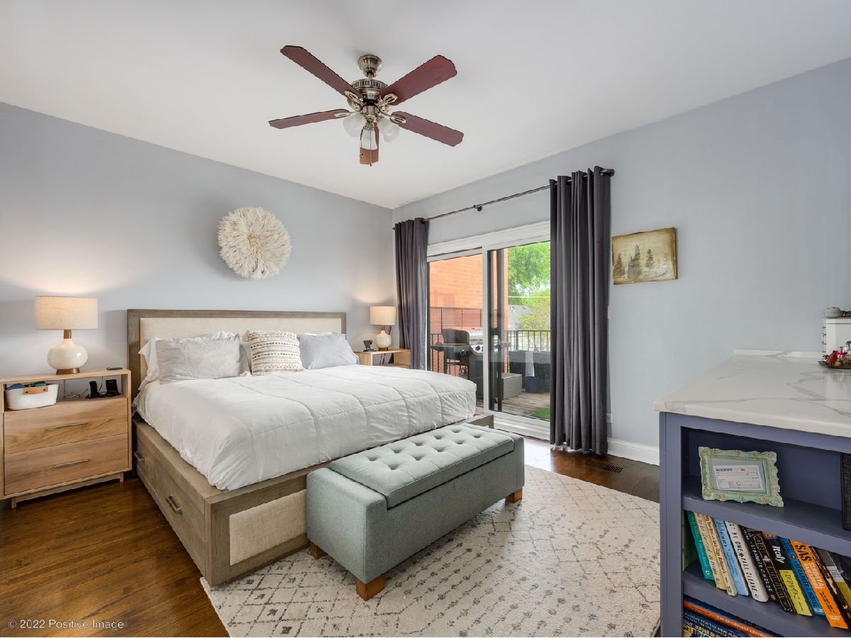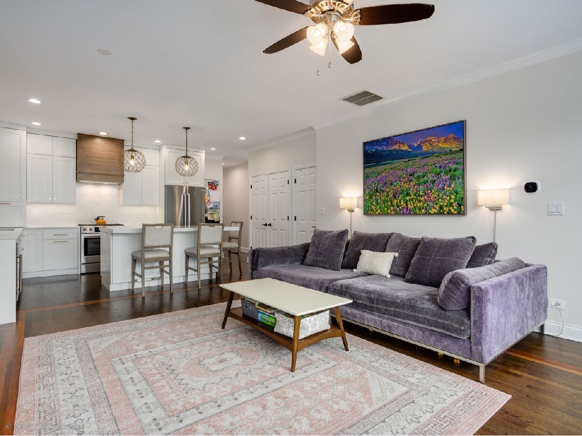 Craftsman quality newly renovated (2021) 3 bedroom 2 bath in the heart of Roscoe Village! Luxury throughout- coffee stained hardwood floors, crown moldings, fire place, new washer/dryer. Kitchen boasts stainless steel Bosch appliances, semi-custom cabinets, custom range hood, granite countertops and deep sink. Spacious living area with fire place and space for formal dining area. Primary suite with walk-in closet, attached spa quality walk-in shower and custom vanity. All bedrooms are generous size. Private deck perfect for entertaining. Covered parking space included in price. Prime location steps to Roscoe Village restaurants, shops, night life. Well maintained all brick building in Award winning Audubon school district.