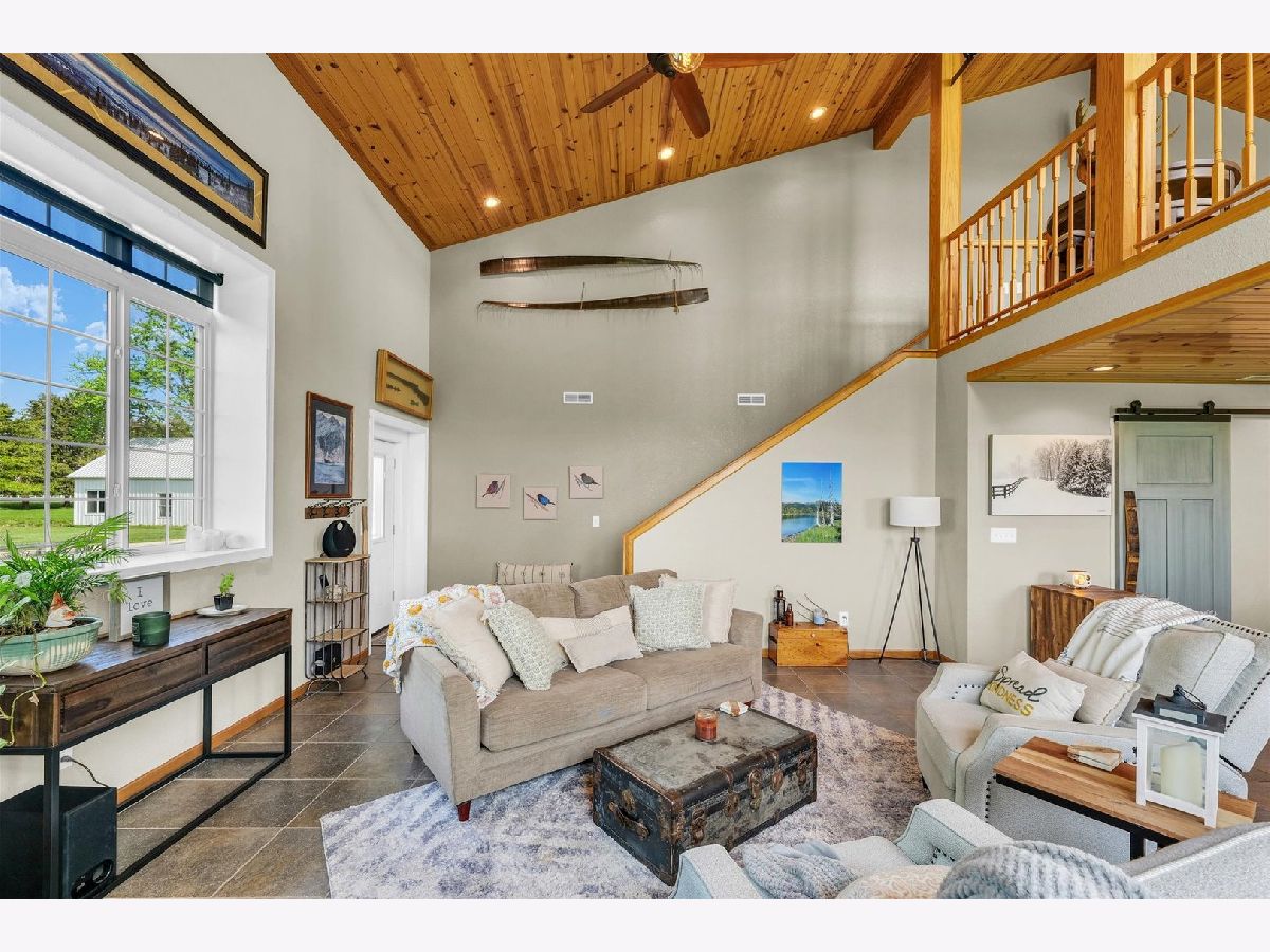 Endless possibilities await with this spectacular custom-built Graber 54' x 88' pole building home! Offering 2,400 sq. ft. of living space, the open-concept design features a spacious living room and kitchen adorned with beautiful Schrock cabinetry, custom windows and blinds, and a cozy wood pellet stove fireplace. The home includes two bedrooms, two full baths, and a generous loft area perfect for additional living or office space. The attached 3,500 sq. ft. garage/shop area is ideal for any hobbyist or entrepreneur, complete with a 10' x 10' and a 20' x 20' electric overhead door. A completely remodeled guest house (2024) offers additional living space for family or guests, adding even more value. All of this is nestled on 5.61 beautiful acres featuring a serene pond stocked with bluegill, bass, and catfish. A rare opportunity you won't want to miss-call today to schedule your private tour!