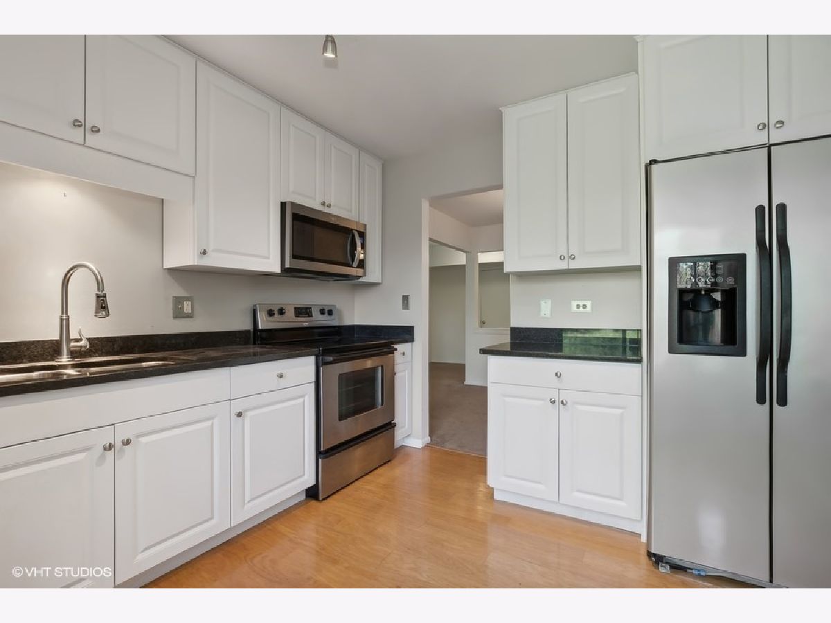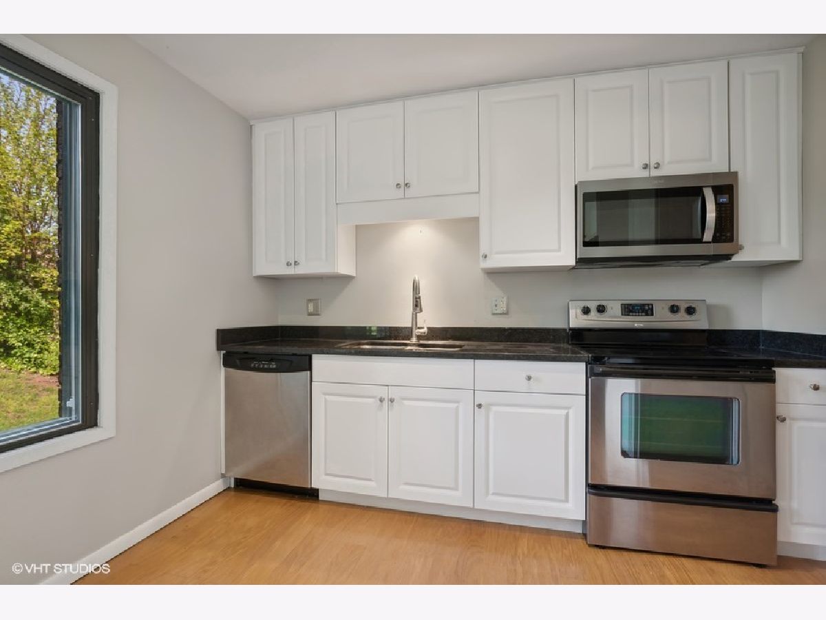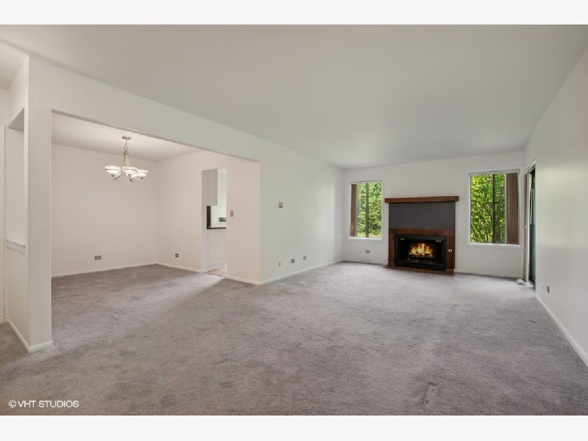Welcome to this stunning and rarely available first floor, 3 bedroom, 2 full bath condo that boasts a range of new upgrades. Brand new AC condenser and hot water heater installed in 2024. This modern comfort and stylish condo is in sought after Oaks at Green Trails subdivision. Entire interior has been freshly painted and all new carpeting throughout. The living room features a cozy gas fireplace and a sliding door to a serene concrete patio, perfect for relaxation. The dining room provides a versatile space for gatherings. The remodeled eat in kitchen boasts hardwood floors, granite countertops, and stainless steel appliances for a stylish and functional cooking area. Convenience is ensured with an in unit laundry room, the resilient vinyl floors and a new dryer from 2023. The full hall bath has been updated with a new bathtub and subway tile. The primary bedroom includes double closets and a fully remodeled primary bath in 2022. Another bedroom offers a double closet, while the third bedroom features a sliding door to a tranquil private patio. Additional features include a one car attached garage for parking convenience. Enjoy the outdoors on the patio with picturesque views of the walking path. This beautiful condo offers inviting space for relaxing and entertaining. Wonderful amenities include the parks, bike trails, soccer fields, and tennis courts. Near the Metra train station, shopping, dining, and schools. Home attends Naperville North 203 school. See this beauty soon!