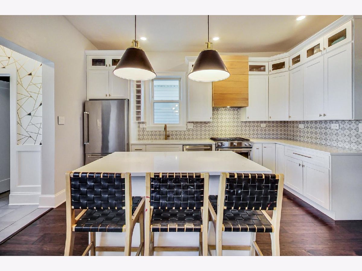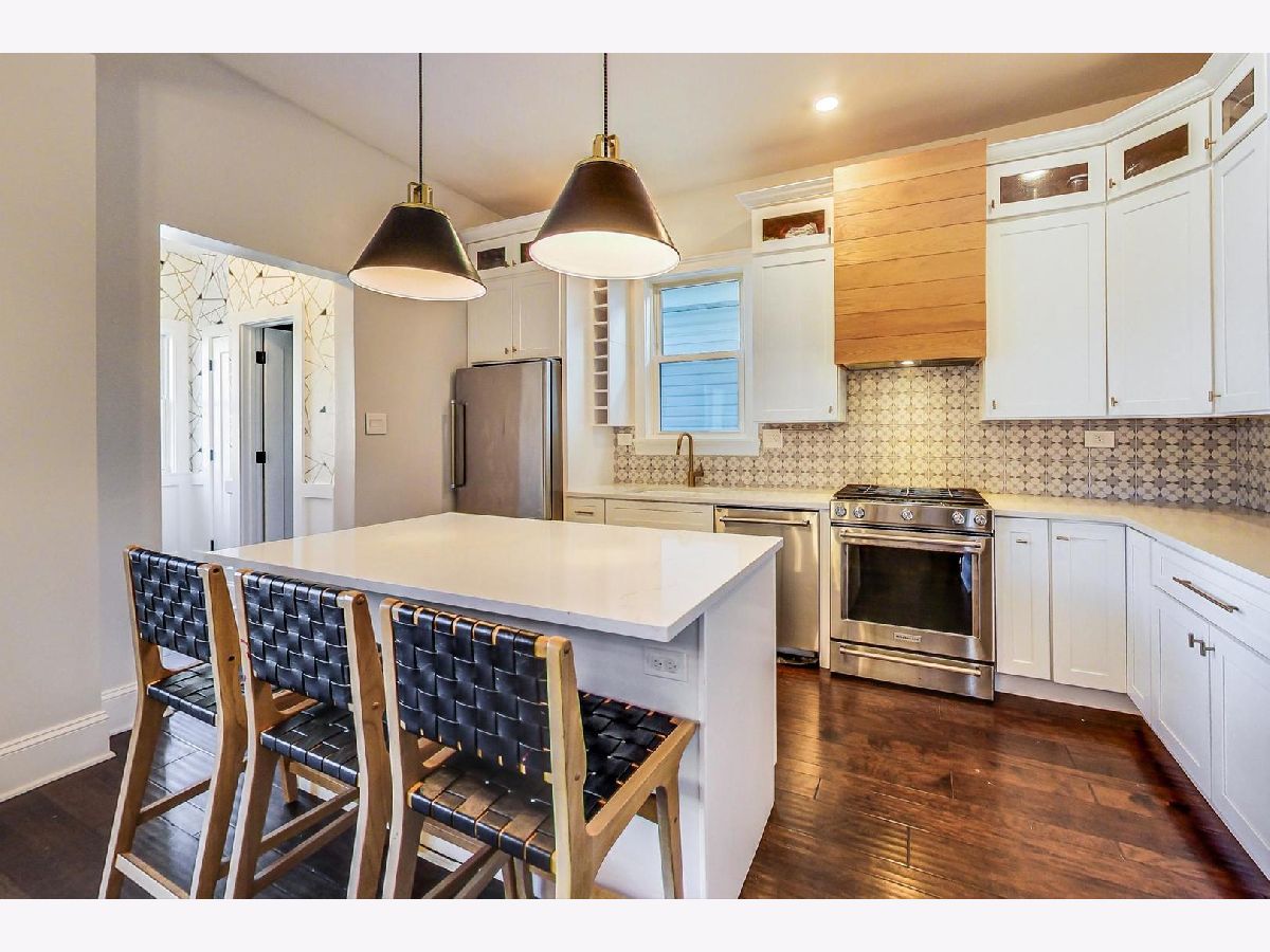 Welcome to a new Logan Square gem! This house has gone through a complete transformation over the past few years into a beautiful, stylish and comfortable new home. Walk into a lovely foyer space with a brand new staircase lined with classy wainscoting. To the left is a bright open living room with newer bay windows. Move into the spacious dining room next to a sliding door to the back yard for easy grill access. The completely renovated kitchen is the pinnacle of this floor. This open concept kitchen has white shaker cabinets, quartz countertops and stainless appliances, while the custom wood range hood and tasteful patterned backsplash warms up the look and feel of the space. Adjacent to the kitchen is a coveted mudroom with huge pantry and powder room. All of the flooring and subflooring on the main and second levels have been replaced with beautiful Mohawk engineered hardwood. Upstairs you will find 3 spacious bedrooms and newly updated bathroom. The shower space has 3 shower heads including a huge rain shower and a deep soaker tub for complete relaxation! The finished lower level features a cozy den space, additional bedroom, full bathroom and washer/dryer and a huge storage room. The huge yard is ready for your summer barbeques. 2 car garage. Close to everything Logan Square has to offer...Kennedy express way, Blue line, terrific restaurants and shops, Sunday Farmer's Market and close to beautiful Historic Logan Boulevard!