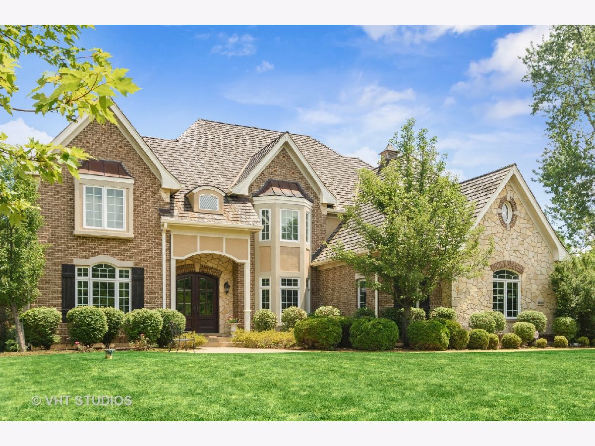 If you are looking for a large, well appointed home with high end finishes in Stevenson High School district, you must see this home! This 6 bedroom, 4.2 bathroom brick and stone home, custom built on a quaint cul-de-sac boasting 1.23 acres of land, won the Lake County Tour of Home Award in 2007. Step into a bright and open foyer with two story vaulted ceilings; flanked by a formal living and dining room. The dining room has been thoughtfully designed with elegant trimwork, wainscoting, an indoor sound system and a nearby dry bar. French doors off the foyer leads into the dedicated study room - a private space that elevates the work from home experience. The gourmet chef's kitchen was designed by Abruzzo and features custom Wood-Mode cabinets with open shelving, a contrasting granite top island with four-seater breakfast bar and prep sink that serves as the heart of the kitchen, a design-integrated Subzero fridge, a six burner Wolf range, and a breakfast room that overlooks the lush, green backyard. Just off the breakfast room is the first floor laundry and mudroom, with a built-in coat racks and bench. A rustic stone fireplace, with firewood storage, adds warmth to the family room during the colder months. In the warmer months, fire up the grill and dine al fresco with friends and family on the backyard stone patio. Rest and relax in a spacious master suite with vaulted ceilings, a balcony and spa-like ensuite bathroom with wood tile, Wood-Mode cabinets, double vanities, a Jacuzzi and separate glass door shower. A second laundry room with matching Wood-Mode cabinets completes the upper level of the home. The fully finished basement houses two bedrooms, one full bathroom. Additional property features include: dual zone heat/AC, 2 electrical panels with 200V each, 3 car garage, in-ground sprinkler system and indoor sound system in the dining room, breakfast room and throughout the basement.