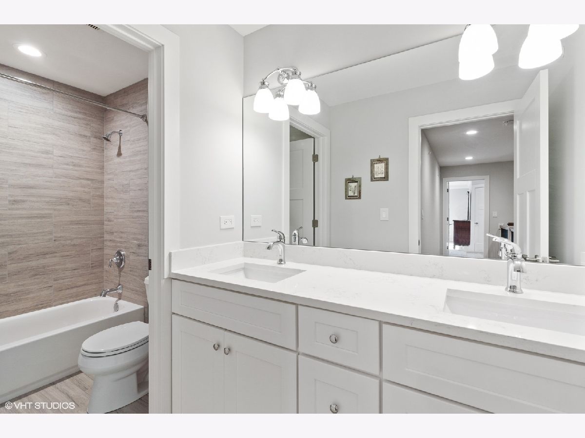 Walk to downtown Westmont from this 4 year old, 2 story duplex! Equally distanced between the Downers Grove Fairview Avenue train station and the Westmont train station, this high quality construction with stone detail and brick has a private, fenced in front yard! Enter the large, open concept living room with corner fireplace. Roll out the holiday cookie dough and serve on the extra-large granite kitchen island! Lots of kitchen counter space, white shaker style cabinets and SS appliances are complemented by beautiful wood floors which span the entire main level. A convenient and good-sized entry from the attached 2 car garage leads you to a main floor bedroom/office. The top floor has 3 bedrooms, laundry room, a full bath for guests and a master bedroom with dual closets. The private master bath is complete with soaking tub, over-sized shower stall and double sinks. This home has 9 foot ceilings on the main floor and also in the basement. The home is wired for entertainment and security. NO HOA fees!