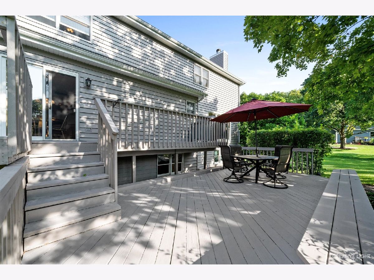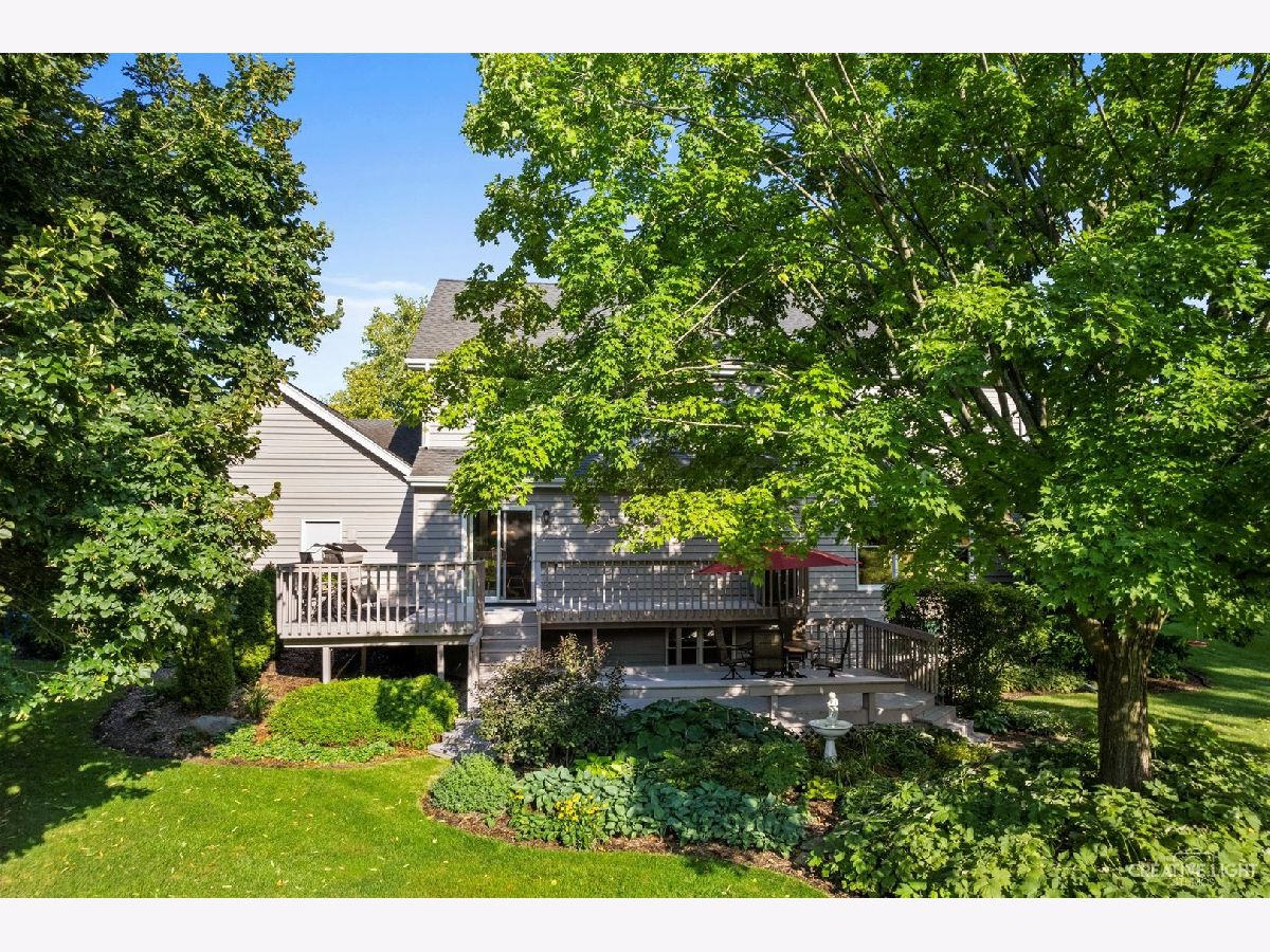 Perfectly situated on a tree-lined lot in Sleepy Hollow's desirable Deer Creek neighborhood. This 4 bedroom, 3.1 bath semi-custom home sits on a .63 Acre Lot, and is conveniently located near Randall Road, I-90, shopping and Big Timber Metra Station. The spacious first floor boasts hardwood flooring and crown moulding in every room, large floor to ceiling windows, and a brick fireplace. The newer kitchen remodel features stainless steel appliances, an eat-at island and more. The two-tier deck overlooks a shaded, park-like lot that has been professionally landscaped. Enjoy making s'mores around a private - custom fire pit, or relax on the spacious covered front porch. The second floor offers a primary suite with a large walk-in closet and private bathroom with large skylights. Three additional bedrooms with ceiling fans and a second full bathroom with skylight complete the second floor. The open, lookout basement is fully finished with newer carpet, a separate entertaining space, two additional rooms, a full bathroom, and a storage room with built-in shelving. The large 3 car garage has additional attic storage, and a door to the dog run. Additional features include Anderson Windows, CertainTeed insulated siding (2017), two smart double layer steel/insulated garage doors with lifetime paint guarantee (2017), new exterior lighting (2017) and a newer high efficiency furnace and air conditioning. Plenty of space to entertain or to simply relax and enjoy nature.