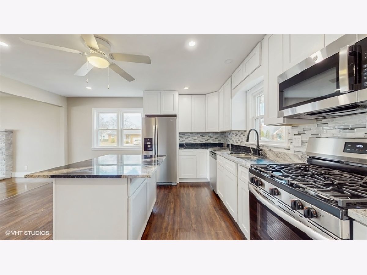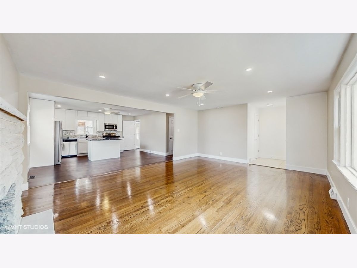 Welcome to this beautiful, renovated home, where comfort and style balance perfectly. This 2025 renovation combines modern upgrades with timeless charm. The open-concept layout welcomes you into a bright, airy living space featuring a cozy brick fireplace and large windows that bathe the room in natural light. The gourmet kitchen, perfect for both cooking and entertaining, boasts a generous granite island, upgraded cabinetry, and premium stainless steel appliances. Elegant hardwood floors and neutral paint tones throughout create a warm and inviting atmosphere, enhanced by recessed lighting that flows seamlessly through the entire home. The main floor offers three generously sized bedrooms and two full baths, providing comfort and convenience. The fully finished basement features a second brick fireplace and opens up a world of possibilities, with a multi-use room ideal for a home office or gym, a third full bathroom, a dedicated laundry area, and plenty of storage space-perfect for family and guests to enjoy. Step outside and unwind in the charming three-season room /enclosed patio that overlooks the backyard. The oversized attached garage, with an extended driveway, offers additional parking space for your convenience. Beyond the beauty and comfort of this home, it also features a new roof, new high-efficiency windows, new siding, new gutters, and new doors. Also, the seller will provide certifications for the A/C, fireplaces, furnace, and electrical systems, ensuring working condition and peace of mind. Nestled on a spacious corner lot, this home is ideally located with easy access to major highways, shopping, and both private and public schools. Just 36 minutes from downtown Chicago, it offers a vibrant and convenient lifestyle. Property sold AS IS. Don't miss out on this opportunity!
