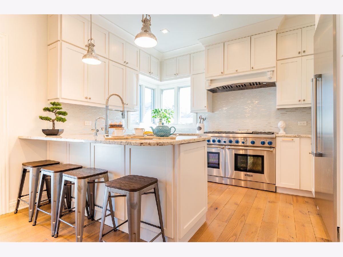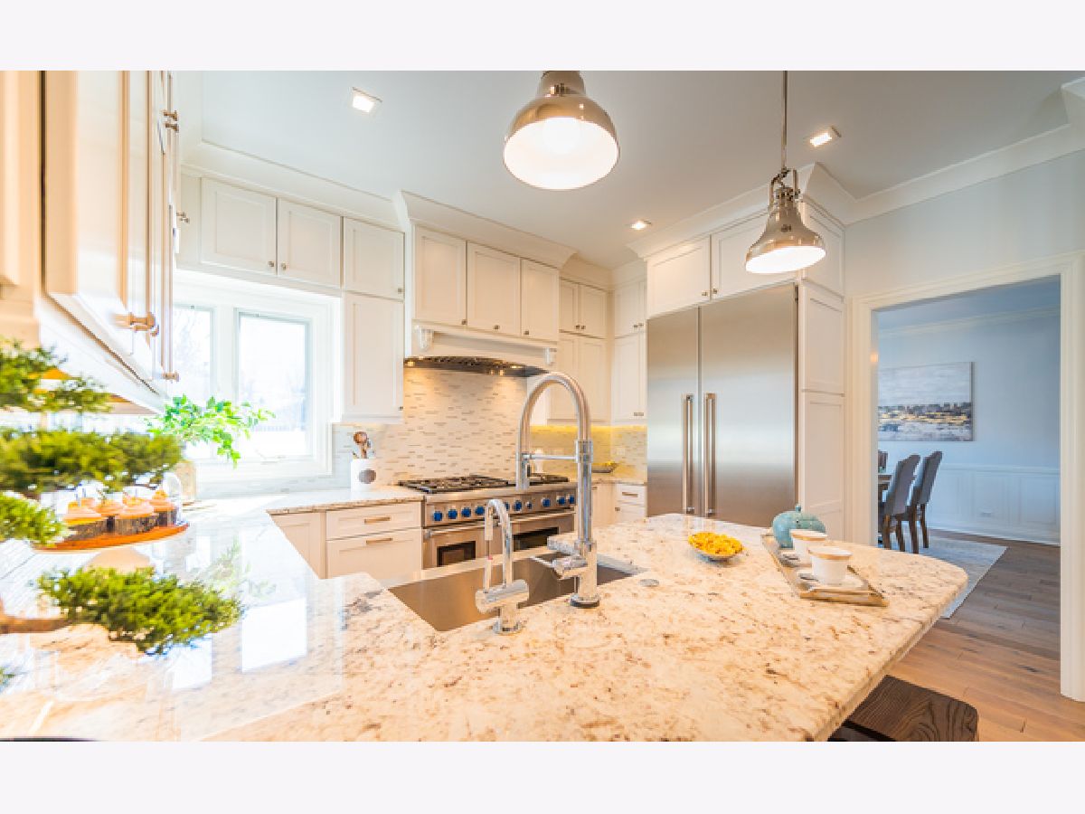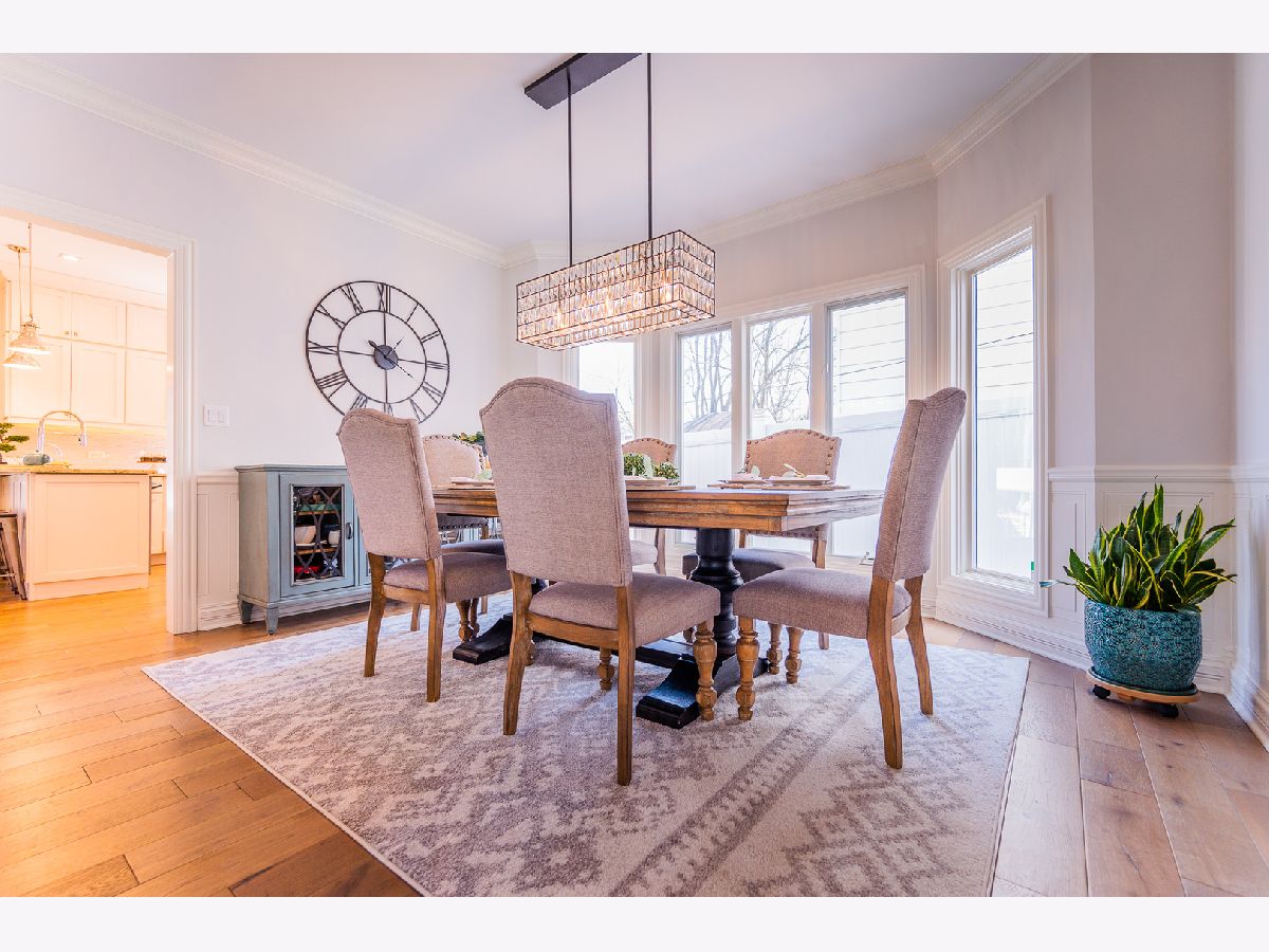 Location location! Amazing recently remodeled 5 bedroom, 4.5 bath transitional home on a quiet Hinsdale street. 4 levels of finished luxury abound with hand scraped hardwood floors, designer light fixtures, touch-less faucets, marble tile, large windows and custom wood trim throughout the house. Inviting formal living room with floor to ceiling windows and French doors opens to the family room with dry bar. Kitchen peninsula with granite counters, tile backsplash, professional Thermador appliances, sunny breakfast area. Stylish open-concept family room with fireplace and kitchen overlooking the pretty backyard and patio. Master bedroom suite with high ceilings, a luxurious aromatherapy steam shower with build in speakers, heated floors, soaking tub and huge walk-in closet. Large lower level rec room, bedroom, full bath, workout room, wet bar and wine cellar. Enjoy the paver patio and spacious fenced-in yard. Attached garage. Easy walk to town, train, pool and schools. Check out the virtual tour!