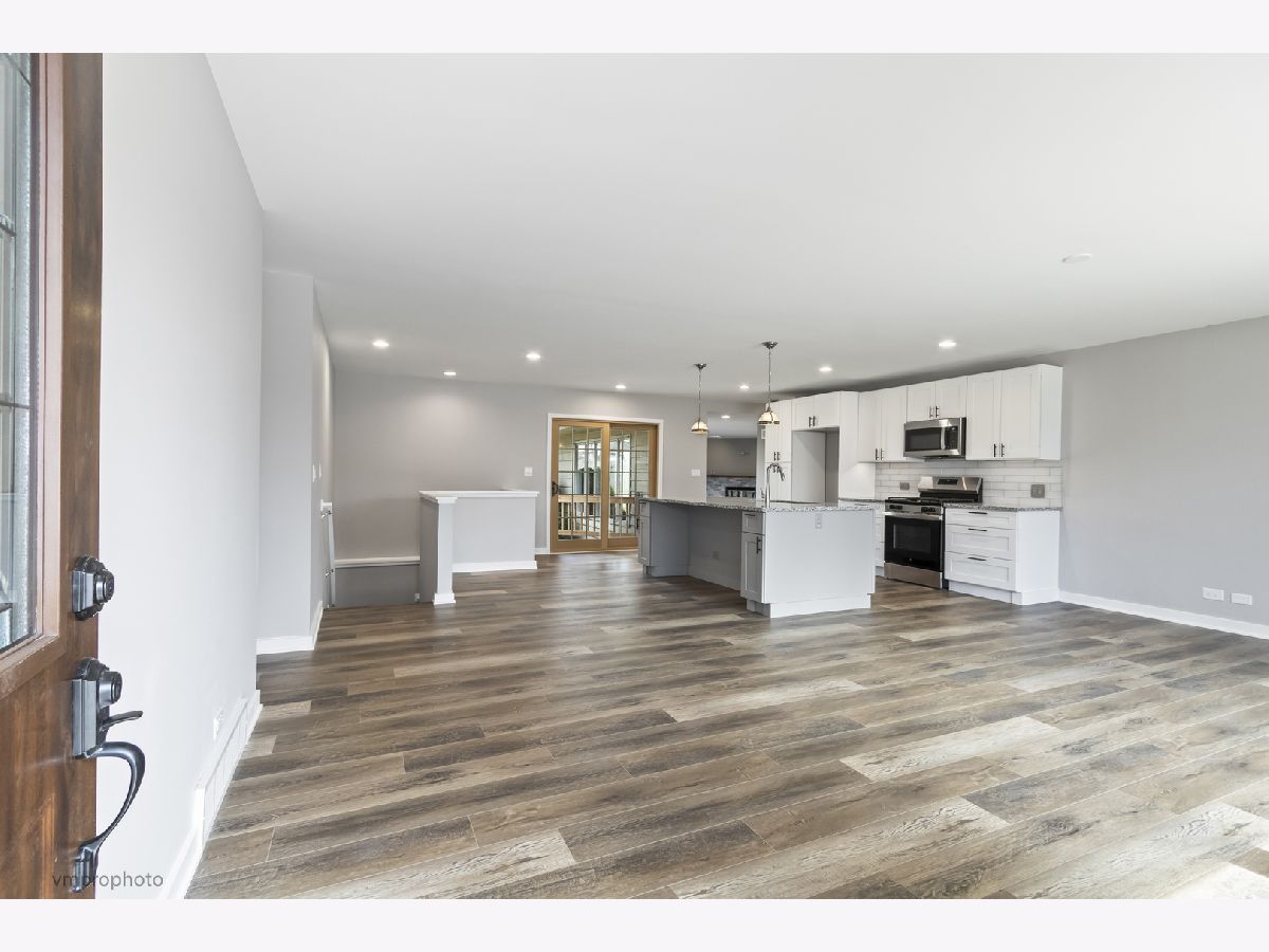 TOTAL RANCH REMODEL! This fabulous easy living spacious ranch is a quick walk to downtown Wauconda and Bangs Lake. A casual stroll will take you to the waters edge for lake fun, restaurants, well known wine/martini bars, DQ, antinquing, shopping, coffee shops, quaint bakeries and all the fun events that happen in downtown Wauconda. Gorgeous ranch has been COMPLETELY GUTTED with brand new Kitchen, all bathrooms, flooring, paint, refinished gas brick fireplace and so much more. The charming entry greets you with wide open views to the backyard through the new sliding glass door and focal point stunning fireplace in the rear Family Room. A showstopping Kitchen boasts custom soft close cabinetry, glistening granite countertops, task lighting, undermount farm sink, breakfast bar, large island and brand new SS appliances. The cozy breakfast nook is well placed and has a slider to a huge deck. The first floor laundry room is dreamy boasting a craftsman bench with cubbies below and above, specialty hooks and the powder room is tucked off the Laundry room & complete with a charming barn door. The cozy, yet spacious Family Room is adorned with multiple window lines taking in the private and maturely landscaped & fenced backyard. A custom painted brick fireplace has a beautiful mantel and gas logs for cozy winter nights. All the bedrooms have new carpeting and great closet space. The Primary Bedroom has a large closet with custom organizers and a brand new bathroom with elevated vanity and custom shower with glass doors and radiant heated flooring. The new hall bath has a tub/shower with custom tile surround and elevated vanity. The full basement is perfect for finishing and offers a ton of space for storage. The backyard is peaceful & serene giving you tons of space to play, garden and entertain and the charming shed is perfect for storing lots of things. The garage is very spacious and the driveway offers plenty of parking. This home is a hidden gem and as close to new construction as you can get, yet with charm and a mature landscape setting with an unbeatable location!