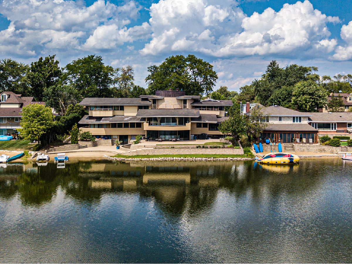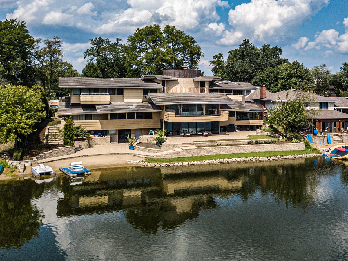 For lovers of the Frank Lloyd Wright Era "Mid-Century Modern" Home. Here is a work of art originally designed in 1962 by architect Don Erickson a student of the Frank Lloyd Wright era design period. The original architect then came back in the late 1990's to add a second level to this unique home which he drafted with precision in keeping with the original design and construction. This stunning home is located on beautiful Park Lake at the end of a private cul-de-sac with stunning lake views. The southern exposure brings in natural sun light all day long and glistens off the water. Estimated at approximately 7,400 square feet this home has 6 bedrooms, 6.5 bathrooms. There is a master suite on each floor with full master baths and walk in closets in both. The in-law suite/maid quarters in nicely tucked away on one side of the home for privacy. The kitchen features: maple cabinets, granite tops, large granite island, matching granite kitchen table, Wolf stove and fan hood, 56" Sub Zero Refrigerator, two Sub Zero wine coolers and ice maker, 2 Miele dishwashers, Wolf microwave and warming drawer, granite flooring throughout kitchen, dining room and foyer. The 2 story foyer is beautiful. The custom designed railing belongs in the Art Institute. This homes design takes full advantage of the incredible and beautiful views of Park Lake. There is a two tiered designed brick paver patio and second level terrace overlooking the water and your own private beach. Enjoy your lake year-round swimming, boating, fishing and ice skating. Home is located just a few blocks to award winning Carpenter Elementary School. There are many other features that you will just have to come and see to appreciate!