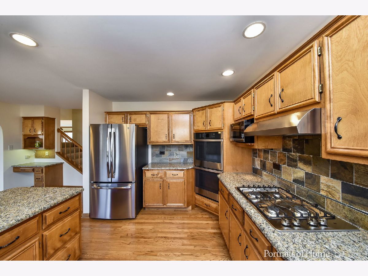 - REACTIVATED! Buyer could not obtain financing - Incredible Oakhurst home, spotless and updated! Nestled in a quiet cul de sac, within walking distance to the elementary school, parks, and Waubonsie Lake. Get cozy on your charming front covered porch! This sunny home boasts a large open foyer with unique split staircase, arched entryways and gleaming hardwood flooring in dining room, kitchen, hall, and all bedrooms! The spacious kitchen has been nicely updated with a brand new stainless refrigerator, range hood, cooktop and double oven! You'll love the amount of cabinet and counter space, granite counters, planning desk and pantry along with counter space for stools and great sized kitchen table area! The large family room will be a welcome relaxing and entertaining space with it's brick fireplace and built in bookshelves. Upstairs you will find 4 big bedrooms all featuring hardwood floors, ceiling fans and great closet space. The master suite has volume ceilings, walk in closet, new ceiling fan and recently freshened en suite bath with jacuzzi tub, separate shower and dual sinks vanity. The nicely finished basement will allow plenty of play and storage space and features a full bathroom with new quartz vanity top. Also, a very desirable feature we can't forget about the big 3 car tandem garage, spacious 1st floor laundry room too! This home has been extremely well taken care of and all the important updates have been taken care of already! 2020- Brand NEW stainless refrigerator, cooktop, range hood and double oven. Refinished back deck. Many rooms freshly painted. Carpets steam cleaned. 2019 - NEW siding, NEW roof, and exterior paint. NEW gutters and added insulation . NEW furnace. 2018 - NEW water heater. 2016 - NEW washer and dryer Quick close here - you can be home for the holidays!