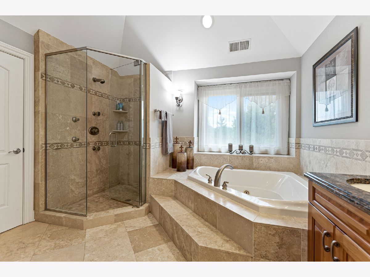 Prestigious custom home on almost an acre in award-winning Stevenson High School district and district 96. All brick home located on a private cul-de-sac for extra peace and quiet. Builder's own home with meticulous craftsmanship and high-end finishes. No detail spared. Brazilian Cherry hardwood floors. Chefs kitchen with Bosch/ Thermador appliances and built-in warming drawer. Oversized island with beverage center built in makes this perfect for entertaining. Open floor plan with a wrought iron double staircase makes this home perfect for anyone looking for an impressive home. Generous bedrooms including a luxurious master suite with sitting area. Master bathroom with radiant floors! Don't miss the full basement with exercise room, full bathroom and custom movie theater! The maintenance free trex patio through the kitchen is perfect for grilling. But if you are looking for more, enjoy the amazing private backyard outdoor living and entertaining space with brick paver patio, fireplace, and built-in grill. Speakers throughout the house and outside! Massive heated 3.5 car extended garage for extra storage with car lift. Irrigation system, Pella windows with integrated window treatments throughout, new air conditioner, and much more. Security system with cameras. Check out Matterport Virtual Tour. Don't miss out. Won't last long.