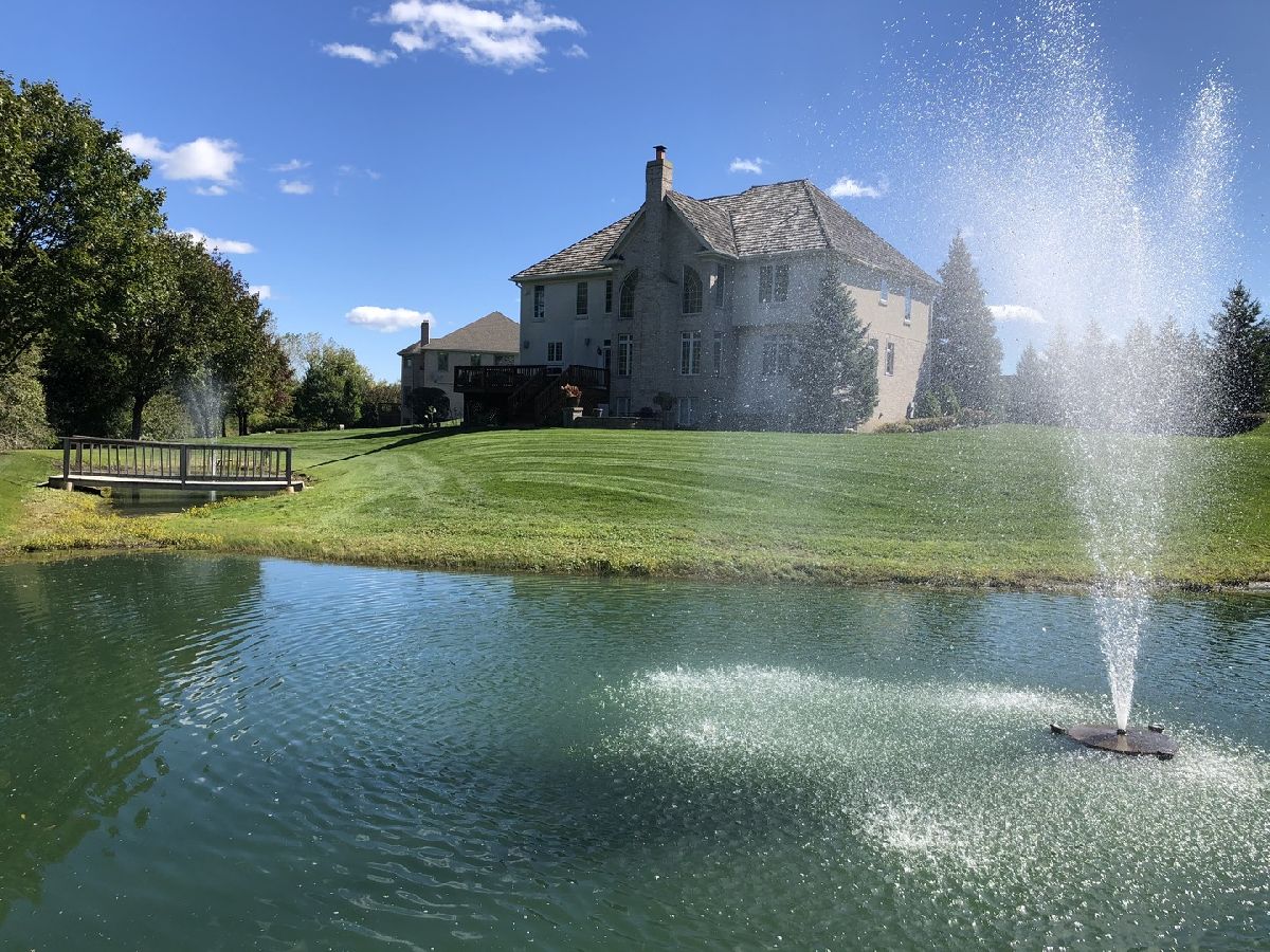 Masterful design and modern luxury are uniquely embodied in this 5 bedroom, 4.1 bathroom home spanning over 3,900sqft with finished basement and nestled on a serene pond in award-winning Stevenson High School district. Enter into your grand two story foyer with double-sided staircase and views into your formal living and dining room. Cook your favorite meals in your gourmet kitchen boasting stainless steel appliances including custom wood-paneled refrigerator, granite countertops, island with breakfast bar and second sink, abundance of cabinetry and eating area with exterior access and dry-bar. Enjoy gatherings in your two-story family room highlighting cozy fireplace and views into your kitchen - open layout is ideal for entertaining. Private office, half bathroom and laundry room complete the main level. Escape to your master bedroom through the double doors featuring vaulted ceiling, walk-in closet, two sink vanity, whirlpool tub, separate shower and private office or massive second closet. Three additional bedrooms, one with ensuite and two sharing a Jack&Jill bath adorn the second level. Finished basement presents 5th bedroom, full bathroom and recreation room with wet-bar and fireplace. Combine indoor and outdoor living in your peaceful backyard presenting large deck, brick-paver patio, pond with fountain and luscious landscaping. This home truly has it all! Welcome Home!