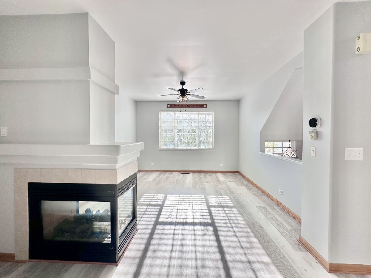Experience this stunning 2-bedroom, 2.5-bath Townhome with basement, featuring plenty of updates in the popular Wheatlands subdivision. Located in a PRIME area in much sough after Oswego East School District. As you enter, you're greeted by a two-story foyer that fills the space with natural light. The main level boasts a huge family room with 2-sided beautiful and a dining room with recessed lighting and modern chandeliers. The kitchen gorgeous with stainless steel appliances, resurfaced cabinets and quartz countertops and a dinette area by the patio door that leads to wooden balcony perfect for grilling and entertainment. Upstairs has 2 bedrooms with private full bathrooms. Master bedroom is a luxury suite with double door entrance, vaulted ceiling and walk-in closet and a standing shower. New soaker tub in the second bedroom with closet storage and a nice window. The lower level spacee is perfect for media space or recreation or versatile space for entertainment or as an office. Two car garage is a huge plus with ample storage. Situated in the esteemed D308 and close to transportation (Metra), shopping, dining, gyms, banks, and parks. This home offers maintenance-free living with snow removal and landscaping covered by the HOA. Quick close preferred!