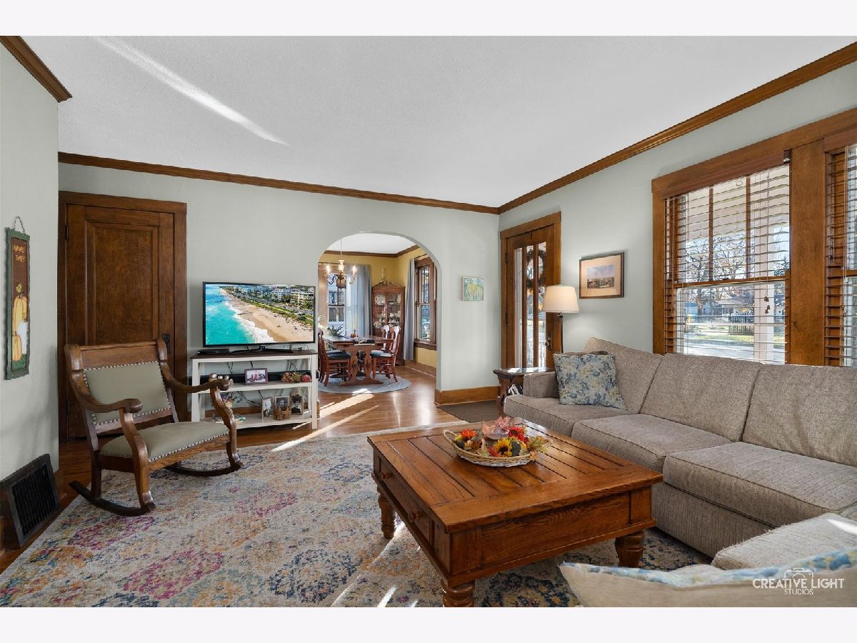 Fantastic and Beautiful Aurora University area bungalow can be your new home for the holidays! Who doesn't love a huge front porch? Especially in this neighborhood where neighbors love to walk around and enjoy the atmosphere. Warm and friendly layout, with plenty of charm and character. So much usable space, there is room for everyone! Large living and dining rooms make this an easy home to entertain in. The (updated in 2021) kitchen is large and features plenty of cabinet and counter space. All appliances are included! The primary bedroom is on the main level and features a walk in closet and private bathroom. Upstairs find 3 additional bedrooms, all very spacious and have abundant closet space. There is a full bathroom on the second level. The finished basement makes a wonderful family room, with it's cozy gas start wood burning fireplace. The exposed brick wall creates such a lovely accent wall. The laundry is also located in the basement. Nice yard with mature trees. There is a single car garage. Updates to the home include kitchen remodel in 2021, Front porch renovation in 2020, Roof and siding replaced in 2010, upstairs windows new in 2010. It's no secret that the AU area is one of the most popular areas to live in Aurora. Friendly neighbors, lovely homes, easy commute, Prisco's Market and so much more. Welcome Home!