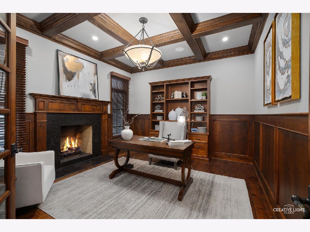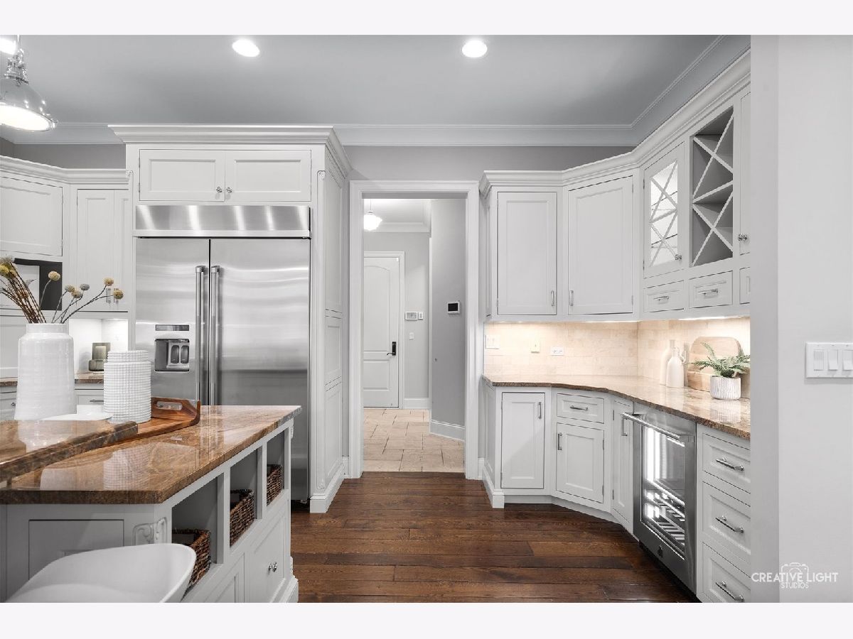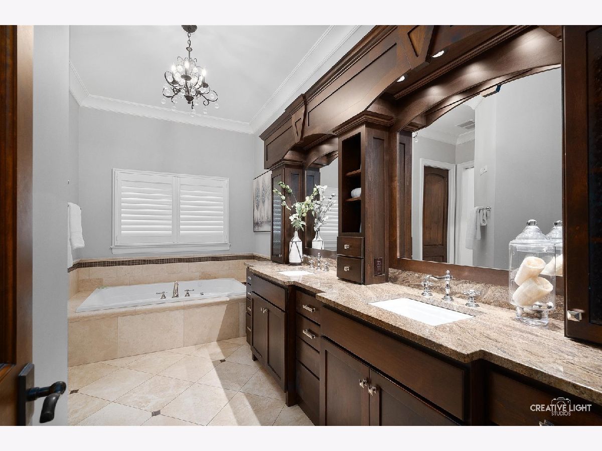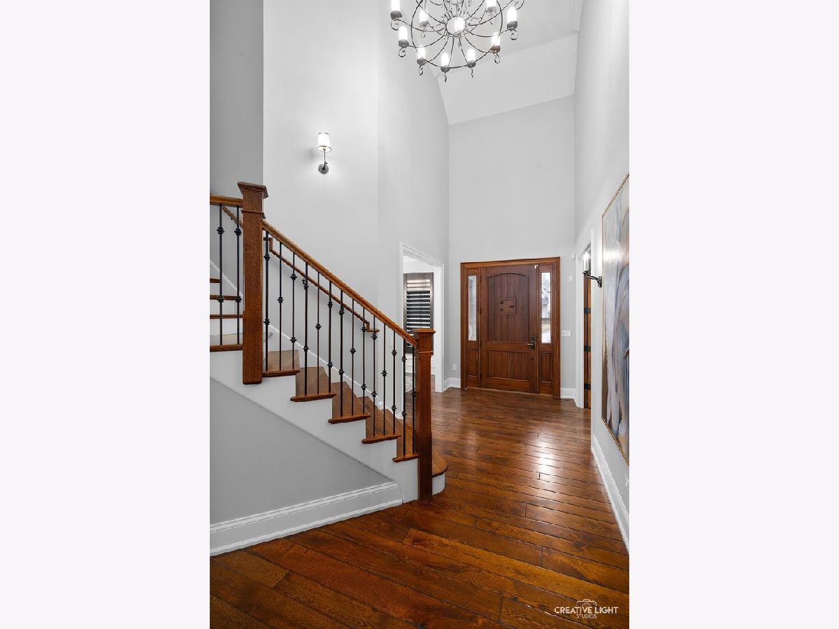 Exquisite Custom Home in the Heart of Naperville. Luxury, craftsmanship, and an unbeatable location-this Lenahan-built masterpiece offers it all within its more than 5200 square feet of finished living space. Situated just three blocks from downtown Naperville, this home places you steps away from renowned restaurants, boutique shopping, the scenic Riverwalk, Metra, and all three award-winning schools. From the moment you step inside, you'll be captivated by the extraordinary attention to detail. The grand foyer welcomes you with soaring 20-foot ceilings, an elegant designer chandelier with a convenient light lift, and a dramatic staircase with striking iron spindles. The craftsmanship continues throughout with oversized, custom trim work that elevates every space. The kitchen seamlessly blends function and elegance, making it a dream for both cooking and entertaining. Outfitted with commercial-grade stainless appliances, including a Jenn-Air refrigerator and beverage fridge (both new in May 2022) and a Bosch dishwasher (new in 2023), it features sleek granite countertops and a spacious center island with seating. Custom 42-inch cream-colored Bader cabinetry offers ample storage, complemented by a full-size pantry closet. A dedicated coffee and beverage bar adds extra convenience. The bright and airy dining area overlooks the new composite deck and a private, fully fenced backyard, creating a seamless flow between indoor and outdoor living. Enter the home's dedicated workspace through a pair of elegant French doors, an architectural detail that enhances the home's classic charm. Thoughtfully designed for both productivity and comfort, this inviting space features rich paneled walls, a coffered ceiling, and a gas fireplace with stone surround-making it the perfect setting for focused work. The open-concept family room is warm and inviting, anchored by a stunning limestone fireplace and custom built-ins illuminated by an expansive, statement chandelier that adds grandeur to the space. The first-floor primary suite is a true retreat, boasting a soaring 13-foot tray ceiling and a spa-like en-suite bath with heated floors. The custom walk-in closet is exceptionally designed, featuring a full-length mirror, built-in belt and scarf storage, four laundry hampers, drawers, open shelving, and abundant hanging space. Upstairs, three generously sized bedrooms each feature private en-suite baths and walk-in closets, offering both luxury and privacy. A cozy reading nook tucked into the second floor provides a quiet space to relax with a book or unwind. And then there's the lower level-an entertainer's dream. This professionally finished basement offers a custom bar with seating room for 8, mirrored bottle storage, dedicated wine storage, a double bowl stainless sink, and an ice maker. The game area includes a pool table, and a mounted flat-screen TV that will be conveyed with the home, while the recreation room is anchored by a gorgeous stone fireplace. A separate exercise space with gym flooring, a flex space that can easily be a 5th bedroom, a full bath, a mechanical room, and storage area complete this impressive space. The exterior facade is a stunning combination of stone, brick, and stucco, blending timeless elegance with modern durability. The three-car garage features an epoxy floor finish, adding a polished, high-end touch. Additional highlights include a Generac whole-house generator, a concrete driveway, and a rear paver patio to complement the fully fenced backyard. A complete list of this home's bespoke customizations and high-end finishes can be found under additional information once actively on the market. This is more than a home-it's a statement of refined living in the heart of Naperville.