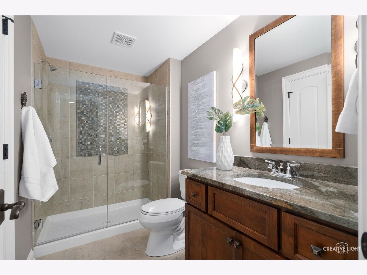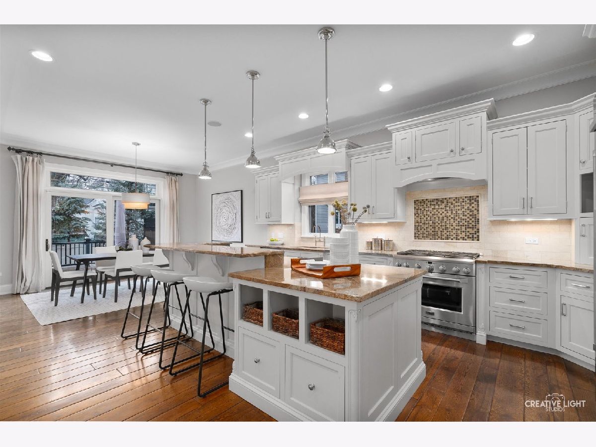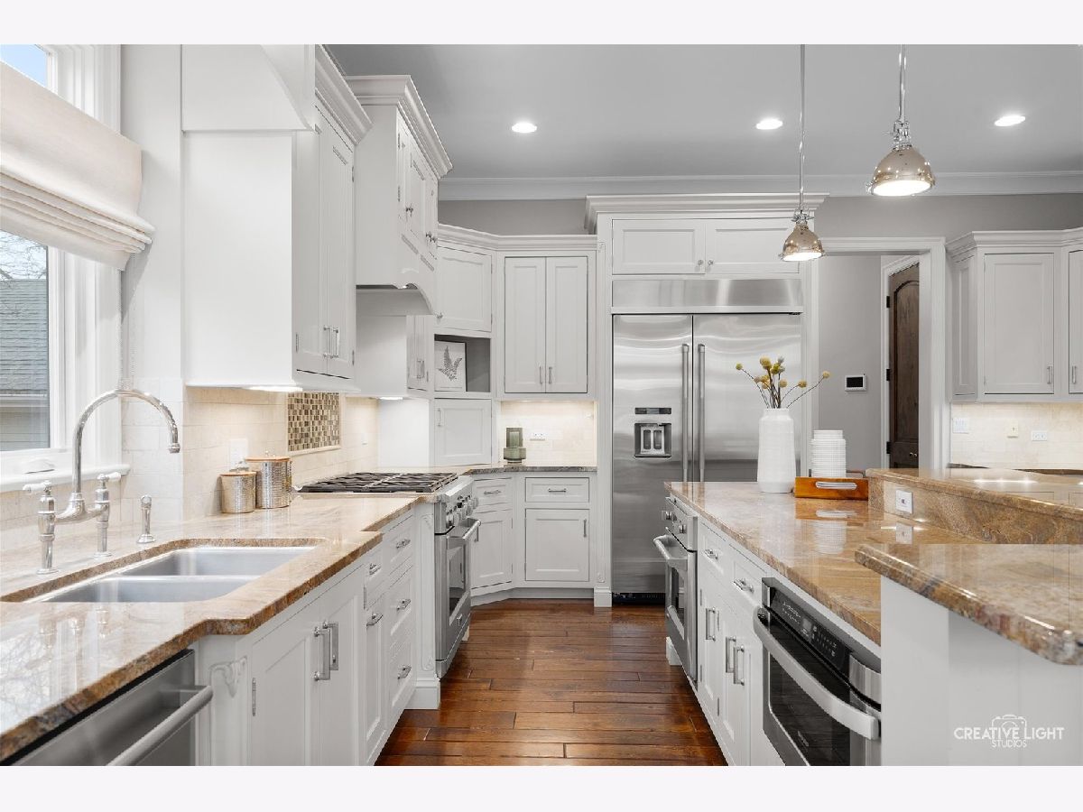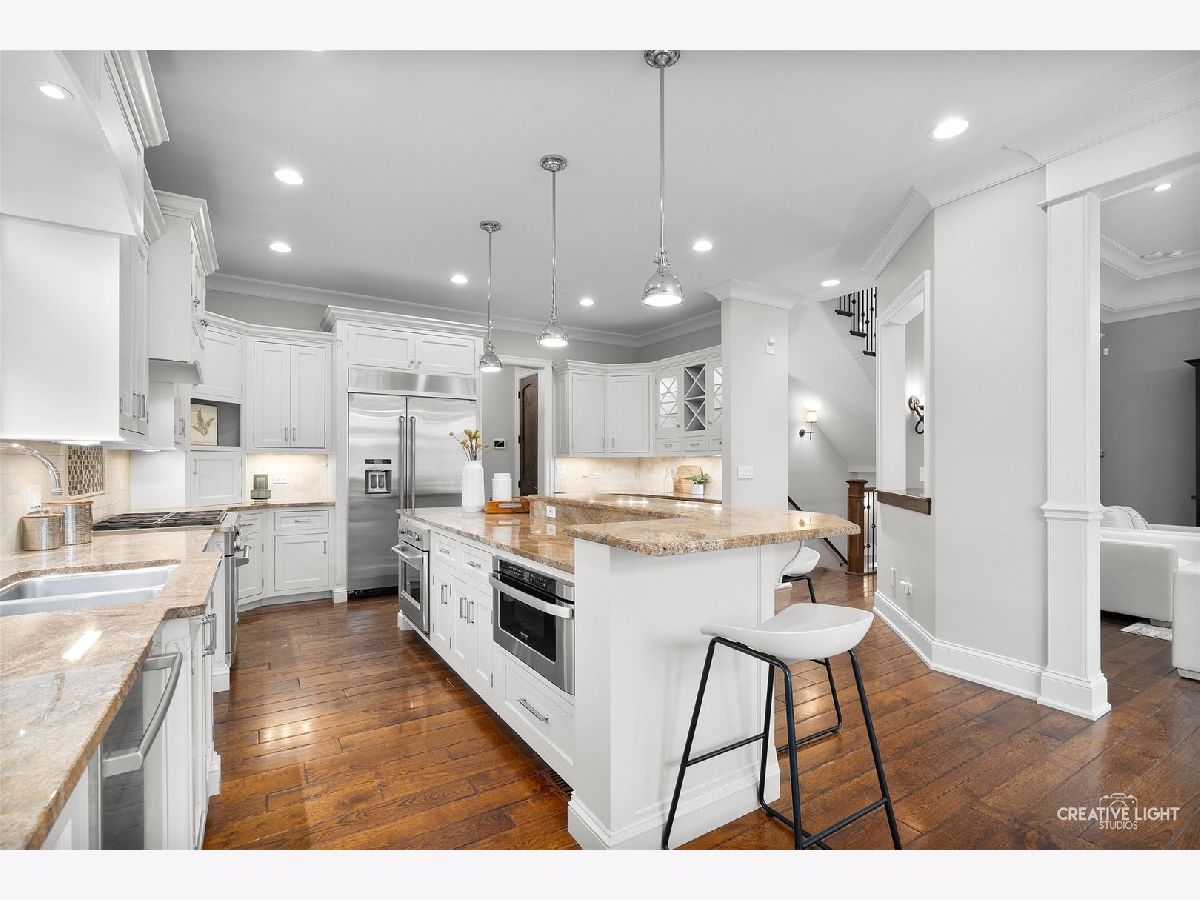Exquisite Custom Home in the Heart of Naperville. Luxury, craftsmanship, and an unbeatable location-this Lenahan-built masterpiece offers it all within its more than 5200 square feet of finished living space. Situated just three blocks from downtown Naperville, this home places you steps away from renowned restaurants, boutique shopping, the scenic Riverwalk, Metra, and all three award-winning schools. From the moment you step inside, you'll be captivated by the extraordinary attention to detail. The grand foyer welcomes you with soaring 20-foot ceilings, an elegant designer chandelier with a convenient light lift, and a dramatic staircase with striking iron spindles. The craftsmanship continues throughout with oversized, custom trim work that elevates every space. The kitchen seamlessly blends function and elegance, making it a dream for both cooking and entertaining. Outfitted with commercial-grade stainless appliances, including a Jenn-Air refrigerator and beverage fridge (both new in May 2022) and a Bosch dishwasher (new in 2023), it features sleek granite countertops and a spacious center island with seating. Custom 42-inch cream-colored Bader cabinetry offers ample storage, complemented by a full-size pantry closet. A dedicated coffee and beverage bar adds extra convenience. The bright and airy dining area overlooks the new composite deck and a private, fully fenced backyard, creating a seamless flow between indoor and outdoor living. Enter the home's dedicated workspace through a pair of elegant French doors, an architectural detail that enhances the home's classic charm. Thoughtfully designed for both productivity and comfort, this inviting space features rich paneled walls, a coffered ceiling, and a gas fireplace with stone surround-making it the perfect setting for focused work. The open-concept family room is warm and inviting, anchored by a stunning limestone fireplace and custom built-ins illuminated by an expansive, statement chandelier that adds grandeur to the space. The first-floor primary suite is a true retreat, boasting a soaring 13-foot tray ceiling and a spa-like en-suite bath with heated floors. The custom walk-in closet is exceptionally designed, featuring a full-length mirror, built-in belt and scarf storage, four laundry hampers, drawers, open shelving, and abundant hanging space. Upstairs, three generously sized bedrooms each feature private en-suite baths and walk-in closets, offering both luxury and privacy. A cozy reading nook tucked into the second floor provides a quiet space to relax with a book or unwind. And then there's the lower level-an entertainer's dream. This professionally finished basement offers a custom bar with seating room for 8, mirrored bottle storage, dedicated wine storage, a double bowl stainless sink, and an ice maker. The game area includes a pool table, and a mounted flat-screen TV that will be conveyed with the home, while the recreation room is anchored by a gorgeous stone fireplace. A separate exercise space with gym flooring, a flex space that can easily be a 5th bedroom, a full bath, a mechanical room, and storage area complete this impressive space. The exterior facade is a stunning combination of stone, brick, and stucco, blending timeless elegance with modern durability. The three-car garage features an epoxy floor finish, adding a polished, high-end touch. Additional highlights include a Generac whole-house generator, a concrete driveway, and a rear paver patio to complement the fully fenced backyard. A complete list of this home's bespoke customizations and high-end finishes can be found under additional information once actively on the market. This is more than a home-it's a statement of refined living in the heart of Naperville.