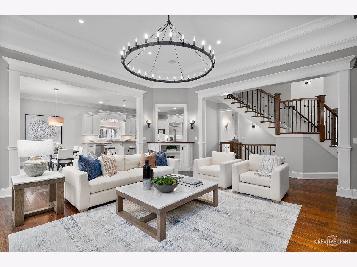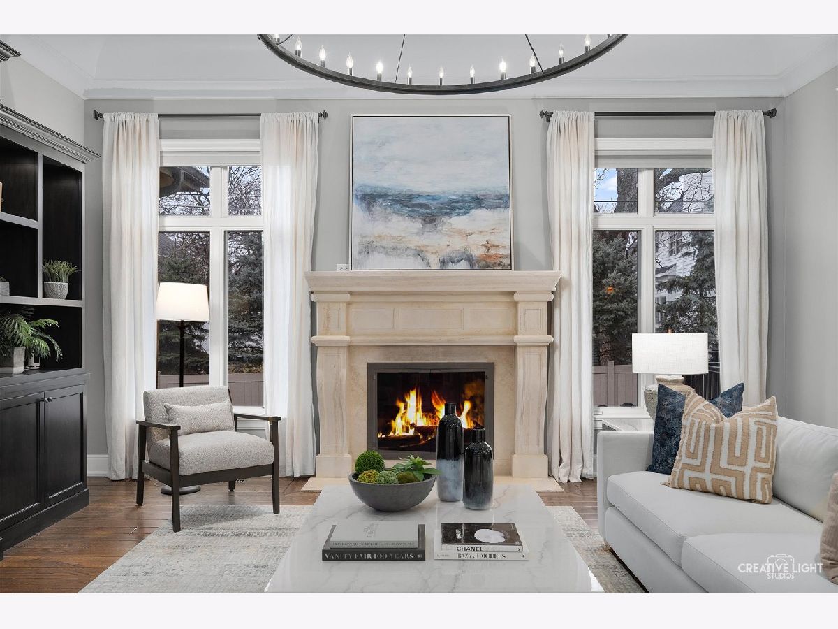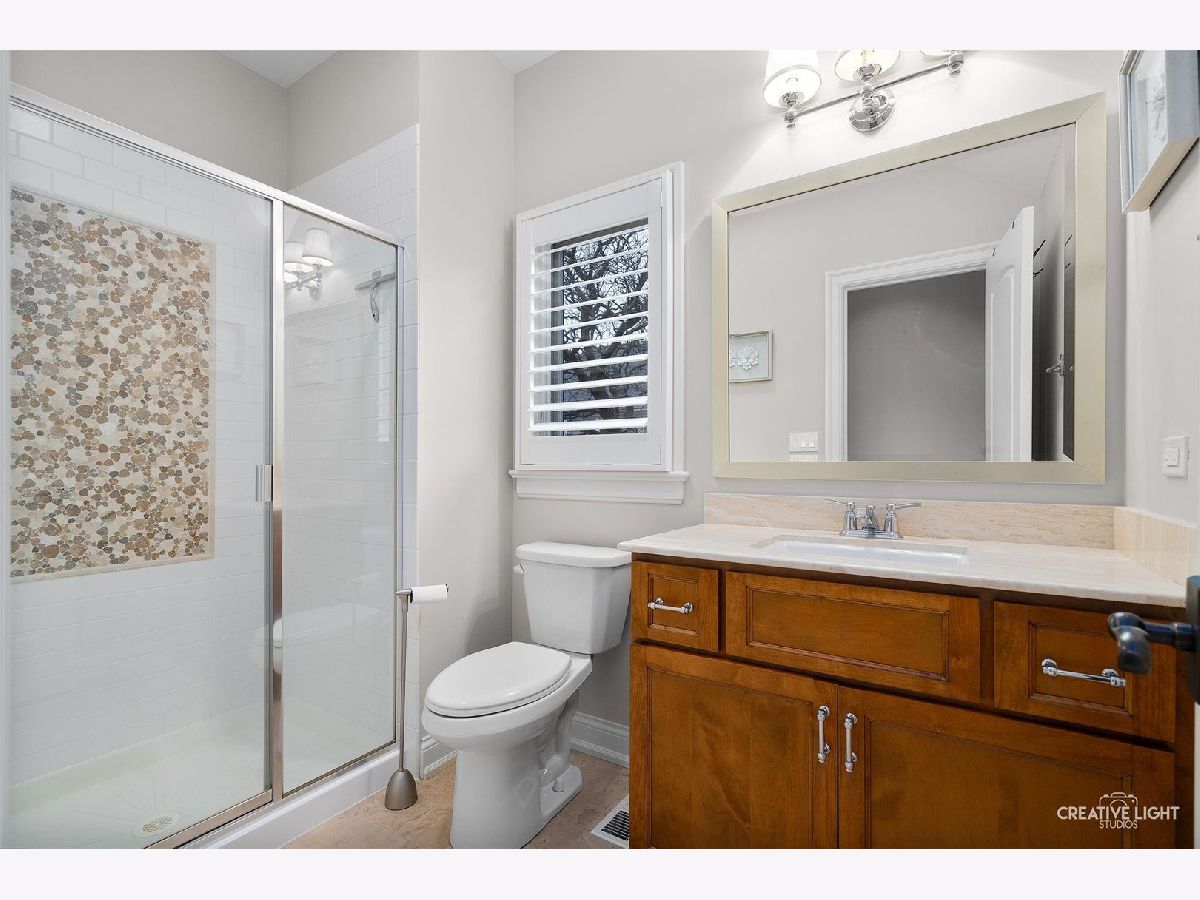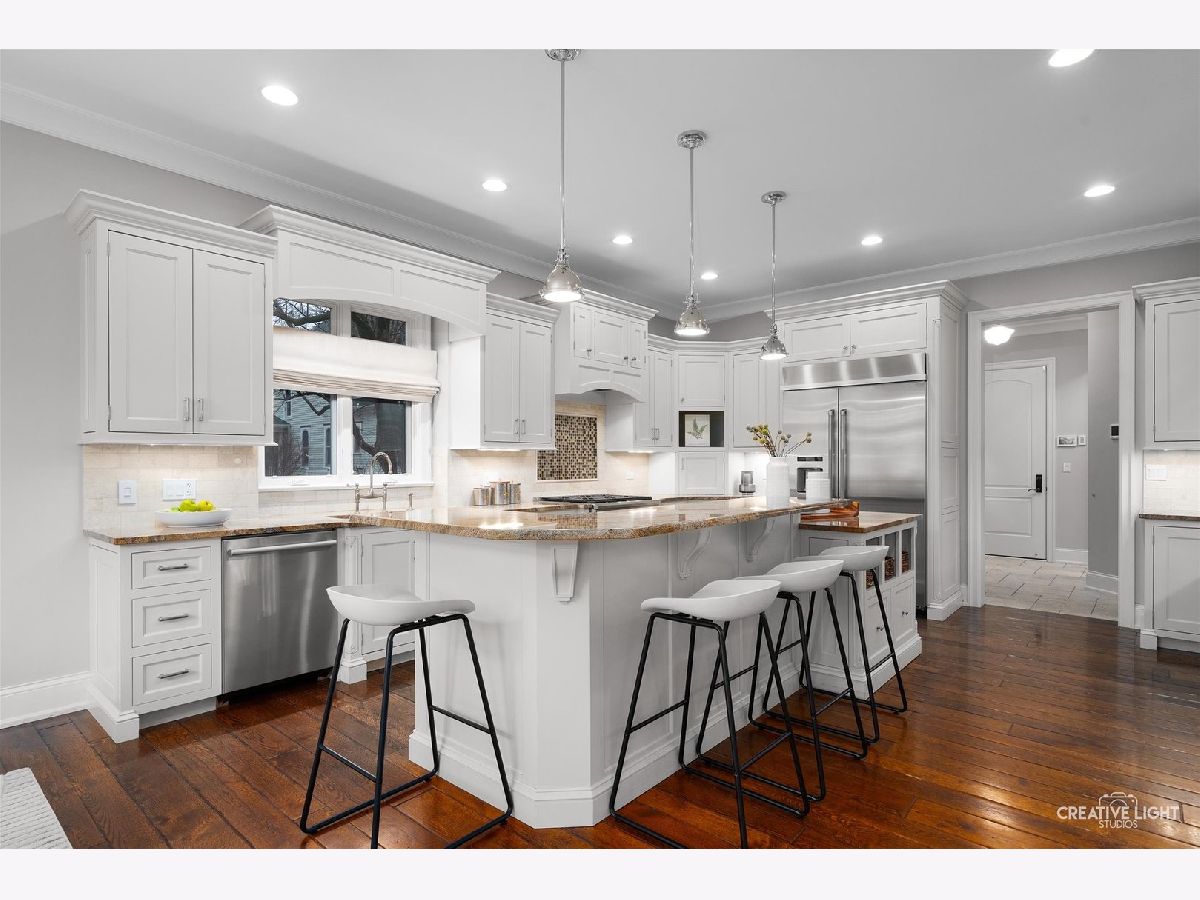 Exquisite Custom Home in the Heart of Naperville. Luxury, craftsmanship, and an unbeatable location-this Lenahan-built masterpiece offers it all within its more than 5200 square feet of finished living space. Situated just three blocks from downtown Naperville, this home places you steps away from renowned restaurants, boutique shopping, the scenic Riverwalk, Metra, and all three award-winning schools. From the moment you step inside, you'll be captivated by the extraordinary attention to detail. The grand foyer welcomes you with soaring 20-foot ceilings, an elegant designer chandelier with a convenient light lift, and a dramatic staircase with striking iron spindles. The craftsmanship continues throughout with oversized, custom trim work that elevates every space. The kitchen seamlessly blends function and elegance, making it a dream for both cooking and entertaining. Outfitted with commercial-grade stainless appliances, including a Jenn-Air refrigerator and beverage fridge (both new in May 2022) and a Bosch dishwasher (new in 2023), it features sleek granite countertops and a spacious center island with seating. Custom 42-inch cream-colored Bader cabinetry offers ample storage, complemented by a full-size pantry closet. A dedicated coffee and beverage bar adds extra convenience. The bright and airy dining area overlooks the new composite deck and a private, fully fenced backyard, creating a seamless flow between indoor and outdoor living. Enter the home's dedicated workspace through a pair of elegant French doors, an architectural detail that enhances the home's classic charm. Thoughtfully designed for both productivity and comfort, this inviting space features rich paneled walls, a coffered ceiling, and a gas fireplace with stone surround-making it the perfect setting for focused work. The open-concept family room is warm and inviting, anchored by a stunning limestone fireplace and custom built-ins illuminated by an expansive, statement chandelier that adds grandeur to the space. The first-floor primary suite is a true retreat, boasting a soaring 13-foot tray ceiling and a spa-like en-suite bath with heated floors. The custom walk-in closet is exceptionally designed, featuring a full-length mirror, built-in belt and scarf storage, four laundry hampers, drawers, open shelving, and abundant hanging space. Upstairs, three generously sized bedrooms each feature private en-suite baths and walk-in closets, offering both luxury and privacy. A cozy reading nook tucked into the second floor provides a quiet space to relax with a book or unwind. And then there's the lower level-an entertainer's dream. This professionally finished basement offers a custom bar with seating room for 8, mirrored bottle storage, dedicated wine storage, a double bowl stainless sink, and an ice maker. The game area includes a pool table, and a mounted flat-screen TV that will be conveyed with the home, while the recreation room is anchored by a gorgeous stone fireplace. A separate exercise space with gym flooring, a flex space that can easily be a 5th bedroom, a full bath, a mechanical room, and storage area complete this impressive space. The exterior facade is a stunning combination of stone, brick, and stucco, blending timeless elegance with modern durability. The three-car garage features an epoxy floor finish, adding a polished, high-end touch. Additional highlights include a Generac whole-house generator, a concrete driveway, and a rear paver patio to complement the fully fenced backyard. A complete list of this home's bespoke customizations and high-end finishes can be found under additional information once actively on the market. This is more than a home-it's a statement of refined living in the heart of Naperville.