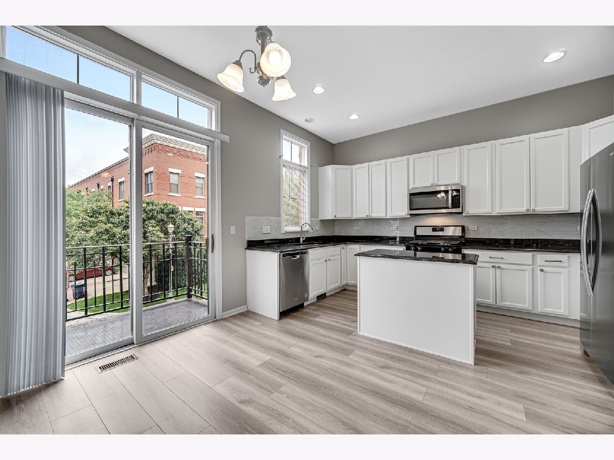 This gorgeous all brick tri-level townhome located in the heart of downtown Elgin is ready for its next owner! Absolutely nothing to do but move in - this stunning Augusta model features a light and bright eat-in kitchen with white cabinets, granite countertops, beautiful backsplash, island, brand new stainless steel appliances and a balcony which is perfect for grilling. New laminate flooring in the family room, living room, dining room and kitchen. Freshly painted throughout! Large master bedroom with huge walk-in closet with custom shelves and a full bathroom with double sink and separate tub/shower. The second bedroom features a walk-in closet and full bathroom as well. Convenient newer washer/dryer on the third floor near the bedrooms. Just steps from Festival Park, Grand Victoria Casino, the Fox River, plenty of restaurants and shopping! Excellent location for commuters with close proximity to the train station. City living within the suburbs, this location can't be beat!