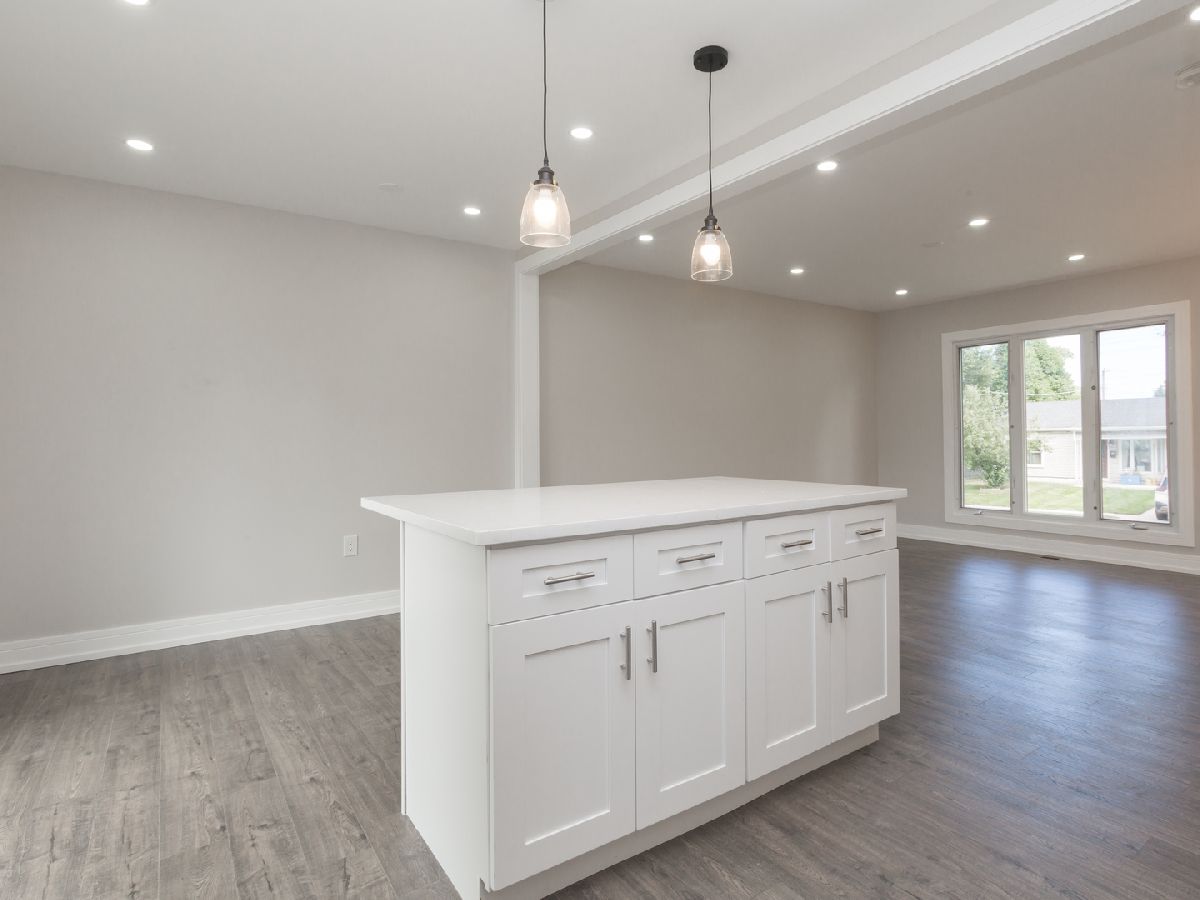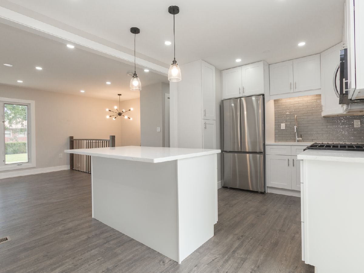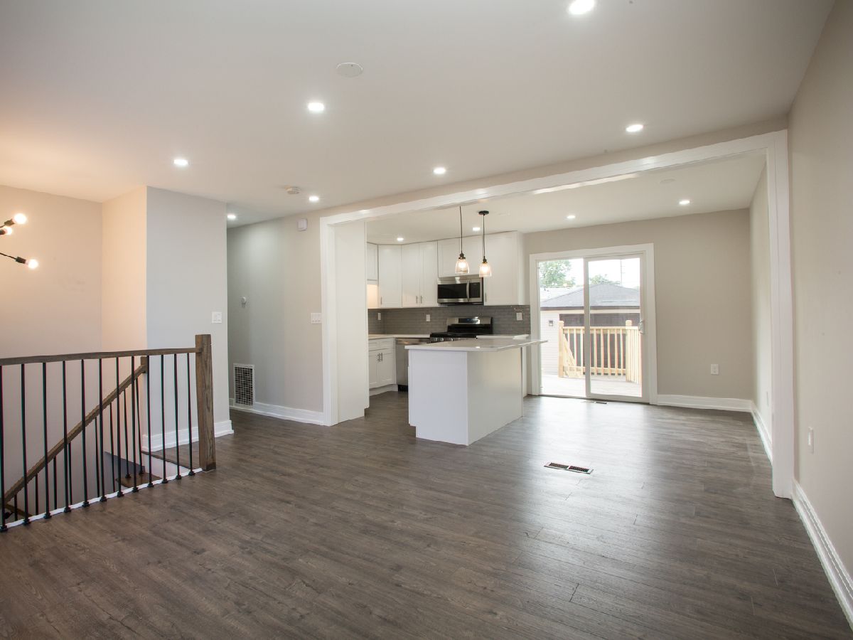 gorgeous updated home. You won't be disappointed. Brand new furnace, AC and hot water tank. Newer vinyl siding and windows. New entrance door and sliding glass door. Big 2 1/2 car garage with concrete driveway, fenced in yard. Brand new custom kitchen with 42" white shaker cabinets, quartz counters, deep SS sink and faucet. All new flooring t/o, 5.25 baseboard, new doors, light fixtures, door handles, custom railings, 2 full baths totally updated. Can lighting in LR and Kitchen. Come see this home.