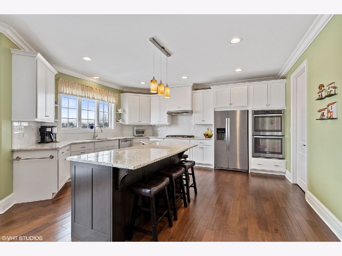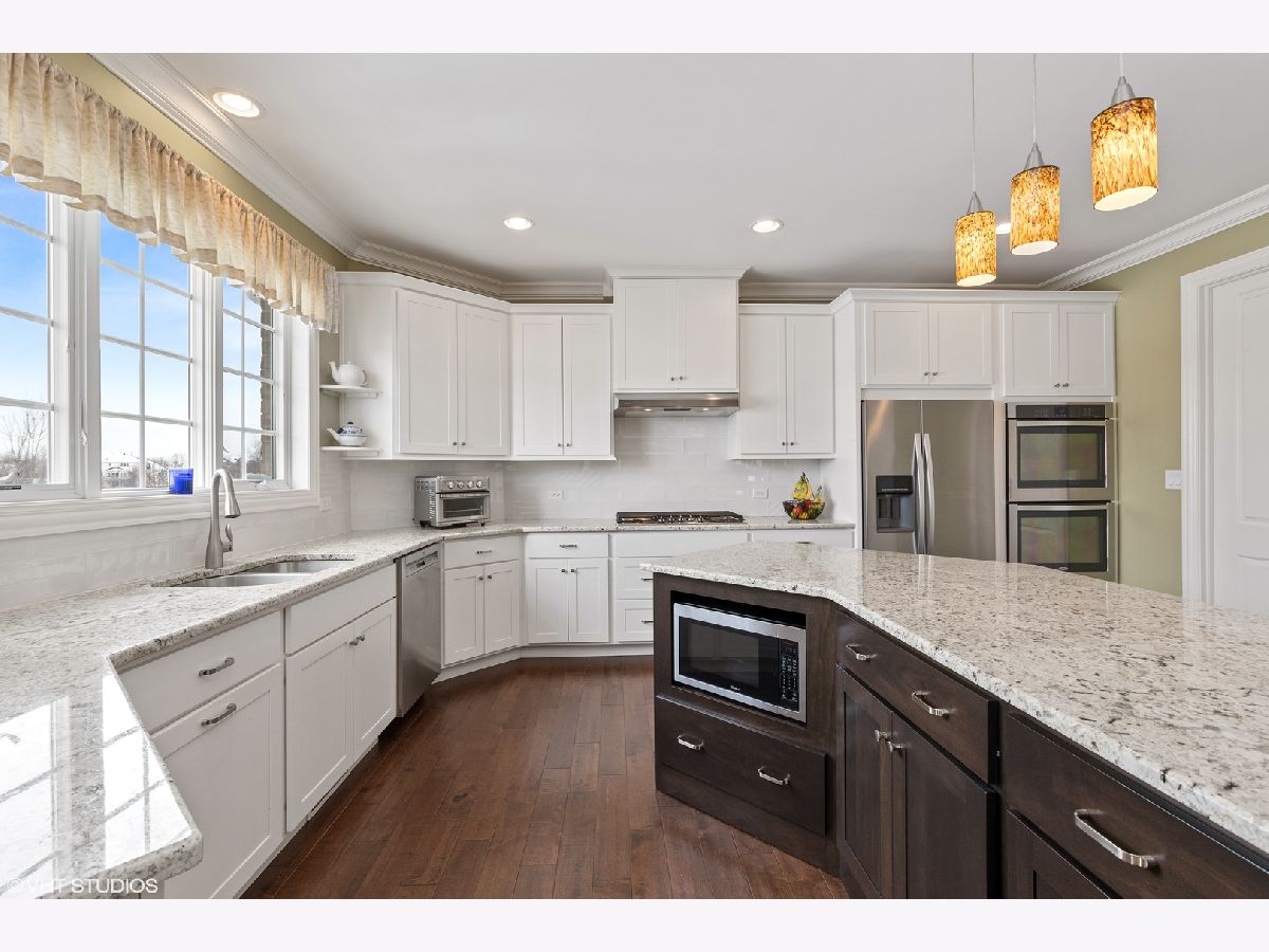 Well, hello gorgeous! Just what you've been hoping to find: a YOUNG quality built home with today's most craveworthy features. Great curb appeal offers a unique split garage plan which takes the focus off the garage doors and adds elegance and style. Inside you'll find the right stuff: upgraded wide white trim, panel doors, luxurious millwork. Richly toned hardwood floors through the expansive main level. Grand volume entry with gracious set back hardwood staircase and dramatic foyer window. Formal living/parlor and formal dining for those holiday gatherings we're all looking forward to! Superb kitchen with custom white cabinets, long accent toned island, gorgeous white/gray granite, kicked up white subway tile backsplash, stainless appliances including double oven and cooktop, 7x5 walk in pantry, meal planning/office nook with glass front accent cabinets. Jumbo breakfast room is open to the spacious family room, complete with bumped up ceiling and real woodburning fireplace. Main level office with closet could serve as the perfect related living/guest suite, as it's adjacent to a full bath with shower. You'll really love the unique mud room/laundry room combination with built-in bench/lockers, cabinets and sink, well planned to be accessible from garage, kitchen and with a door to the backyard. On the second floor you'll appreciate the hardwood hallway flooring. Luxe master suite has tray ceiling, walk in closet and a truly beautiful master bath: double sinks, oversized walk in tiled shower, freestanding soaking tub under accent transom window. Bedroom 2 is a sweet retreat, with private ensuite bath, 6x6 walk in closet and a super cool attached study or playroom. Roomy bedrooms 3 and 4 each have walk in closets and share the smartly designed Jack and Jill bath between. And here's another great idea: there's a second floor step up bonus room with double door entry...it's a casual game room, 2nd home office or home schooling headquarters! Need more space or related living options? Finished walk out basement includes bamboo flooring, open rec/great room with 2nd kitchenette, 5th bedroom, gargantuon exercise room and a full bath complete with 6x5 tiled steam shower...just the thing after working out! All of this, plus an amazing cul-de-sac location: sublime sunset views over acres of pond and open space Frankfort park district land - take in all the serenity from your deck with its vista vantage point. Patios (hot tub excluded), sprinkler system, easy care aluminum fenced yard and professional landscaping add style and functionality. Why fuss and fret with building in 2021 when you can have it all, right here, right now!