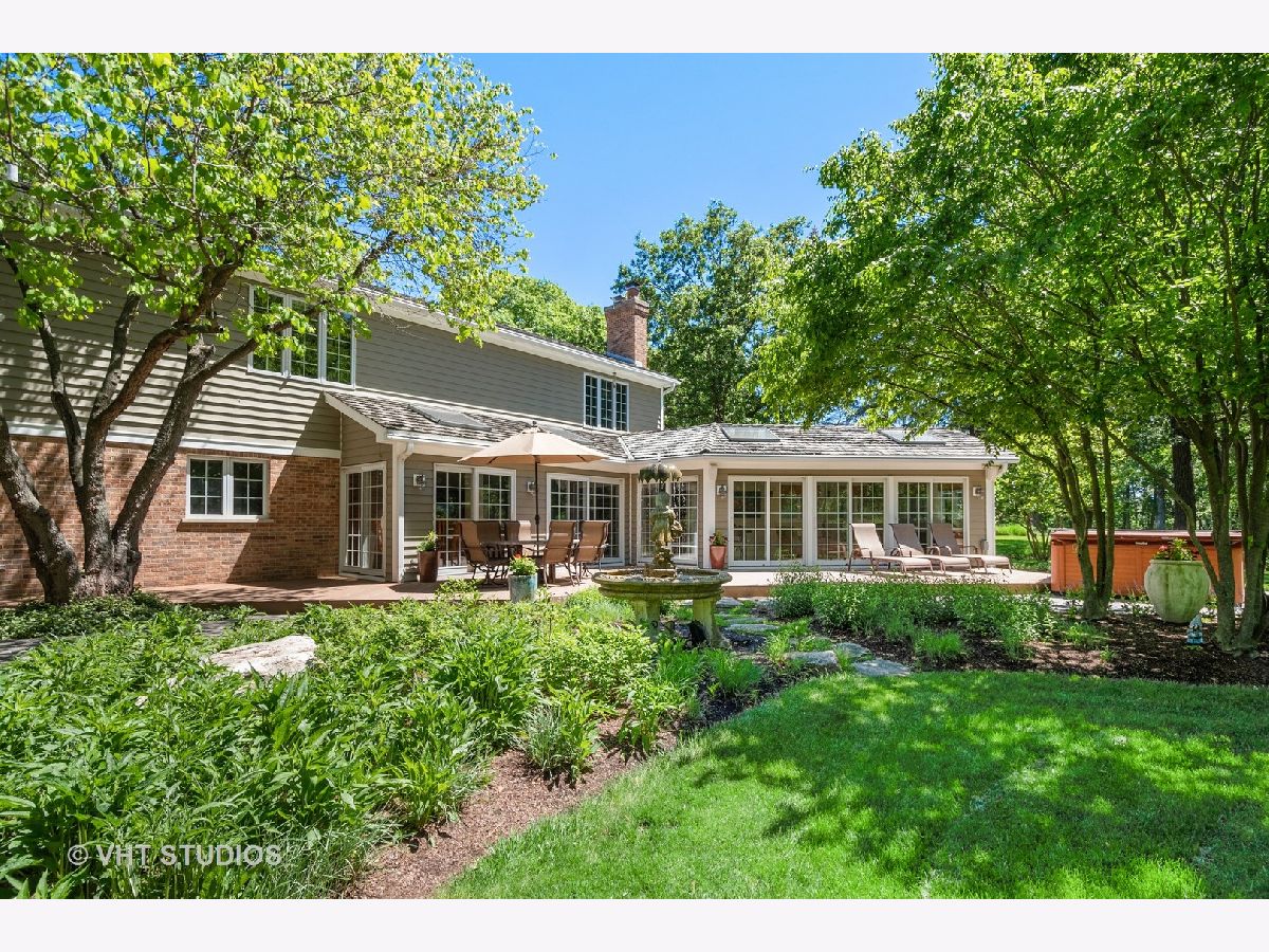 Deer Park custom built, 4 Bedroom & 4.2 Bathroom, home with incredible 1 acre setting overlooking pond, on a quiet cul-de-sac, fabulous curb appeal, gorgeous landscaping, lush backyard AND excellent east side of town location. Immaculate home has been beautifully maintained by the original owners. Step inside to the two-story foyer, gracious staircase, wide doorways leading to both the volume formal Living Room and spacious Dining Room. Flowing floor plan leads you to the sunlit Kitchen and expansive Family Room with brick fireplace, bookshelves, skylights, full wall of sliding doors to the deck & patio. Cooks delight Kitchen boasts stainless steel appliances, center island, 42" cabinetry, pantry closet and eating area. Show stopping four-season Sun Room features lovely views, vaulted beadboard ceiling, skylights, new ceramic flooring, gas stove and steps out to deck and patio with babbling water fountain and hot tub. The main level also includes a private office for WFH and a large laundry room. Upstairs features 4 spacious bedrooms and 3 Full Bathrooms...a Primary suite with super w.i.c. and lux bathroom with radiant heated floors, walk-in Kohler rain shower with chromatherapy lighting, handheld wand, body sprays and wi-fi enabled speakers, a Neptune jetted tub with hydro-massage system with lighting, wave & pulsation modes is set to enjoy the views of the pond and large vanity completes the space. Bedroom two is ensuite and Bedrooms 3 & 4 share a Jack & Jill bathroom. You'll love the finished basement with built-in speakers, Game Room, REC/TV area, brick fireplace, bookcases, bar with microwave, beverage refrigerator & wine rack, pool table area, possible Guest Bedroom with built-in cabinets & Murphy bed, full bath, Exercise Room, Sauna, craft room and storage. Additional highlights include cedar shake roof (2014), leaf guard gutters, brick paver driveway, 3-car garage, charming storage/garden shed with electricity with attic storage. Easy access to expressways, Deer Park malls shopping, minutes to Barrington Village and award-winning District 220 schools. Make this fabulous home yours in time for summer days in this gorgeous setting!