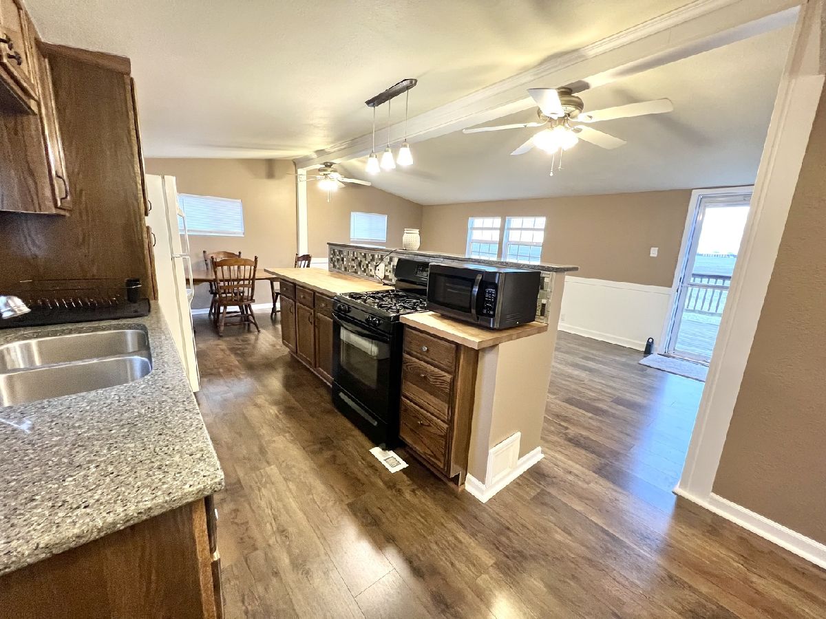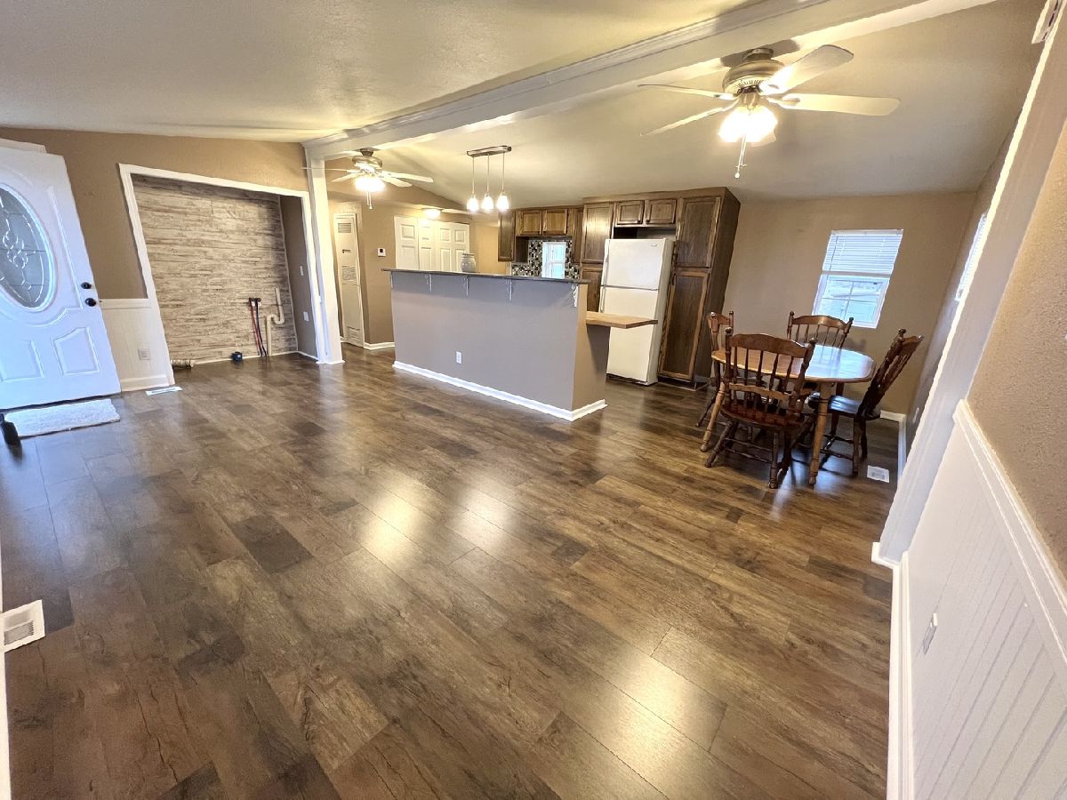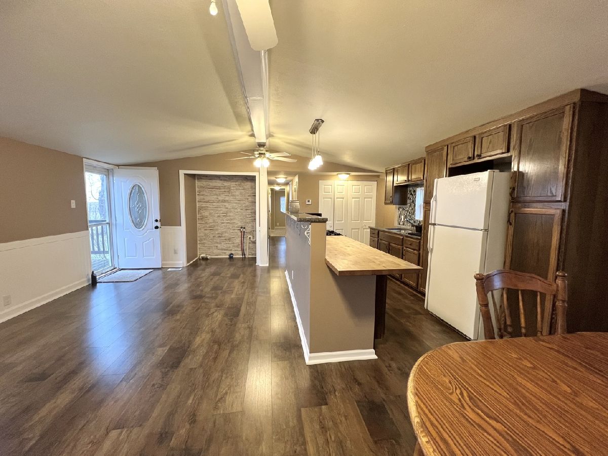 This home has had some major updates and is move-in ready! Enjoy an open-concept living space featuring the living room, dining area, and kitchen! The entire house has had new flooring and new carpet in all three bedrooms. The bathroom has undergone a total makeover within the last year including a new walk-in shower, vanity, flooring, and more. The ceilings, trim, and walls have all been freshly painted as well. Enjoy evenings on the front porch or create your own backyard space, either way, you will feel like you are country living but with all the town amenities.