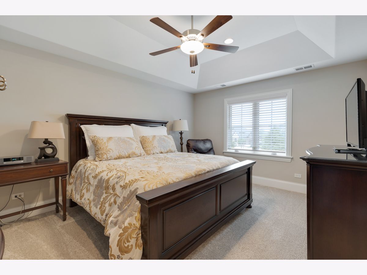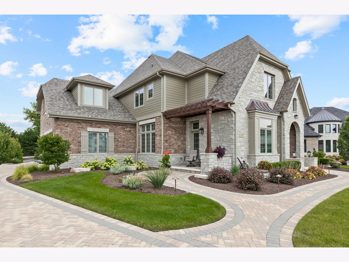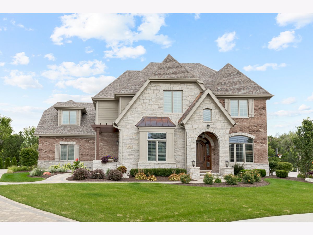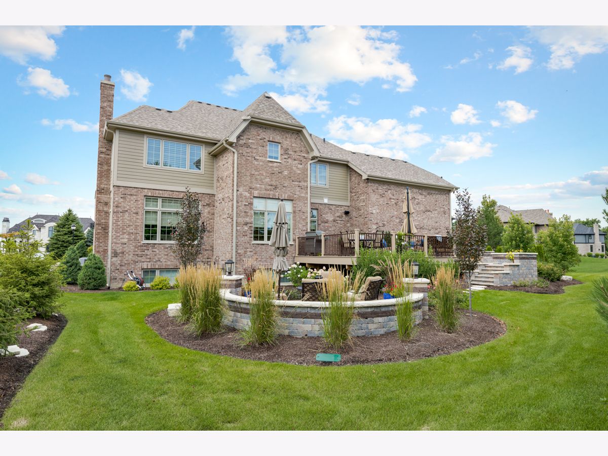 Stunning better than new brick/stone custom two story in upscale Olde Stone Village! Features include gorgeous entry through the arched front door into the foyer with knotty white oak hardwood floor, wainscotting and crown molding! Beautiful living room with coffered ceiling, 2 panel window with custom transom and French door to the side patio/porch with brick paver & pergola! Main level study with double glass French door entry, built in bookcases and (5) windows with transoms! Formal dining room includes crown molding, (3) panel window with transoms and wainscotting! Perfectly situated between the dining room and kitchen is a dry bar with glass cabinets and beverage center! Amazing kitchen with quartz counters, soft close doors/drawers high end oven range with 6 burner stove top, huge high end refrigerator/freezer, 8 ft doors, walk in pantry spacious eating area and (3) panel window with transoms! Flowing family room with notty hardwood floor, custom fireplace with granite surround, main level mud room with granite counter sink and built in locker! Main level powder room with raised free standing vanity! Open staircase to the second level to the knotty white oak Landing! Double door entry to the master has a tray ceiling, crown molding, abundance of windows, custom window treatments, separate his and hers walk-in closets with systems! Luxury Master bath suite has marble tile, raised vanity with quartz counter, dual sinks, freestanding tub, walk-in shower with rain ceiling and tile floor! Wow! Three additional second level bedrooms all attaching the bathrooms, tray ceilings and have walk-in closets! The second level hallway also has nitty white oak floor, wainscoting and crown molding throughout! 2nd level bonus room has quality carpet and recessed lighting! Much desired 2nd floor laundry room has wood-style ceramic tile, vanity with granite top, stainless sink and cabinets! Open staircase from the main level to basement! Basement includes recreation room, game area, media area and exercise room with mix of carpet and tile! Basement also includes a 3/4 bath with walk in shower, custom tile floor and raised vanity with granite top! Professional landscape exterior includes inground sprinkler system, maintenance-free decking, fabulous patio system with oversized Stone paver floor, seating wing walls, lighted pillars and hot tub! Incredible Brick driveway! Three car side load garage! 10 foot ceilings on main level! Two panel doors! Raised baseboard! White doors and trim! Security system with cameras! Excellent school district 157c and 210!