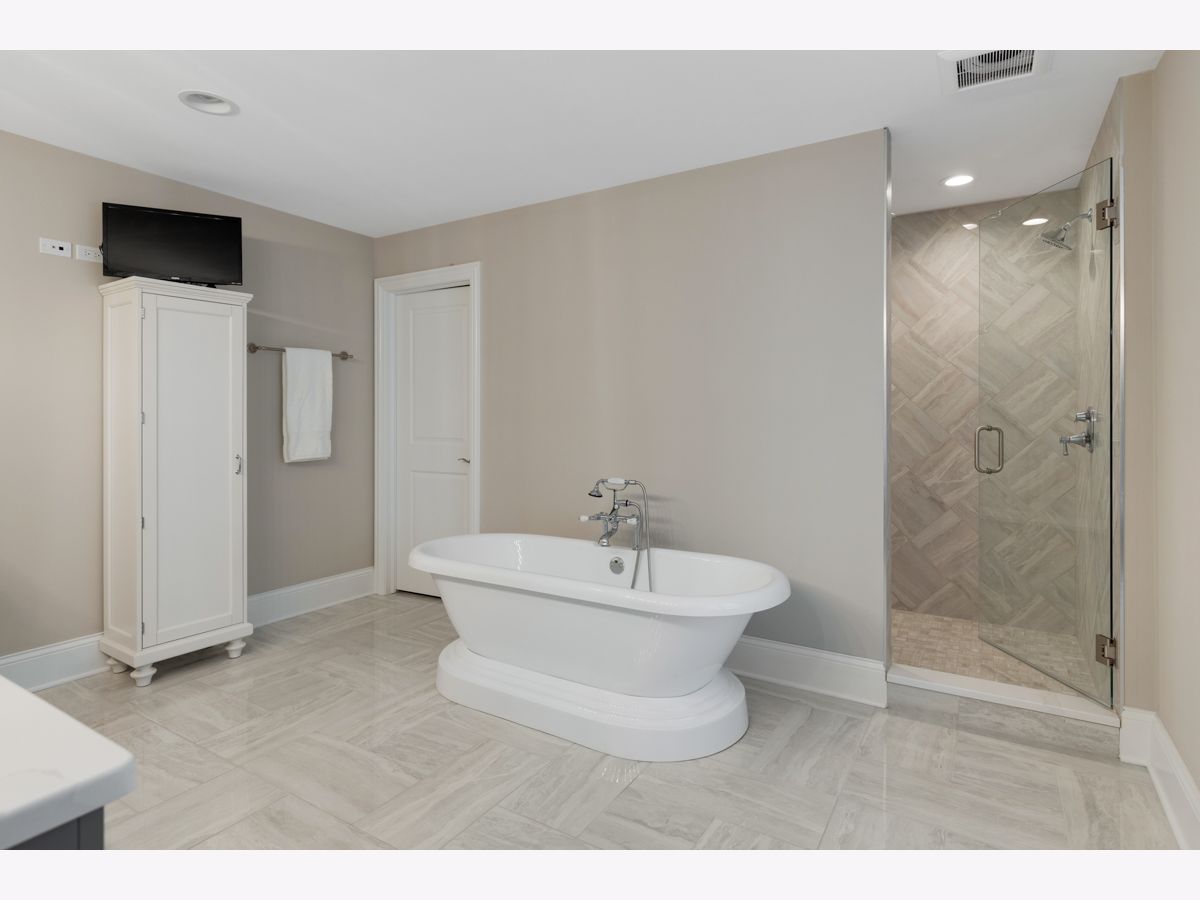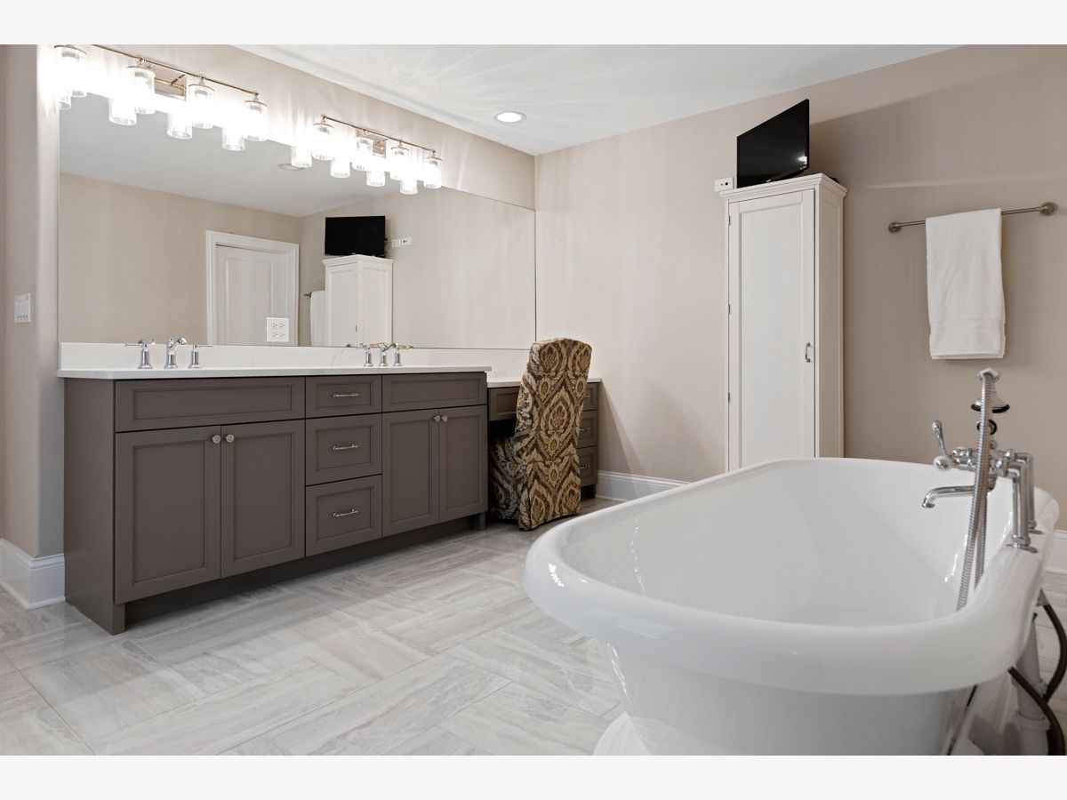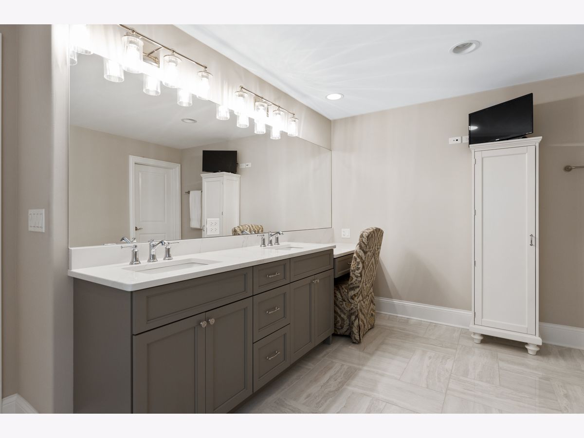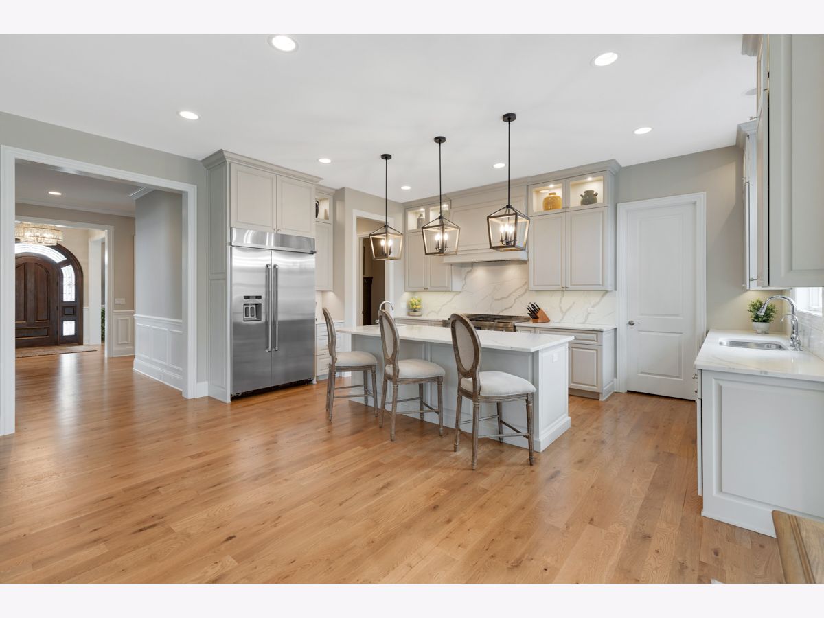 Stunning better than new brick/stone custom two story in upscale Olde Stone Village! Features include gorgeous entry through the arched front door into the foyer with knotty white oak hardwood floor, wainscotting and crown molding! Beautiful living room with coffered ceiling, 2 panel window with custom transom and French door to the side patio/porch with brick paver & pergola! Main level study with double glass French door entry, built in bookcases and (5) windows with transoms! Formal dining room includes crown molding, (3) panel window with transoms and wainscotting! Perfectly situated between the dining room and kitchen is a dry bar with glass cabinets and beverage center! Amazing kitchen with quartz counters, soft close doors/drawers high end oven range with 6 burner stove top, huge high end refrigerator/freezer, 8 ft doors, walk in pantry spacious eating area and (3) panel window with transoms! Flowing family room with notty hardwood floor, custom fireplace with granite surround, main level mud room with granite counter sink and built in locker! Main level powder room with raised free standing vanity! Open staircase to the second level to the knotty white oak Landing! Double door entry to the master has a tray ceiling, crown molding, abundance of windows, custom window treatments, separate his and hers walk-in closets with systems! Luxury Master bath suite has marble tile, raised vanity with quartz counter, dual sinks, freestanding tub, walk-in shower with rain ceiling and tile floor! Wow! Three additional second level bedrooms all attaching the bathrooms, tray ceilings and have walk-in closets! The second level hallway also has nitty white oak floor, wainscoting and crown molding throughout! 2nd level bonus room has quality carpet and recessed lighting! Much desired 2nd floor laundry room has wood-style ceramic tile, vanity with granite top, stainless sink and cabinets! Open staircase from the main level to basement! Basement includes recreation room, game area, media area and exercise room with mix of carpet and tile! Basement also includes a 3/4 bath with walk in shower, custom tile floor and raised vanity with granite top! Professional landscape exterior includes inground sprinkler system, maintenance-free decking, fabulous patio system with oversized Stone paver floor, seating wing walls, lighted pillars and hot tub! Incredible Brick driveway! Three car side load garage! 10 foot ceilings on main level! Two panel doors! Raised baseboard! White doors and trim! Security system with cameras! Excellent school district 157c and 210!