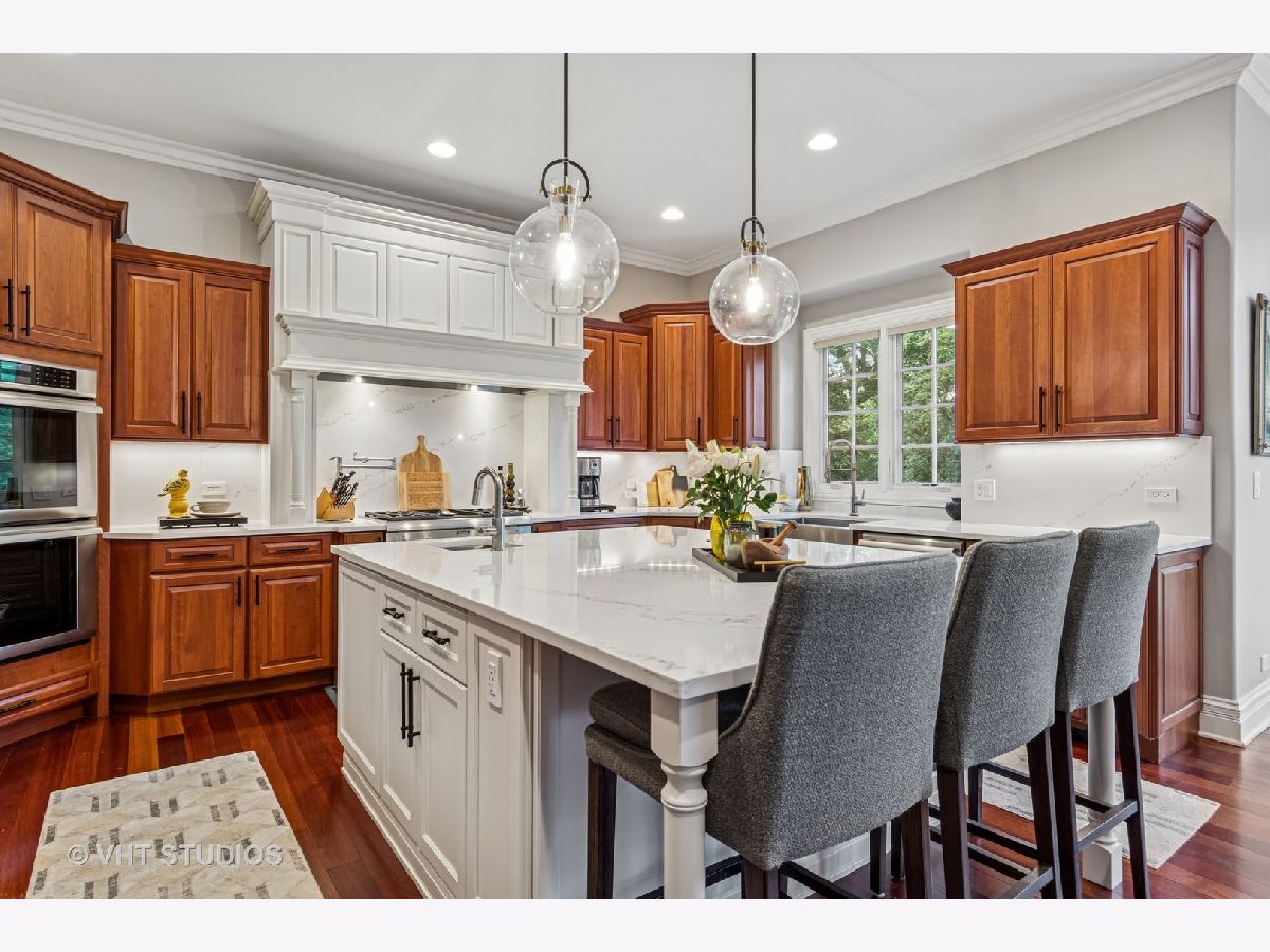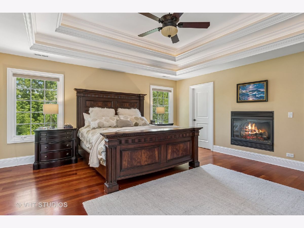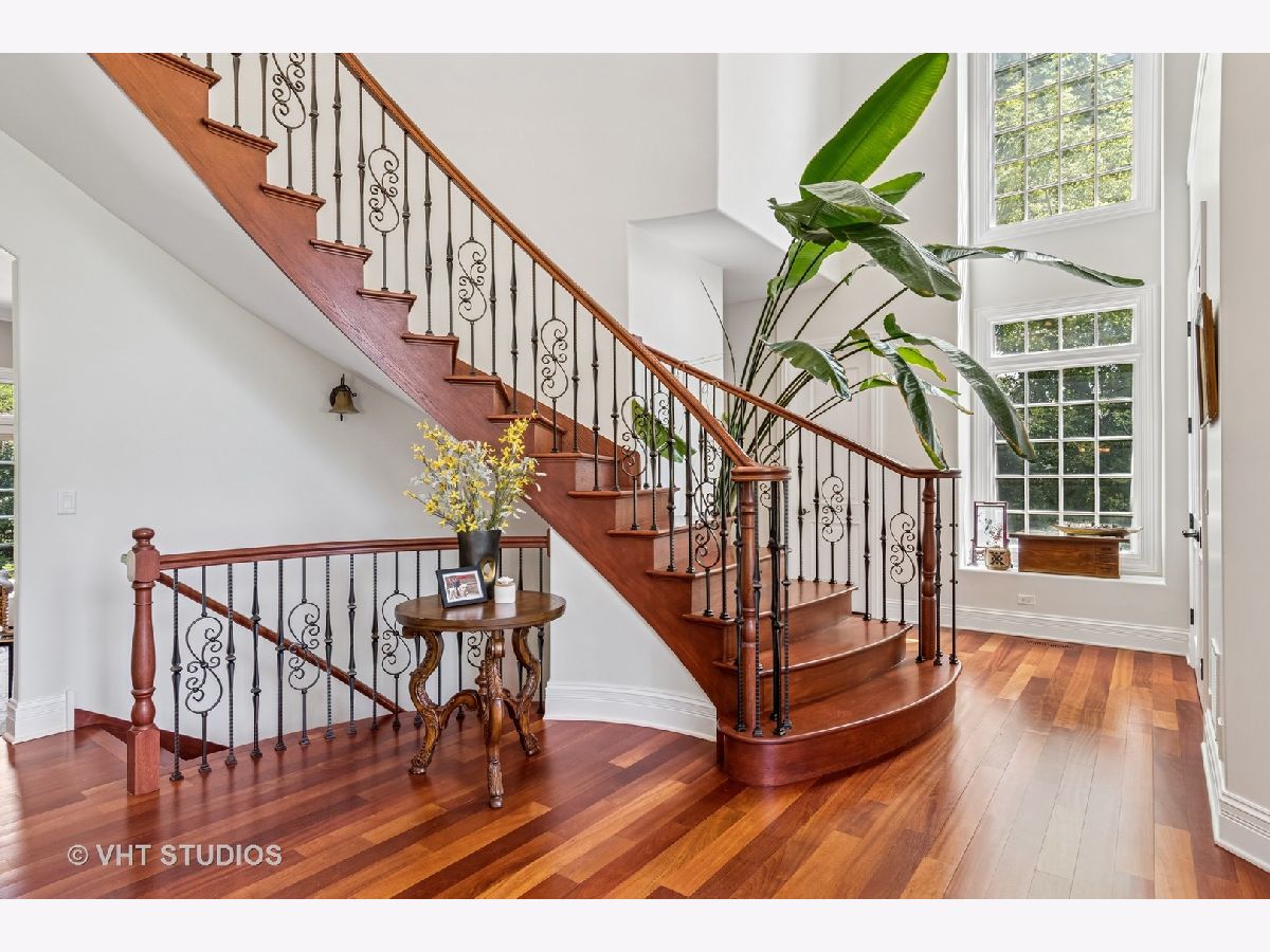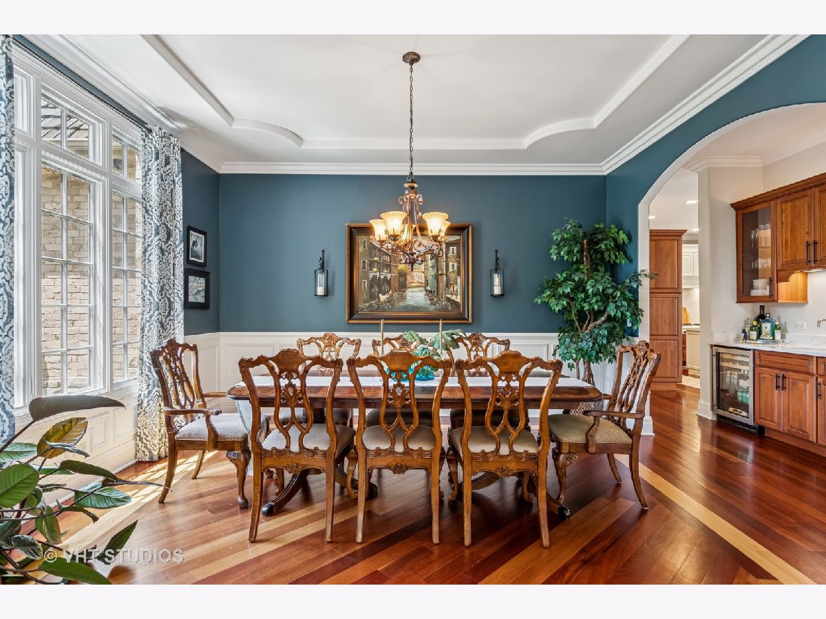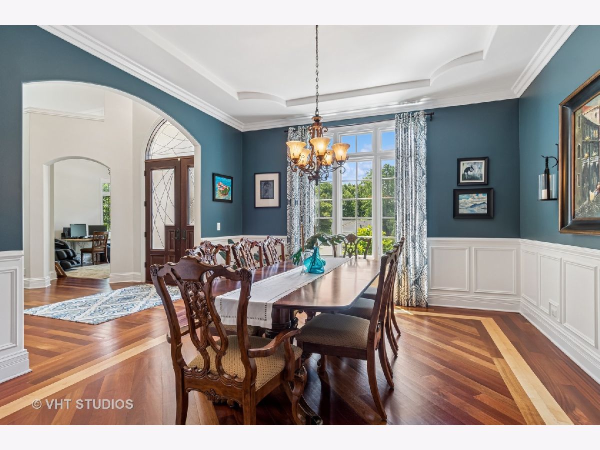 Welcome to this exquisite custom-built home in highly sought-after Glen Ellyn, featuring timeless all-brick and stone exterior, a 3-car garage, and over 6,200 sq ft of living space (4,233 sq. ft. above grade plus 1,982 sq ft in the partially finished basement). Inside, you'll find exceptional craftsmanship throughout, starting with the grand two-story foyer, curved staircase with wrought iron balusters, arched doorways, art niches, and wainscoting. The main level boasts 10 ft. ceilings, solid hardwood flooring, and an open-concept layout. A versatile living room/flex space, a formal dining room with custom detailing, and a wet bar set the stage for effortless entertaining. The gourmet kitchen features custom cabinetry, a new island with seating, Quartz countertops and backsplash, striking custom hood with Quartz backdrop, farmhouse sink, pendant lighting, Thermador range and built-in double oven, and a built-in KitchenAid refrigerator. The adjoining eating area flows seamlessly into the show-stopping family room with a custom stone fireplace and a wall of windows overlooking lush landscaping. A main floor guest suite with full bath provides ideal accommodations for visitors. The spacious mudroom off the garage offers a practical everyday entry. Upstairs, the luxurious primary suite is a true retreat with double doors, fireplace, tray ceiling with accent lighting, two walk-in closets, and a spa-like bath featuring heated floors, a large steam shower, soaking tub, dual vanities, makeup station, and water closet. The second bedroom is a private en-suite with vaulted ceiling, walk-in closet, and heated-floor bathroom. Bedrooms three and four share a Jack and Jill bath, while bedroom four also features a sitting/study area and oversized walk-in closet. A full hall bath includes dual sinks, heated floors, and water closet. The finished basement offers even more space with a recreation room and custom stone fireplace, exercise room, game room, wine room, bonus room, full bath, and in-floor heating rough-in. Exterior highlights include a brick paver driveway, walkway, and patio with firepit, creating a seamless and elegant landscape design. Additional upgrades include dual HVAC systems, two tankless water heaters, whole-house generator, and two air cleaners. Thoughtfully designed with exceptional detail and quality throughout-this is truly a place to call home.
