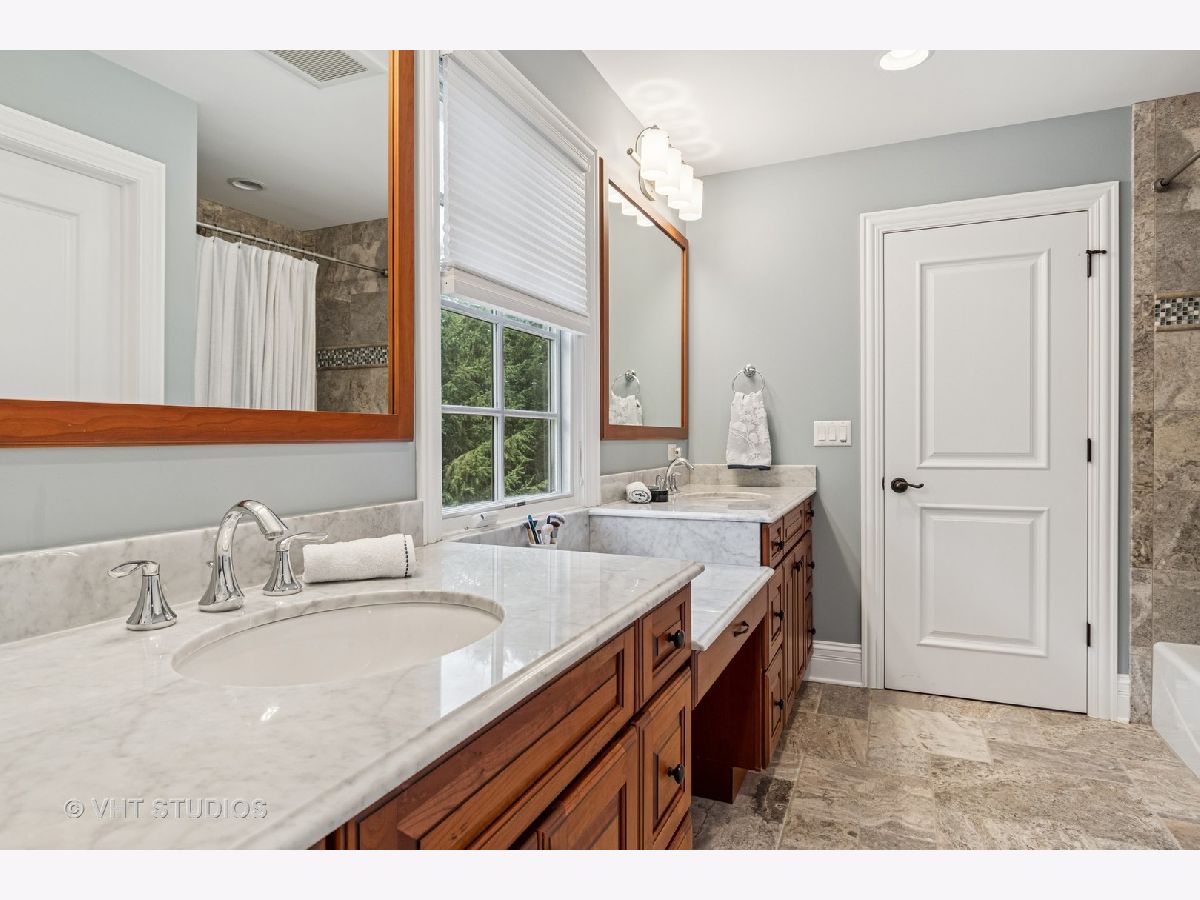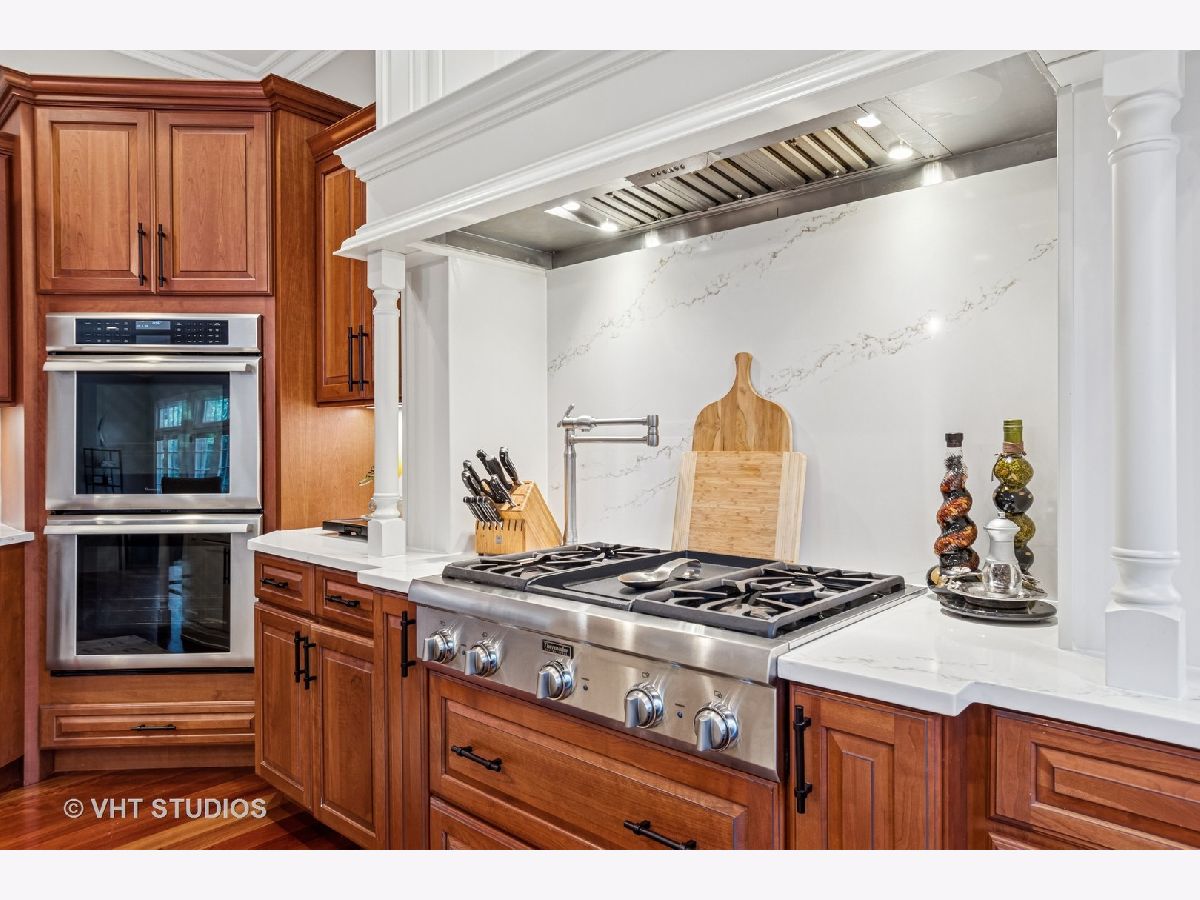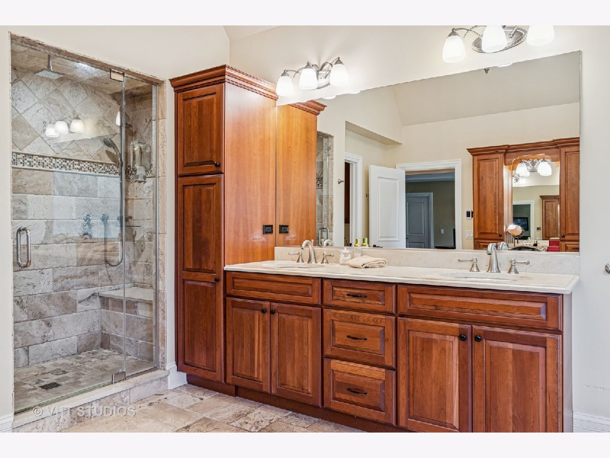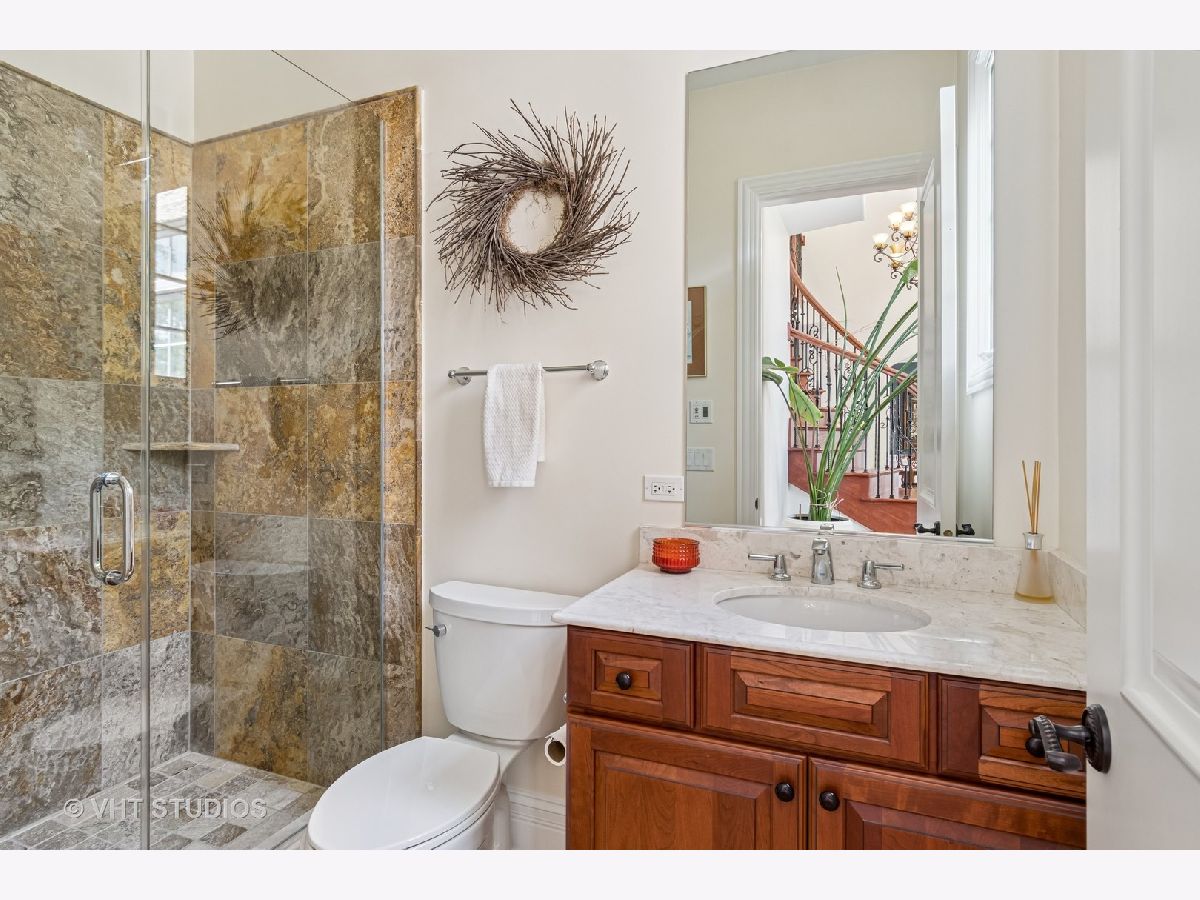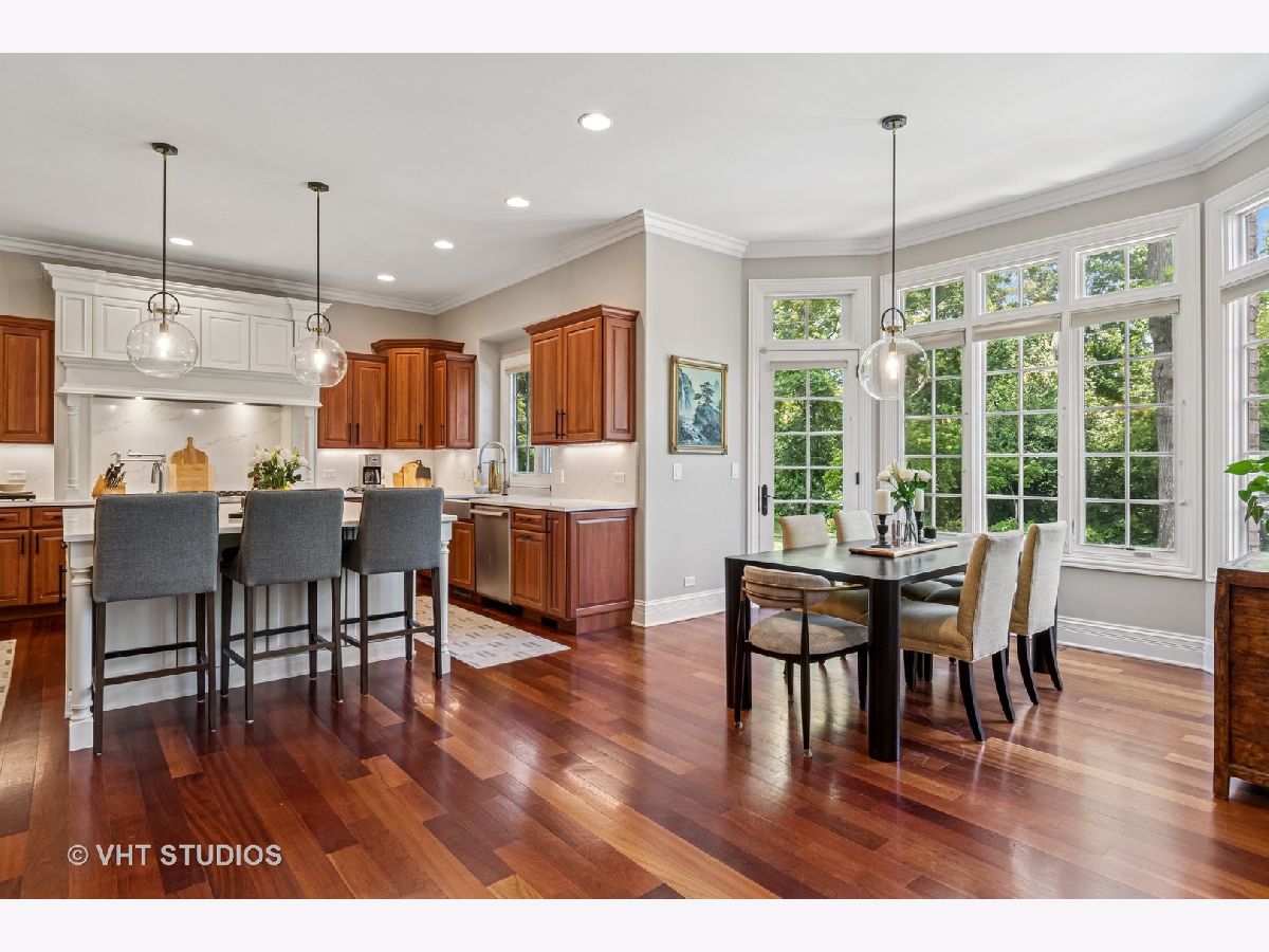 Welcome to this exquisite custom-built home in highly sought-after Glen Ellyn, featuring timeless all-brick and stone exterior, a 3-car garage, and over 6,200 sq ft of living space (4,233 sq. ft. above grade plus 1,982 sq ft in the partially finished basement). Inside, you'll find exceptional craftsmanship throughout, starting with the grand two-story foyer, curved staircase with wrought iron balusters, arched doorways, art niches, and wainscoting. The main level boasts 10 ft. ceilings, solid hardwood flooring, and an open-concept layout. A versatile living room/flex space, a formal dining room with custom detailing, and a wet bar set the stage for effortless entertaining. The gourmet kitchen features custom cabinetry, a new island with seating, Quartz countertops and backsplash, striking custom hood with Quartz backdrop, farmhouse sink, pendant lighting, Thermador range and built-in double oven, and a built-in KitchenAid refrigerator. The adjoining eating area flows seamlessly into the show-stopping family room with a custom stone fireplace and a wall of windows overlooking lush landscaping. A main floor guest suite with full bath provides ideal accommodations for visitors. The spacious mudroom off the garage offers a practical everyday entry. Upstairs, the luxurious primary suite is a true retreat with double doors, fireplace, tray ceiling with accent lighting, two walk-in closets, and a spa-like bath featuring heated floors, a large steam shower, soaking tub, dual vanities, makeup station, and water closet. The second bedroom is a private en-suite with vaulted ceiling, walk-in closet, and heated-floor bathroom. Bedrooms three and four share a Jack and Jill bath, while bedroom four also features a sitting/study area and oversized walk-in closet. A full hall bath includes dual sinks, heated floors, and water closet. The finished basement offers even more space with a recreation room and custom stone fireplace, exercise room, game room, wine room, bonus room, full bath, and in-floor heating rough-in. Exterior highlights include a brick paver driveway, walkway, and patio with firepit, creating a seamless and elegant landscape design. Additional upgrades include dual HVAC systems, two tankless water heaters, whole-house generator, and two air cleaners. Thoughtfully designed with exceptional detail and quality throughout-this is truly a place to call home.