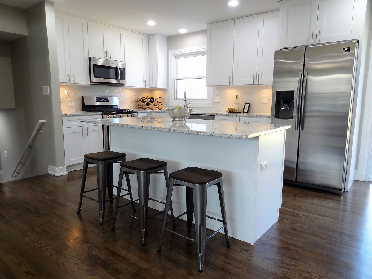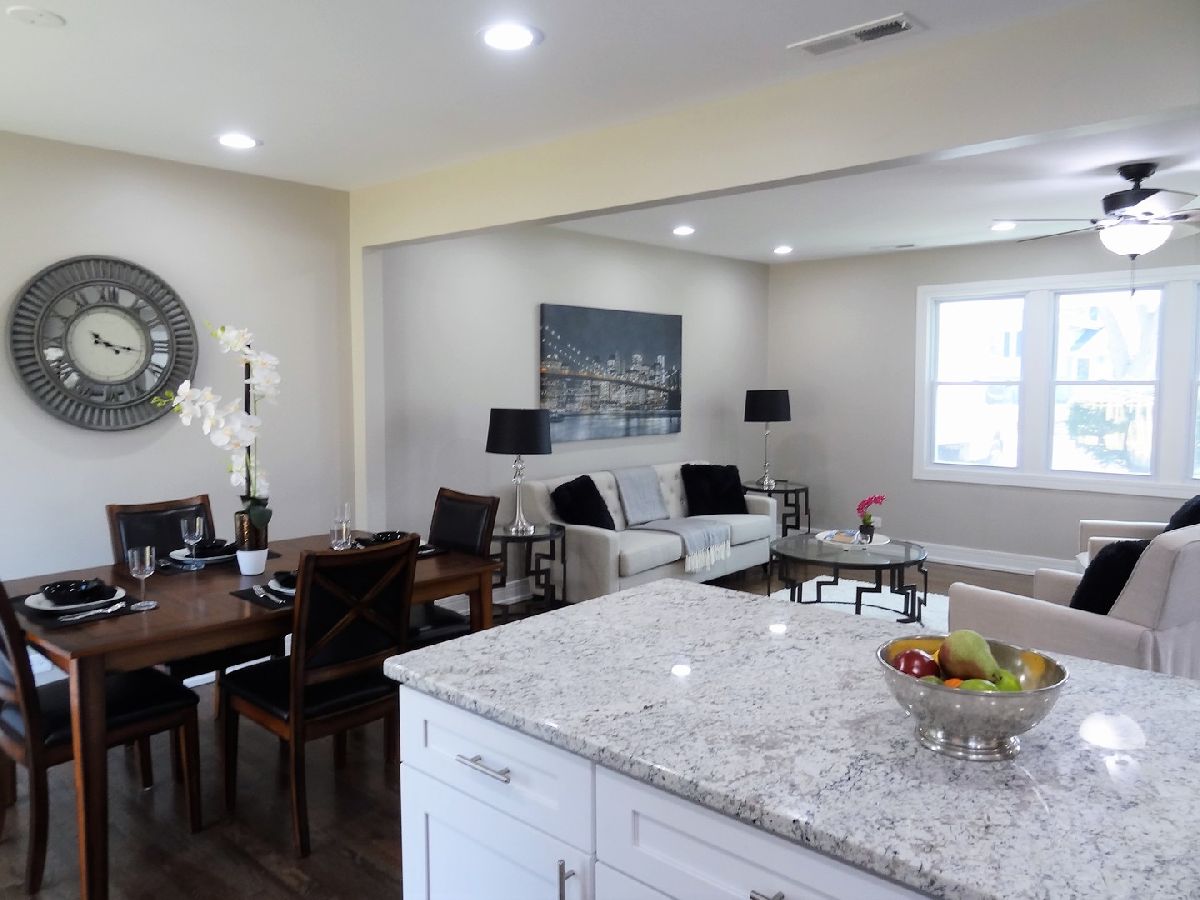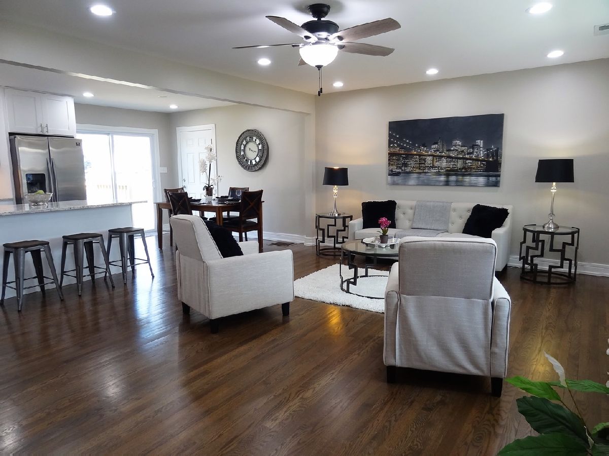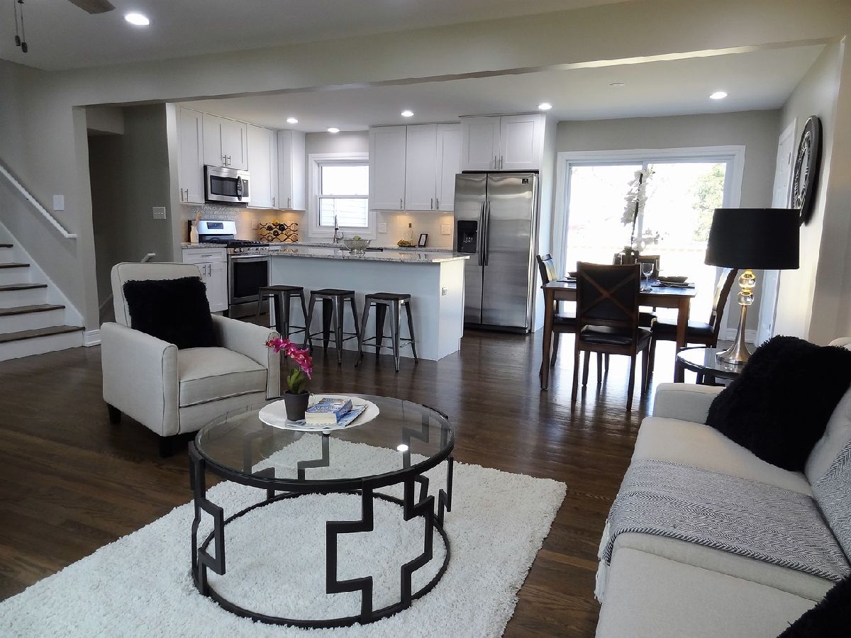 Beautifully Renovated home with open floor plan, elegant with modern feel and finishes. New Windows, new roof, new furnace and AC and Water Heater, new white kitchen cabinets with a beautiful island, granite counter tops, stainless steel appliances, new exterior and interior doors and trim! Nicely updated bathrooms, freshly painted, hardwood floors, and new carpet in the family room! Upgraded plumbing and electrical with issued Permits. New Radon system and vapor and moisture barrier along with new sump pump and battery back up system. New deck. Large fenced yard goes much further then the existing fence. Great and friendly Neighborhood. Deep garage with extra space for storage and comfortably fit 1 car or even a larger SUV.