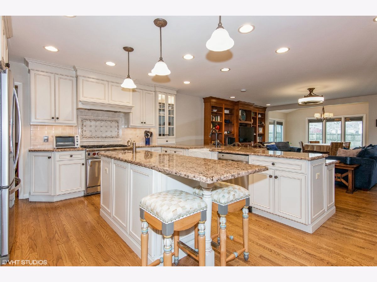 Welcome to this beautifully appointed home with custom gourmet kitchen in desirable Glen Ellyn. Well-maintained and cared for. Hardie Board maintenance free exterior and brick. Plus a brick paver walkway to the entrance. Living room with HW flrs greets you and boasts a huge 3 over 3 front window with beautiful natural light! Moving onto the gorgeous custom Kitchen with a plethora of cabinets, pull-out shelves and 2 sinks with a prep station. Breakfast bar seating, Granite counters, stainless appliances, under cabinet lighting and a built-in hutch for an abundance of storage. Don't forget to check out the warming drawer and 2 disposals. The over-sized island is open to the family room and dinette area addition with beautiful custom built-in's. Dining room offers a vaulted ceiling, large windows and patio door with integrated blinds, welcoming in so much light. Hardwood flooring throughout home. Third level has a spectacular custom owner's suite addition, complete with a sitting area, 2 closets (1 walk-in - 11x6) and luxurious on-suite. The on-suite provides double sinks, granite counter-tops, garden tub, separate walk-in shower and skylight. Second full bath offers granite counters with an air bath-tub/shower combo. All 3 full baths with ceramic tiled floors. Bedrooms 2 and 3 offer built-in closet organizers. Lower level rec room has a wet bar, built-in beverage refrigerator, granite, under-mount copper sink and a 3rd full bath, just an awesome place for get togethers. A few steps down to the basement with exterior access you will find the office or bonus room which can also be used as an exercise space or playroom. Large laundry room provides built-in cabinets, sink, tiled flooring and access to the large fenced backyard with paver patio and privacy. Detached 2 car garage, built in 2015, can accommodate up to 10 cars in the driveway - great for entertaining! Garage is very close to the main level and lower level access doors for convenience. Entire 1st level has been freshly painted in a soothing, neutral color and most of second floor as well. 2 Furnaces, 2 A/C units and 2 water heaters! Some rooms with ceiling fans and integrated window coverings. Just steps away from Arbor View Elementary! Close to the Morton Arboretum. This home is truly AMAZING. By far, the best value for the money in all of Glen Ellyn.