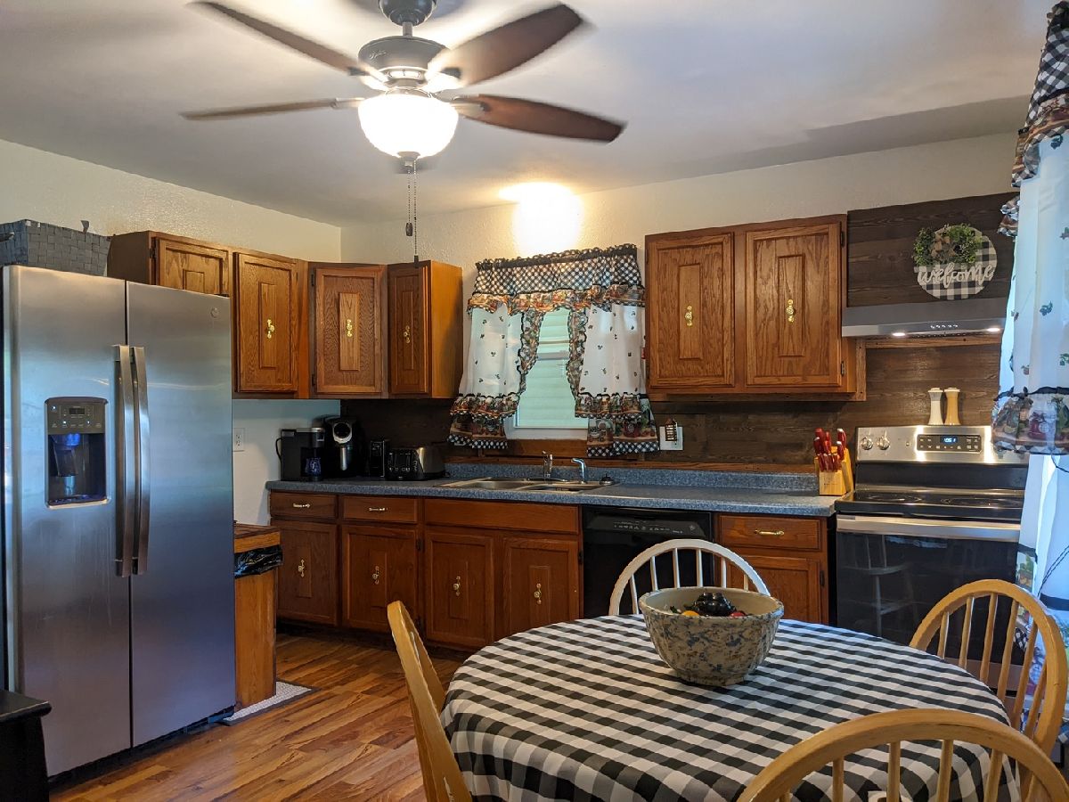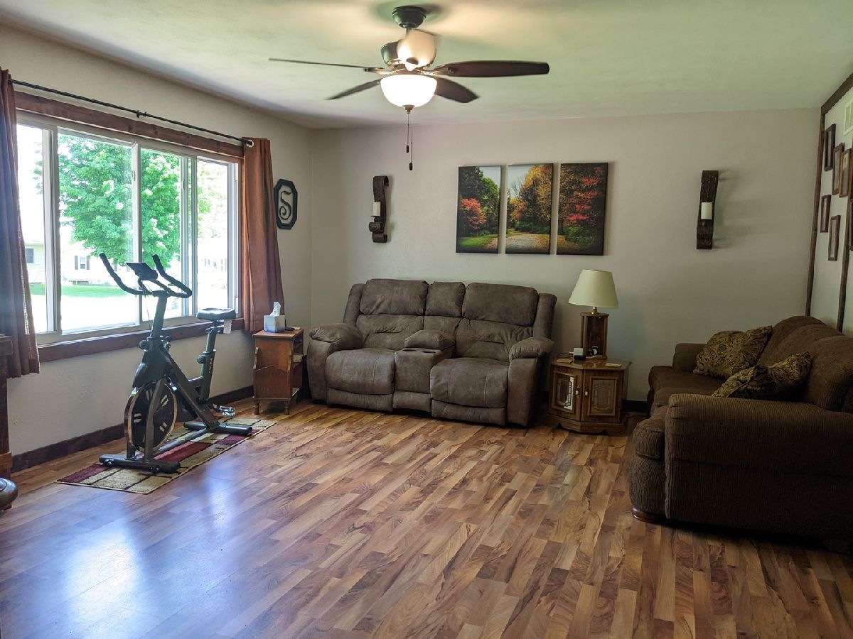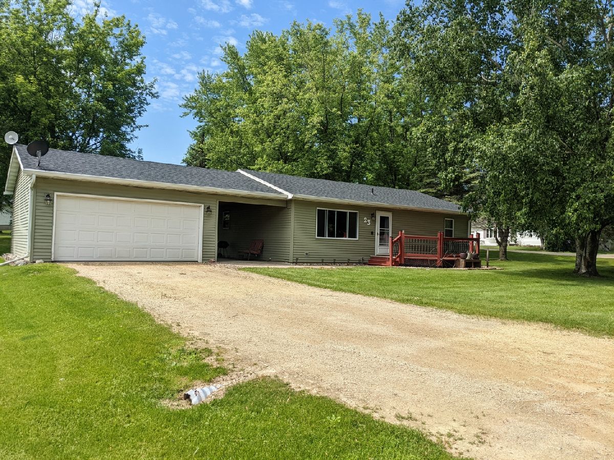 Many updates and gorgeous corner lot in Forreston school district featuring decks, covered patio and spacious yard. Kitchen has been updated with new appliances in 2021 and low maintenance flooring continuing in the living room. Main floor full bath and 3 bedrooms. LL has potential for large family/rec room. Lots of outdoor living space to enjoy with 8x16 front deck, 12x12 back deck, and 26x10 covered patio to oversized 2 car 26' x 21' garage. New roof and gutters in 2022, Newer siding, windows and HVAC.