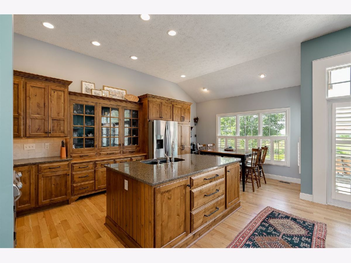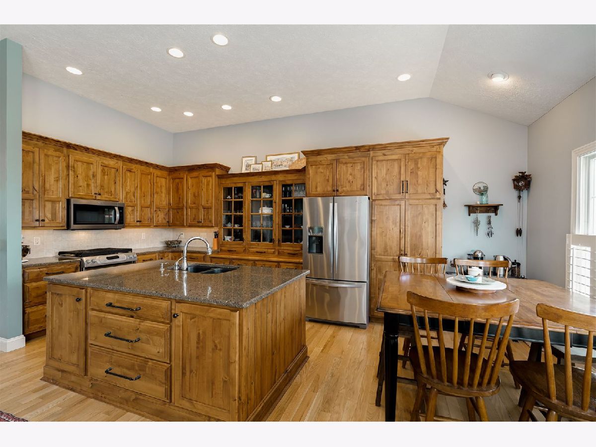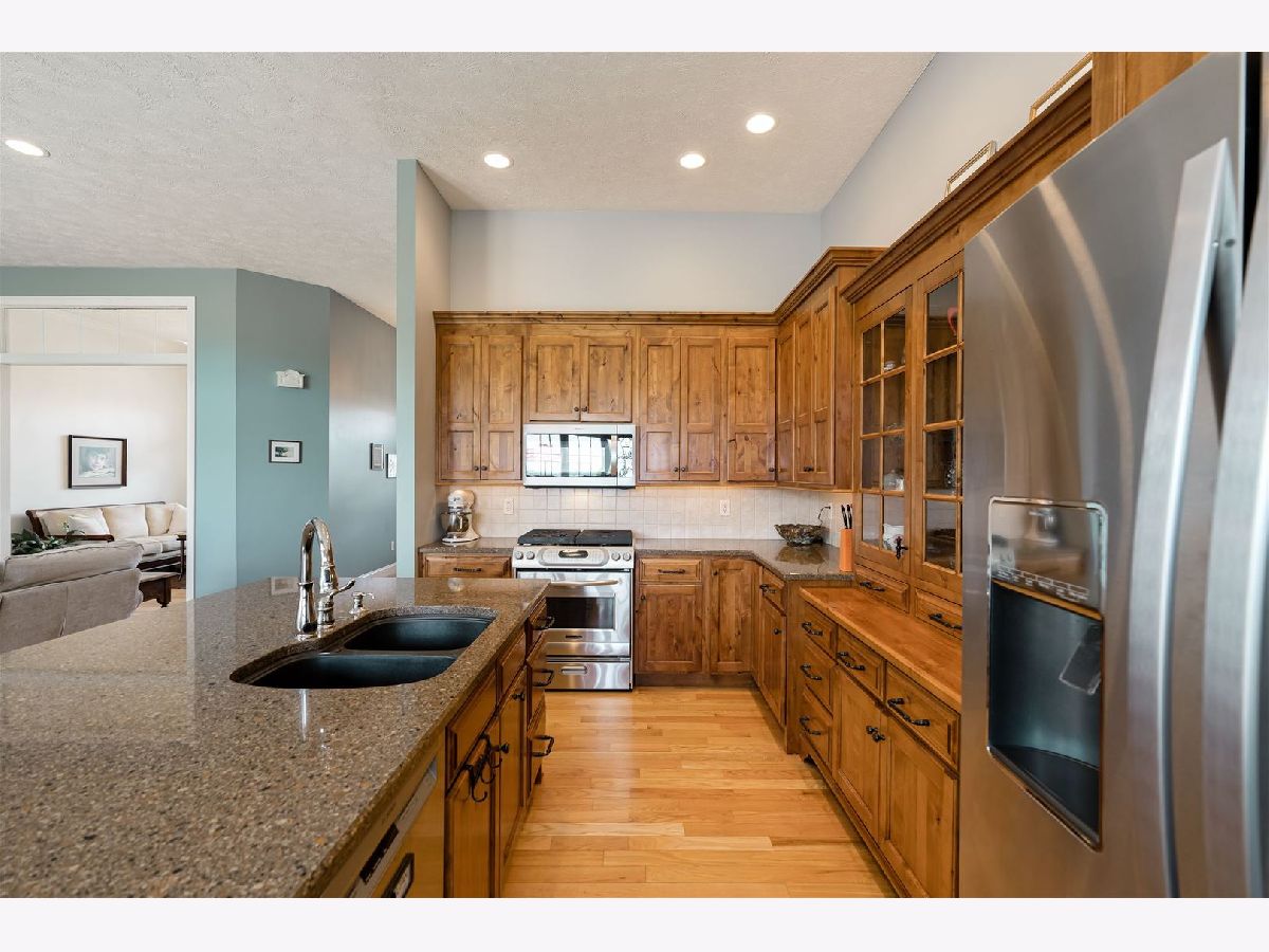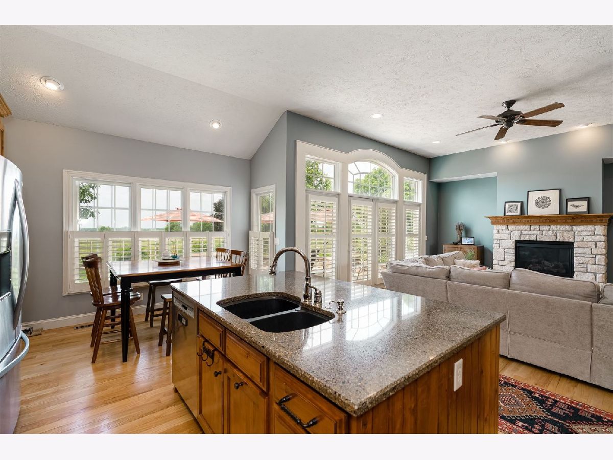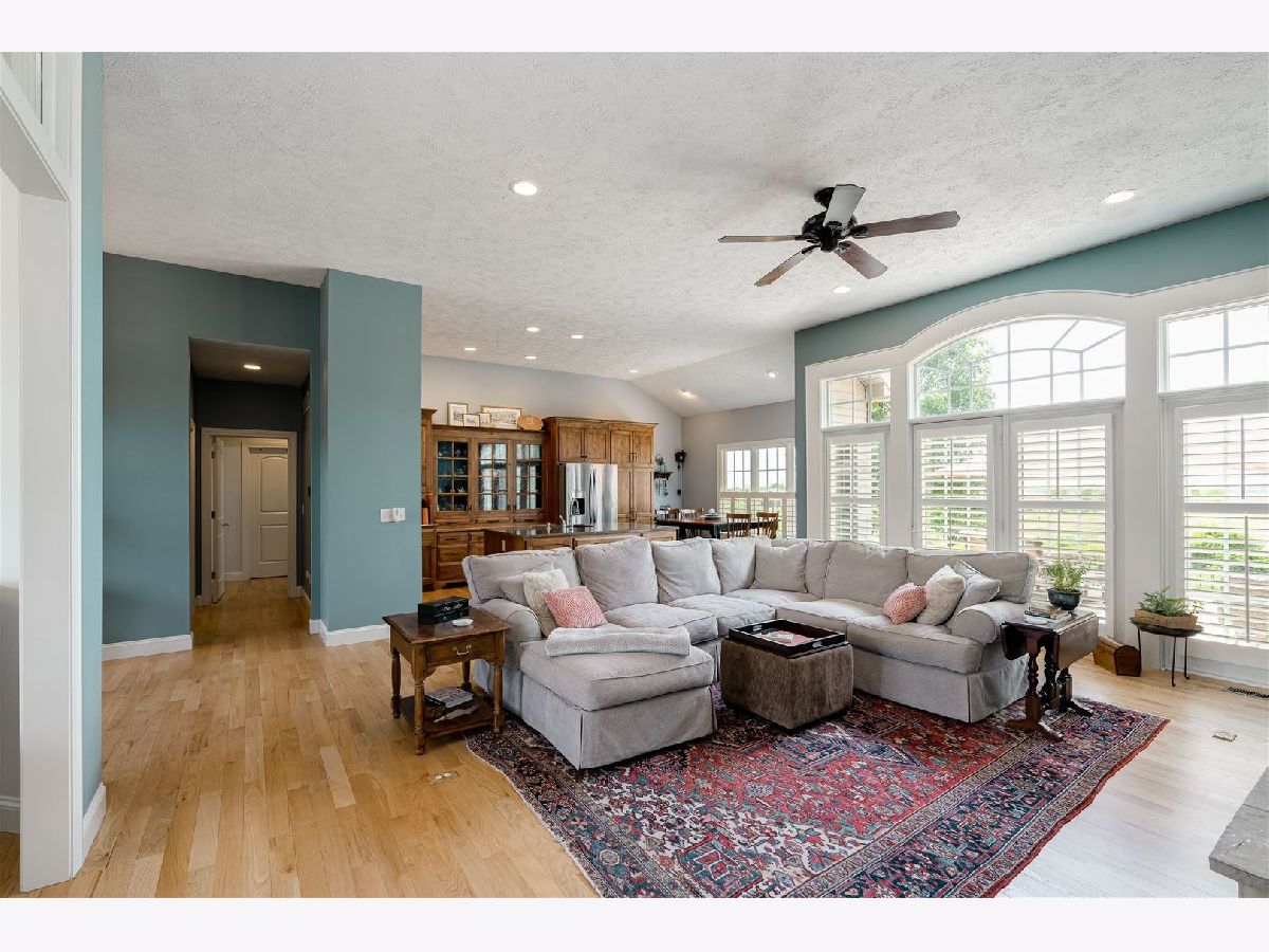 Showings start on Thursday afternoon, use showing time. This Custom-built home shows like new... located in Fox Creek Subdivision, on the Den Golf Course. It's a very quiet neighborhood on a cul-de-sac. PRIDE of OWNERSHIP throughout, 10-15 minutes to most anything! Imagine a sunset view every evening of the golf course with a country setting. Over $37,000 of improvements made to this home. It has a unique open floor plan, with all the conveniences of a 1 story home including laundry on the main. Hardwood floors throughout the main floor including the main level bedroom. Custom kitchen Elder wood cabinets and gorgeous granite tops plenty of cabinet storage and pantry in the kitchen. The high ceilings and Cathedral ceilings add to the spacious feel. Lots of storage space in the basement and throughout the house. Oversized 2 car garage room for a workshop and storage. Roof (complete tear off) and 6"gutters new in 2022. Beautiful epoxy floor added in garage in 2022. Sump pump and backup new in 2022. Some newer interior paint. Plantation shutters in most of the main level all window treatments and appliances remain. Family room in basement with a full bath and a cedar closet and another walk-in closet with plenty of room to still finish off.