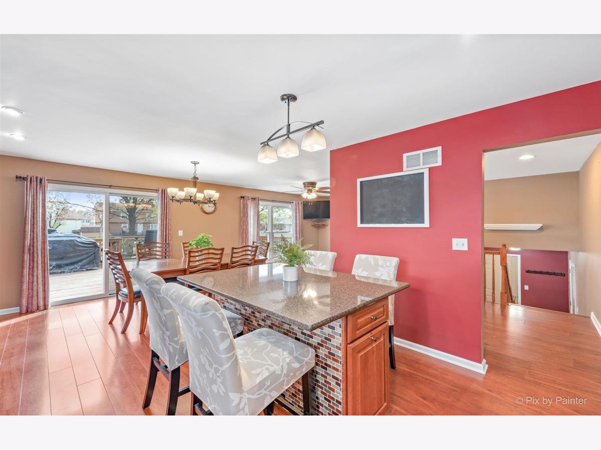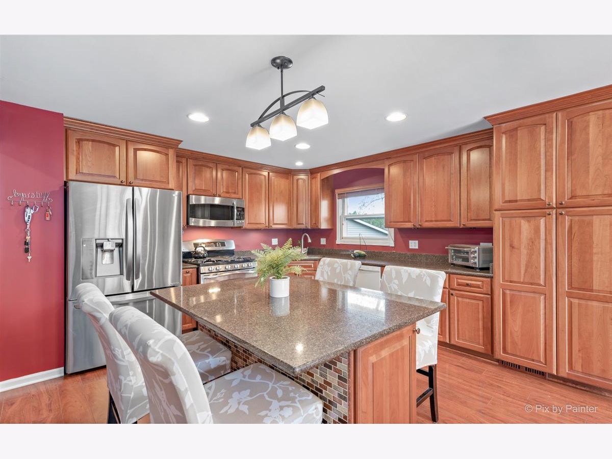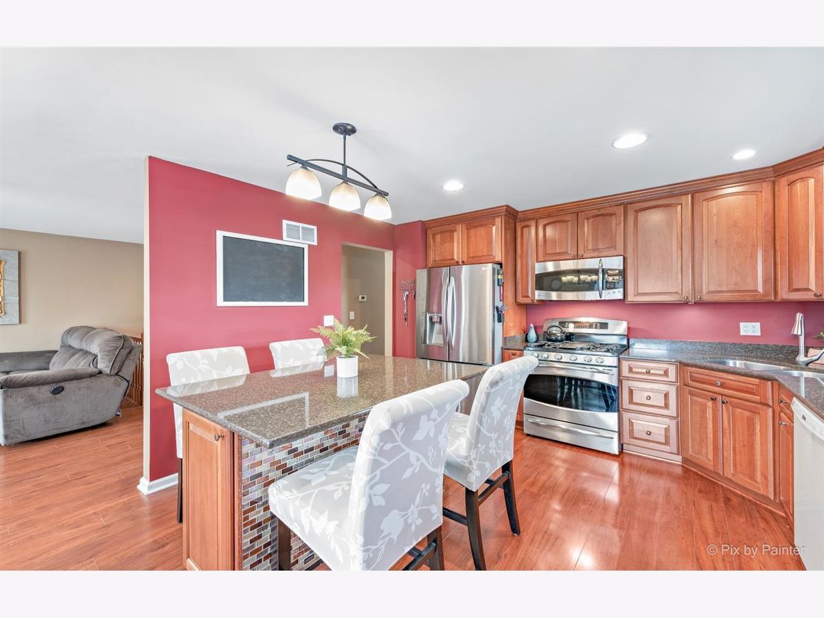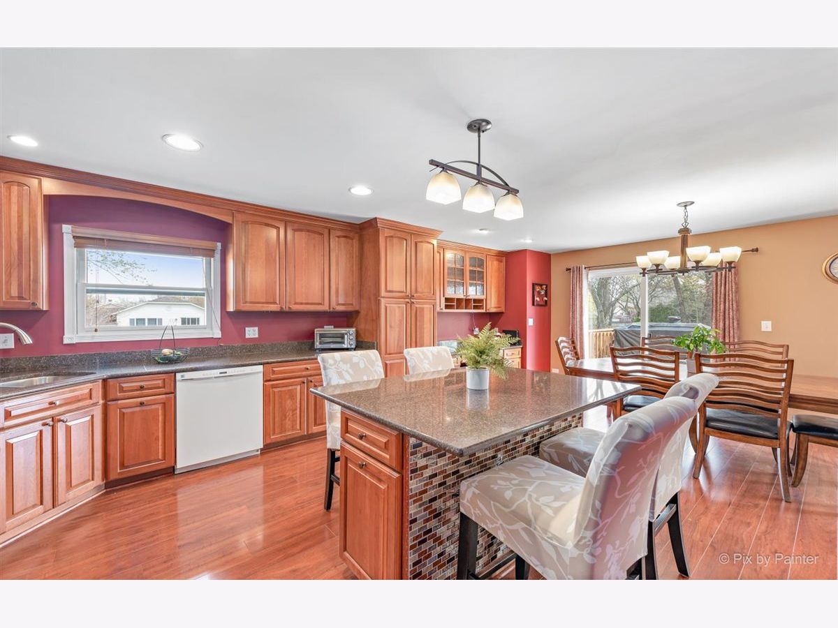 Wonderful Bi-level home on nearly 1/3 acre Cul-de-Sac lot with lots of room to roam and an open feeling throughout. Beautiful newer remodeled kitchen with Merillat custom cabinetry w/ slow close doors/drawers & granite counters; big pantry closet & built-in office desk area with storage & file cabinets. Huge Island eating area has extra storage & pull out trash container system. Canned recessed lighting in kitchen too. Living & Dining Rooms with lots of eastern light & patio sliding doors to an oversized multi-tiered deck & above ground pool. Great big yard with horseshoe pits, a fenced garden & a firepit too. Plenty of grassy area for backyard games! All bedrooms are spacious & the Master Bedroom has a full bath too. Lower level English Family Room is quite large with a gas starter wood burning fireplace & wall mounted flat screen TV that stays with home. Stereo surround sound speakers stay. Laundry & bathroom separate this area from an Recreation Room that is also large with refrigerator, pool table & wall mounted TV that stay with the home. Recessed lighting in lower level too. Washer/Dryer 3 years Windows approx 10 yrs old / Roof 3 years Gutters have leaf guards / Deck is 7 years / Furnace, Central Humidifier & Central A/C 5 years / Backup sump pump / 4 ceiling fans / built-in safe Master Bedroom. Huge 30 x 15 Oval Pool & all the supplies are included. Heated garage with big extra workspace or storage area. Incredible long driveway for extra cars or toys! Possible in-law opportunity in the lower level. Truly a great place to hang your hat! Welcome home.