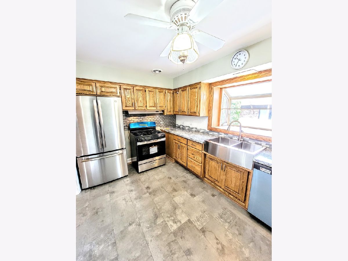Nice brick ranch on quiet dead end street.freshly painted thru out gleaming refinished hardwood floor new stainless steel appliances cozy den with gas fireplace finished basement with new carpet and office/ exercise home newer washer and dryer included extra fridge and freezer in storage area private patio for entertaining detached garage and fenced yard, settling estate.. Deal fell through, Sold as-is