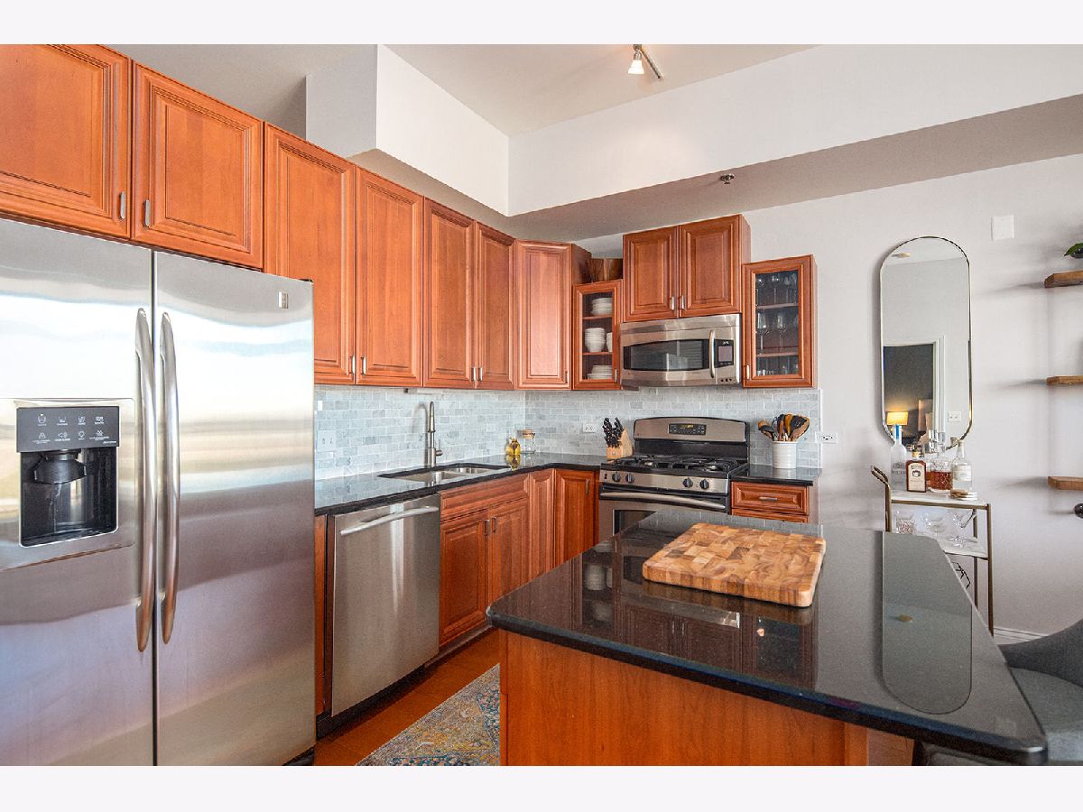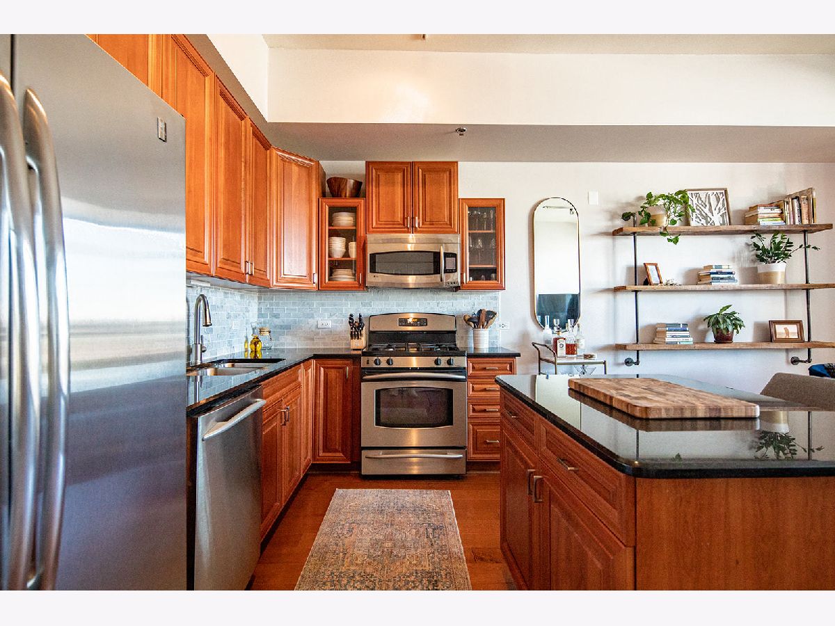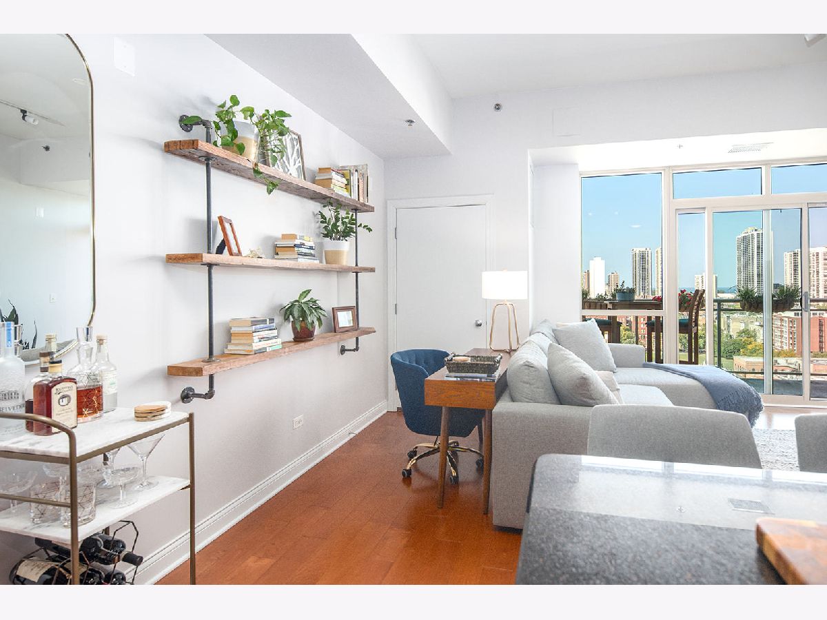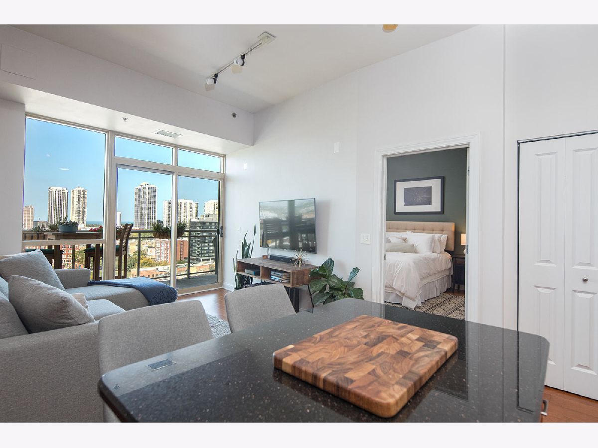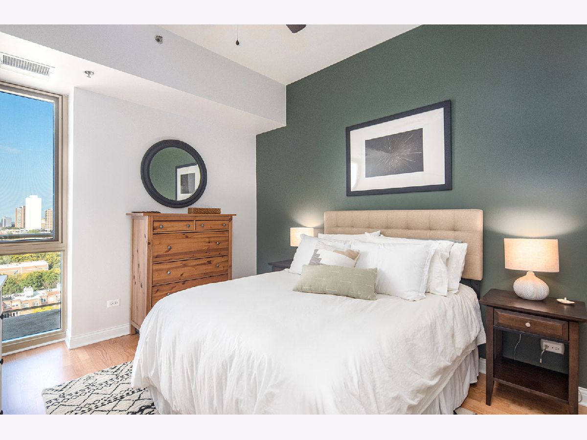Ideally located 2-bedroom Old Town condo with amazing views of the lake, city and sunsets. Master bedroom with walk in closet and en suite bathroom. Lofty feel with 10 ft soaring ceilings, in-unit laundry, built-in reclaimed wood bookshelf, and open concept living. Pristine condition with hardwood floors, gorgeous updated kitchen w/ high quality upgraded cabinets, marble backsplash, GE Profile stainless steel appliances, updated bathrooms, in-unit washer/dryer, large balcony off of living room, and Nest thermostat. Additional storage unit and deeded parking space in heated garage included in price. Fantastic boutique building with fully equipped work out room with views of the city, renovated sundeck in 2020, enclosed dog run, receiving room and 24 hour door person. Walk to nightlife/boutiques on Wells, CTA train & bus, multiple grocery stores, countless restaurants, Soulcycle & Shred 415, and so much more. Please note: the listing price of this unit INCLUDES a deeded parking space.