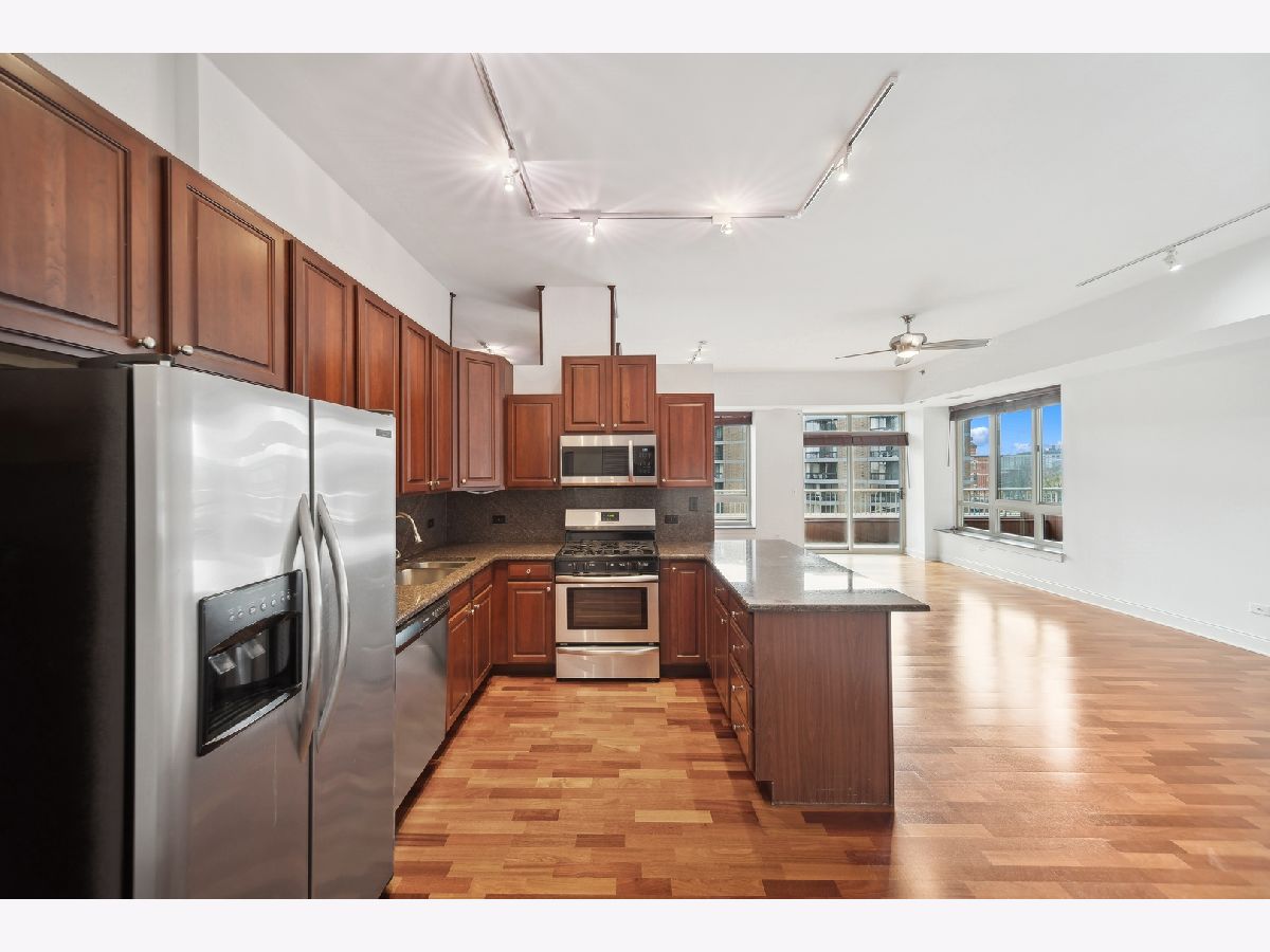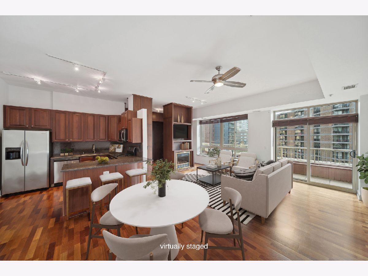 Looking for PRIVATE outdoor space?! Discover urban luxury at the Venetian in the heart of Old Town. This open, modern 2bed/2bath plus den with 10ft ceilings is a rare gem, the only unit in the building to have a massive wraparound 2,400 square ft private terrace. This is a singular opportunity to own and customize this expansive outdoor space to create your dream oasis, perfect for entertaining or relaxing. Enjoy premium amenities, including a 24 hour doorman, elevator, heated attached garage, refreshed 5th floor common terrace with grill stations, patio furniture, and garden scape, newer penthouse level fitness center with city and lake views, and common rooftop sundeck. The building is pet-friendly and offers conveniences like a bike room, storage lockers, and dry cleaners. Just steps away from shopping, dining, public transportation, and all Wells St has to offer. Heated, attached garage parking spot is an additional $30,000. Some photos virtually staged.