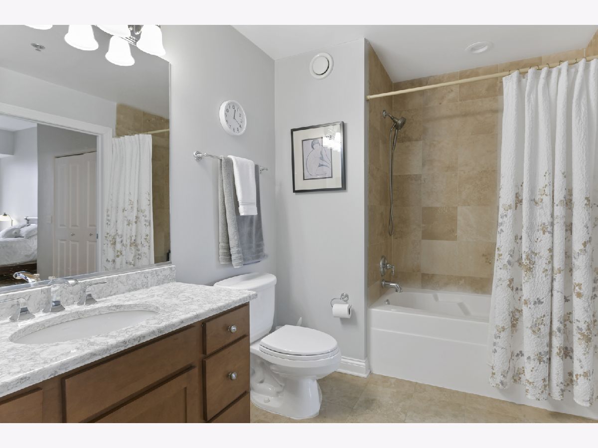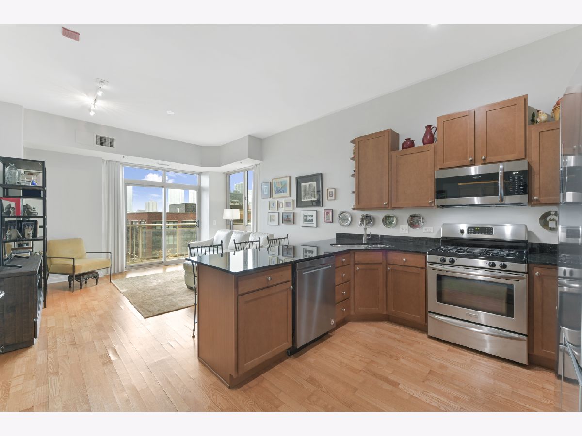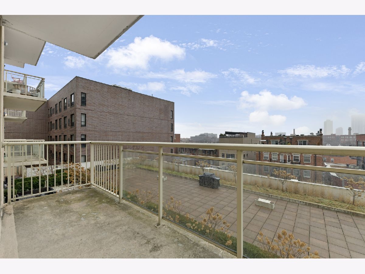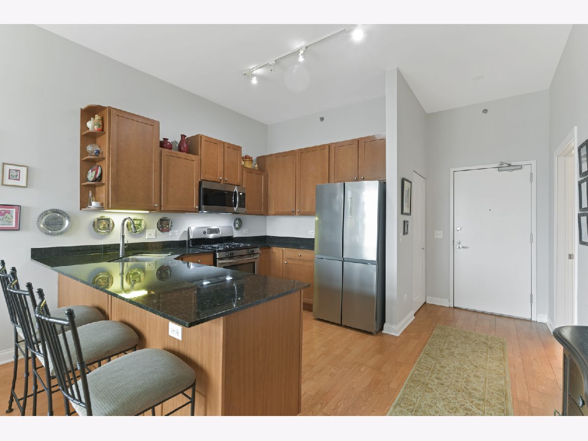 Spacious one-bedroom, one-bath condo in a full-amenity building in the heart of Old Town. The unit boasts a large kitchen with updated cabinets, granite countertops, and stainless-steel appliances. The expansive living room which opens to a wraparound balcony overlooking the HOA-maintained terrace, complete with lush greenery, planted trees, a fire pit, BBQ area, and outdoor seating. The generous bedroom offers comfort and versatility, while the full bath provides dual access from both the hallway and bedroom, creating a primary suite feel. Additional conveniences include in-unit laundry. Building amenities include 24-hour door staff, a fitness center, a 5th-floor outdoor terrace, and a 16th-floor rooftop sundeck with stunning views. The seller does not own a parking space; but a parking spot may be available to purchase or rent separately from a different owner. Inquire about parking.