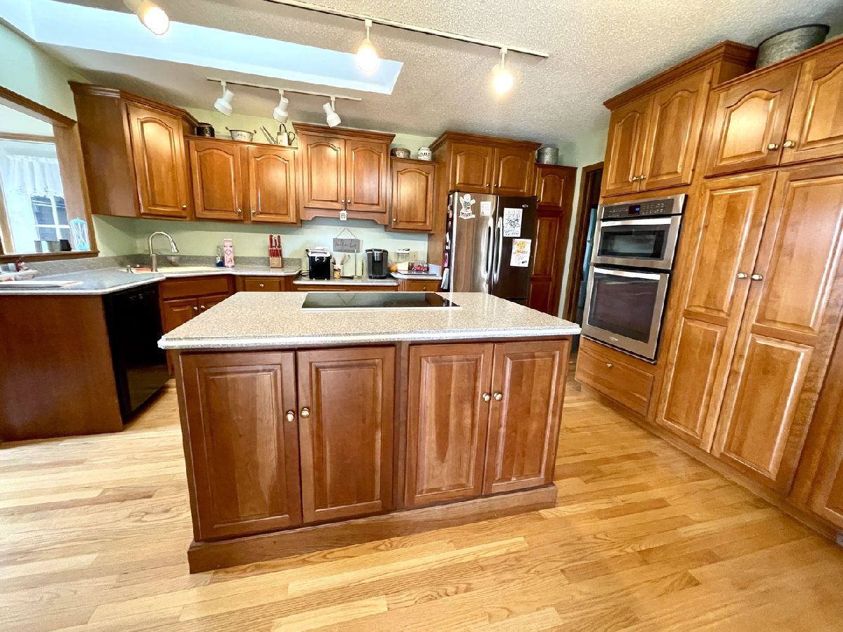 Everything you've always wanted is right here wrapped up in one package! Located at the edge of town with city utilities you'll find this amazing 4 bedroom, 2.5 bath farmhouse with solid cherry custom built cabinets, hard surface counters, breakfast bar and a light filled skylight. Perfect location at the edge of town yet extremely convenient with a large 2.42 acre yard perfect for having your own space to do as you wish. The 40' x 100' outbuilding features a concrete floor and a separate 200 amp electrical service that was installed in 2012, new gutters in 2022 and new springs on both doors in 2023. It is plumbed for an additional bathroom to be added if desired. Attached is an oversized 2 car garage with a 12' tall new garage door (in 2021) and there is one other 19' x 26' outbuilding with new electric in 2022 for extra storage. New roof was installed in 2020, a Kohler whole house generator was added in 2021 and the driveway was blacktopped in 2022. Spacious main floor suite with its own full bathroom with double sink and easy access to the main floor laundry on the main floor laundry. The floor plan has been reworked so that there is now an additional main floor bedroom as well as 2 bedrooms upstairs and another full bath. Open staircase leads down to the solid hardwood flooring in the living room, dining room, kitchen and family room. This property is hard to beat so don't wait too long or it will be gone!