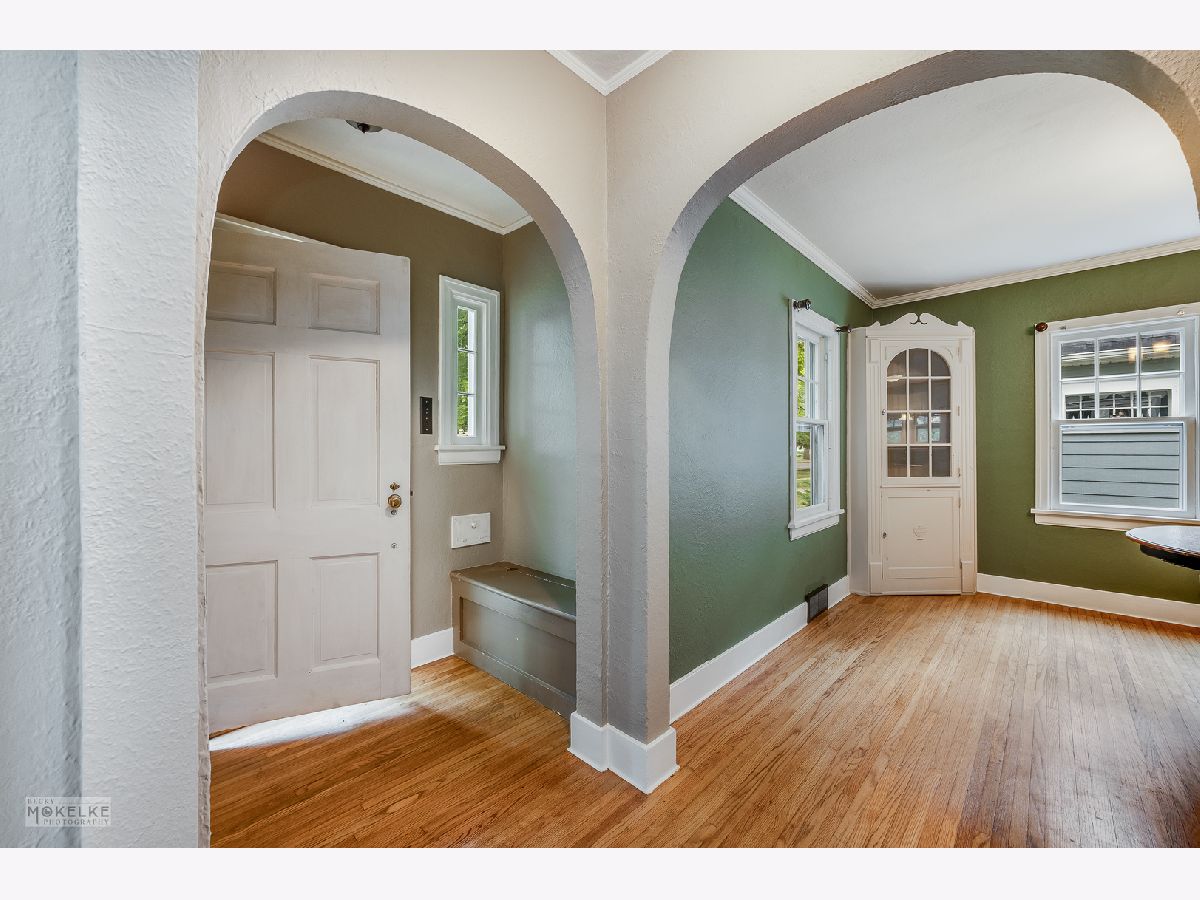Classic charm & character with all the right modern touches! This beautiful two-story home is located near Aurora University. You will love the arched doorways, crown molding, built-in cabinets, and hardwood floors on the 1st and 2nd floors. Enjoy the updated kitchen w/ cherry cabinets and SS appliances (new stove and microwave), which opens to a spacious dining room w/ a built-in corner cabinet. The living room is nicely appointed with a beautiful fireplace. The bathroom has been updated with tile floor & surround, wainscot, and updated fixtures. You will find tons of closet space throughout this home, including a walk-in closet in the master bedroom; a foyer w/ a coat closet and window seat w/ storage. The full basement also includes a half bath! Outside you will discover the huge screened porch- the perfect spot for morning coffee or evening cocktails. There is a generous sized yard to enjoy your BBQs, along with a detached 2 car garage w/ built-in storage and updated electric. New Hardie board siding in 2013, updated light fixtures & ceiling fans, newer storm windows, fresh paint, new HVAC and carpet. Welcome Home!
