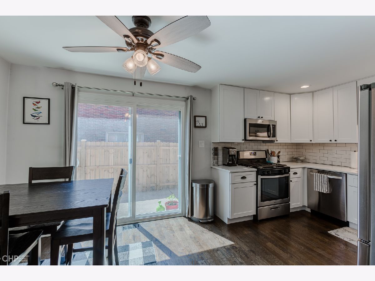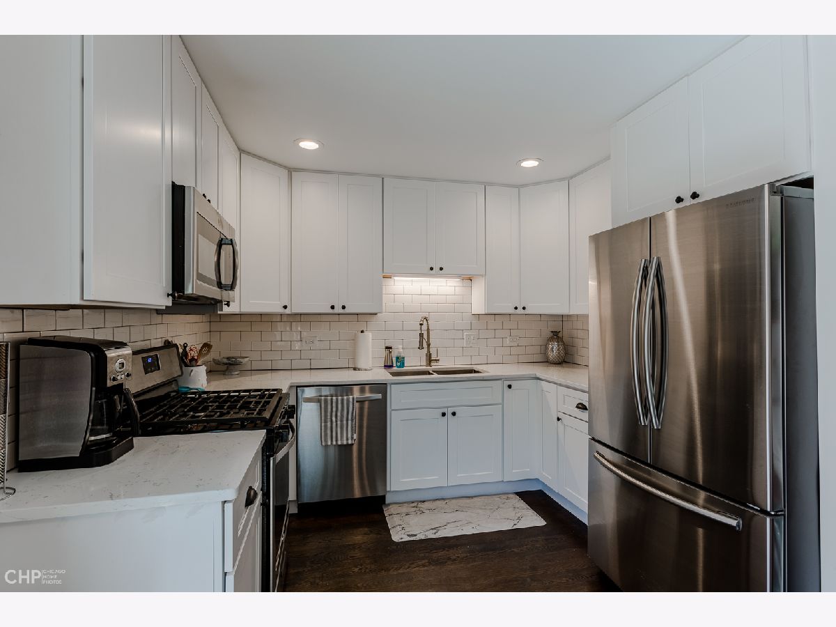 This is the one. Fantastic 2016 remodeled townhome unit D. Offers living room, dinette, 2 large bedrooms with double door closets, 1.5 baths and a full finished basement with a huge entertainment space and plenty of room for storage. Newer hardwood flooring throughout and a charming updated kitchen with white Shaker-style cabinets, granite countertops and an upgraded stainless steel appliance package. Both baths have been remodeled to perfection. also, a good-sized patio for outdoor enjoyment. Furnace and A/C and hot water and widows are also newer. Roof on complex replaced in 2018. Close ride to major highways, close distance to shopping, schools and restaurants and the Beverly Art Center.
