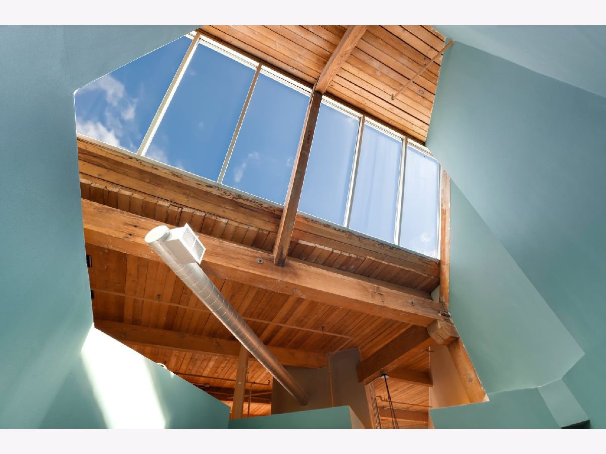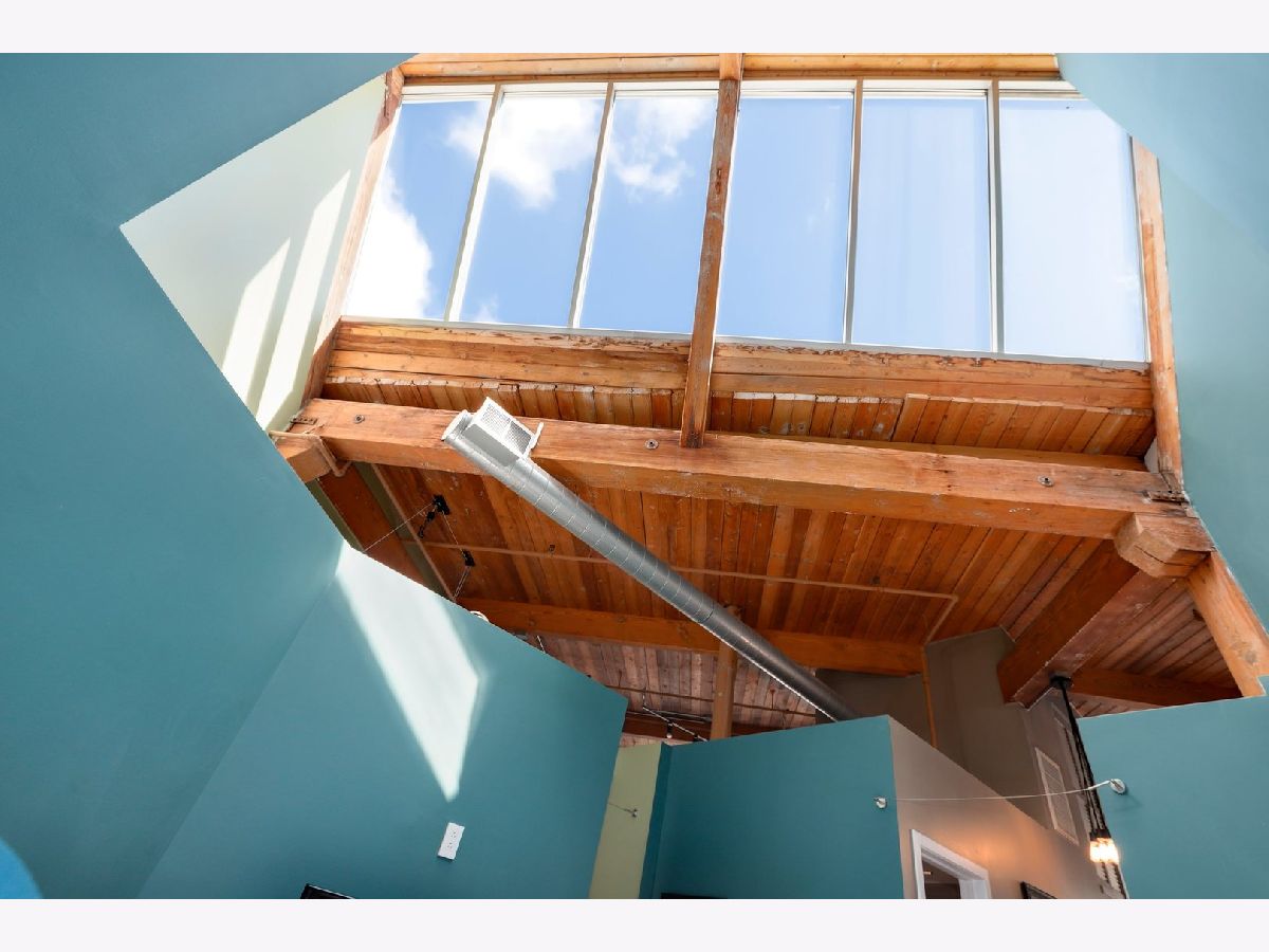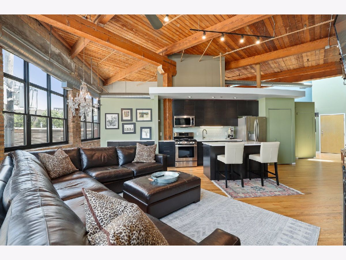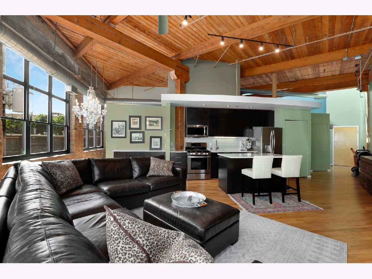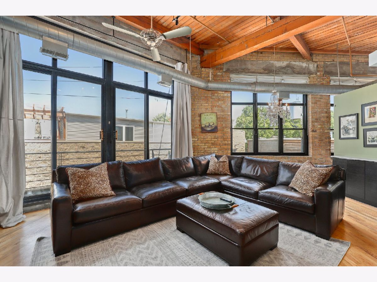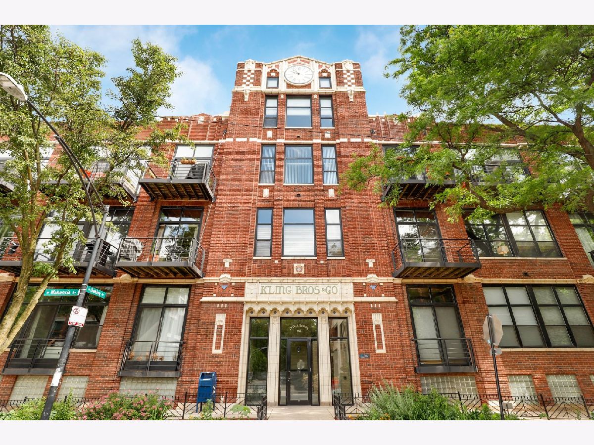 RARELY AVAILABLE TOP FLOOR BRICK AND TIMBER LOFT WITH SKYLIGHTS. Welcome home to Clocktower Lofts in prime Bucktown location close to everything! The 606, Western and Damen Blue Line access, parks, Robey Hotel, Piece Pizza, Big Star, Handlebar, Wormhole, shopping, dining and nightlife are all right outside your front door. Move-in and enjoy your summer on your own private, quiet north facing balcony or common rooftop deck. This split floor plan, two-bedroom home is one of the most unique units in the building and offers massive amounts of natural light all day long. Features include dramatic vaulted 16 ft ceilings throughout, and 20 ft ceilings in Master bedroom with skylights, beautiful exposed brick and ductwork, hardwood floors, gas fireplace with custom modern surround that reaches the ceiling, a full wall of windows with custom window coverings and private balcony. The kitchen is the center of the condo and has been updated with brand new stainless steel appliances and Quartz countertops. It offers a center island perfect for gathering and entertaining and is open to the living and dining room with a beautiful chandelier. Remodeled modern bathroom + guest bathroom, Bosch washer/dryer in unit and tons of closet space throughout. Heated, deeded indoor garage parking and storage unit included! Clocktower Lofts offers secured entry, exercise room and rooftop deck with 360 city views. Click on the 3D tour and take a walk around before booking your private showing. Contact-free or video showings available. Don't miss out on this wonderful opportunity!