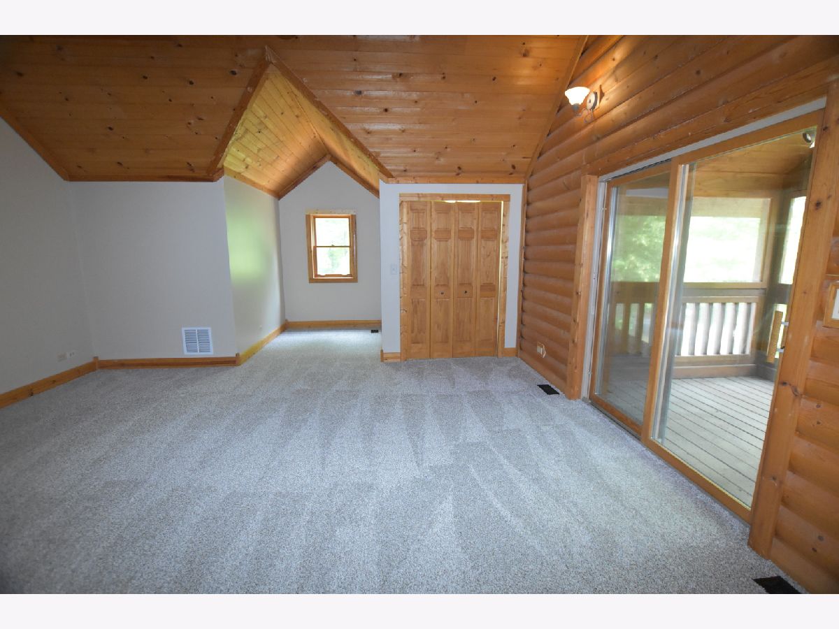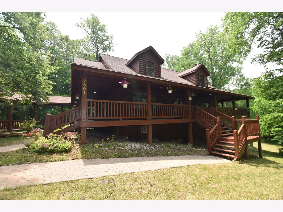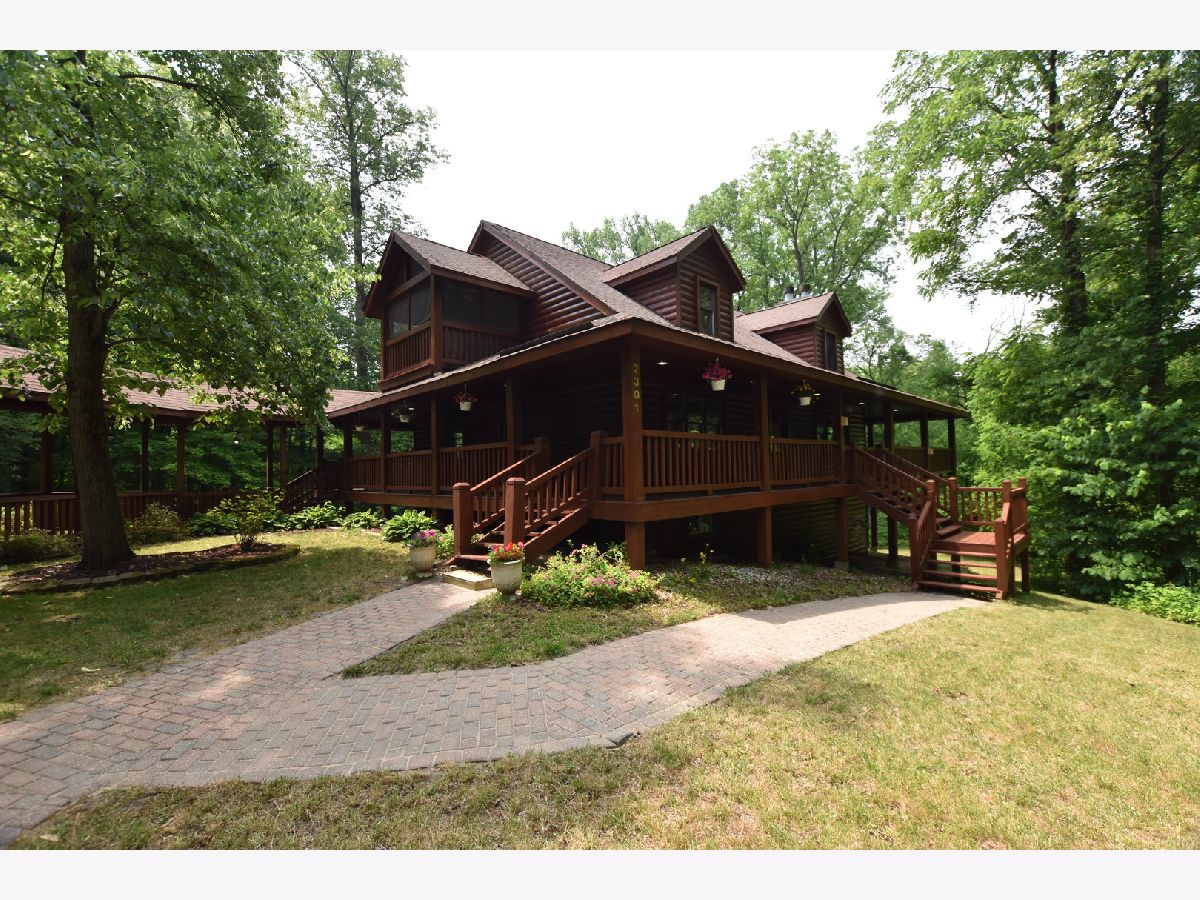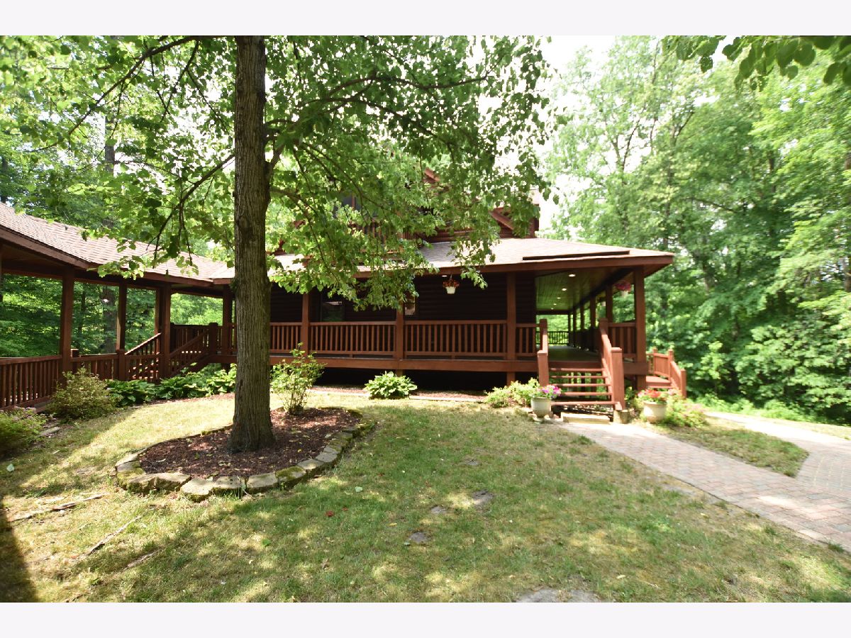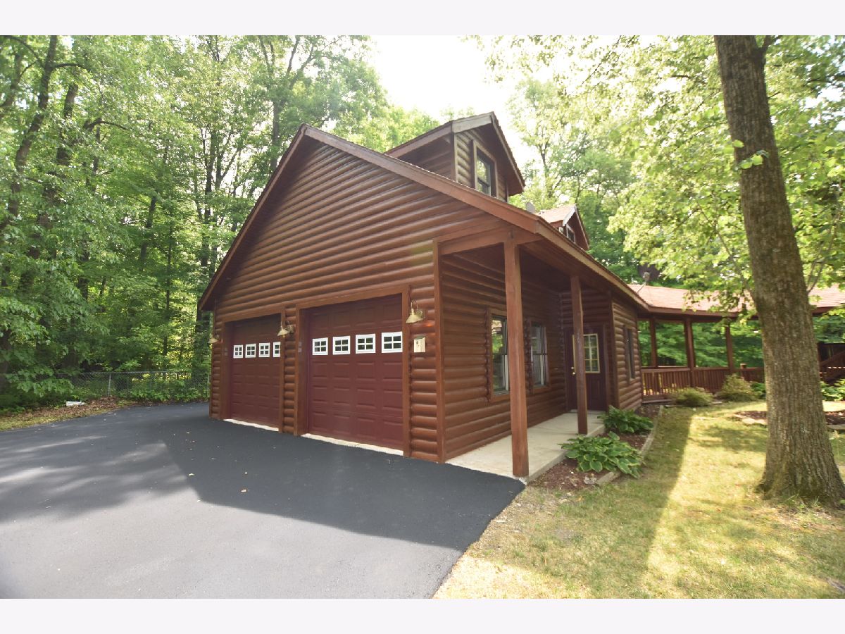 FLAWLESS! Secluded Custom Built "Log-Sided" Home w/Dry Wall-Almost 2 Wooded Acres with 5 Bedrooms, 3 Full Baths, and Vaulted Beamed Ceilings! All of this plus a large loft that overlooks the lower level and a two-story, floor-to-ceiling stone fireplace. The second-floor master suite has sliding glass doors to a private screened porch, 2 closets & a luxury master bath w/Jacuzzi tub & separate shower with dual vanity sinks. One of the true highlights of this home is the full, wrap-around deck with tranquil views. The home also boasts a walk-out basement which is highlighted by a second fireplace. The house has a dream, oversized 2-car garage with a fully decked walk-up storage area that is dormered. The garage is connected to the main house with a covered deck. The property is adjacent to forest preserve property that will never be built on. Additional features include new appliances, new carpet, new paint, newly refinished hardwood, new updated lighting, new plumbing fixtures, new quartz countertops, a new furnace, a new hot water heater, and a new AC compressor. The home also has a gas-powered generator. If you can find a comparable lot, build this home for $850,000, or buy it now! This is a one of kind, very rare, log cabin value. This is the PERFECT second home, retirement home, home to escape to, home to live in, or investment home to rent or AIR BNB. Total privacy and seclusion!