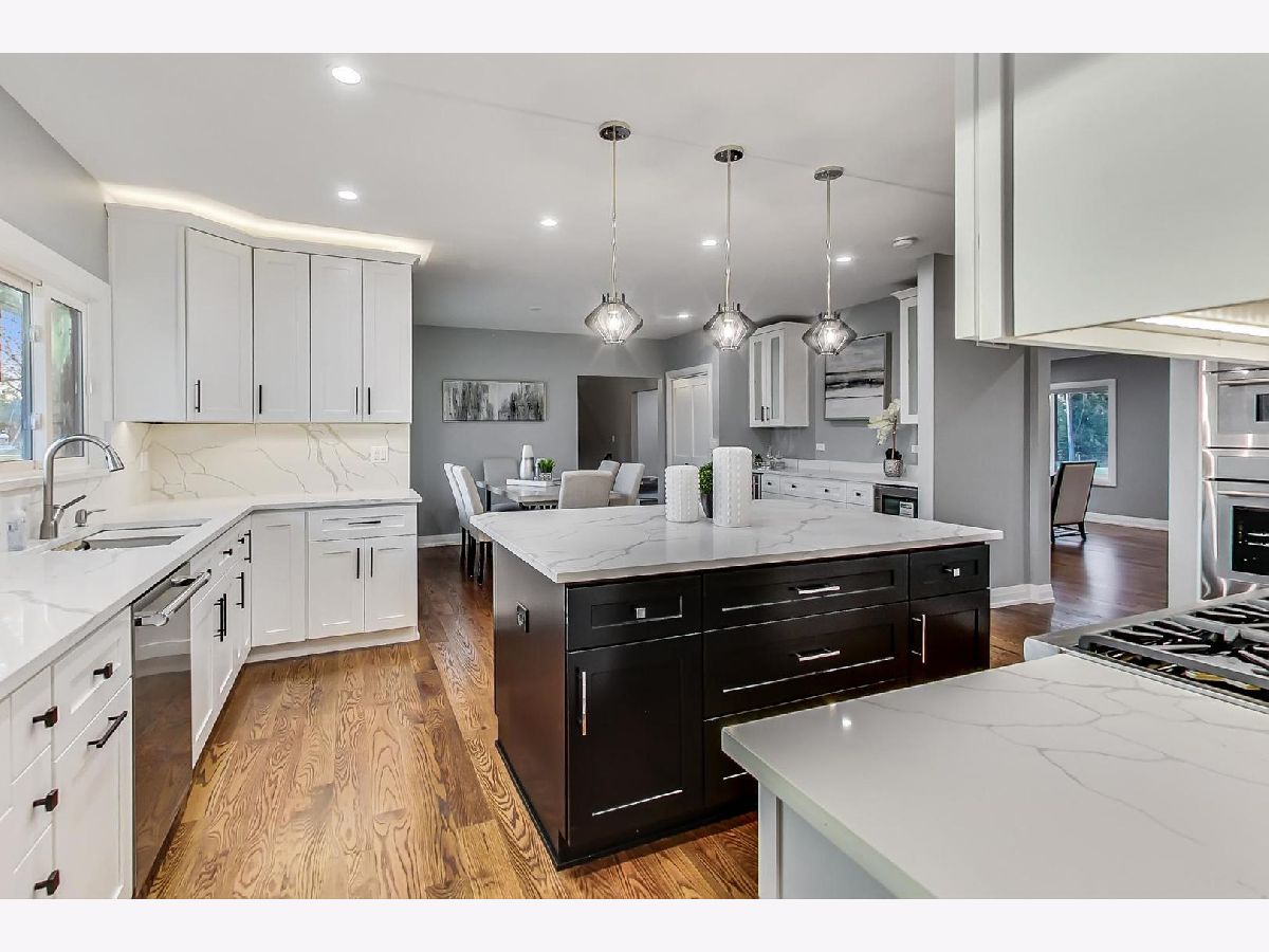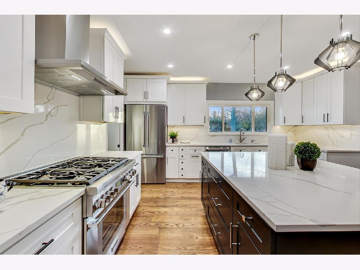 Welcome to 2301 Dorina Drive! This perfectly appointed home will charm you from the moment you walk in and it's finally the Northfield home you've been waiting for! The open floor plan's easy natural flow perfectly blends high-end finishes with custom details on point for today's buyers looking for space where they can easily & comfortably live, work, play, and entertain all under one roof. This immaculate Sprawling Split Level sits in the exclusive 2 lot Santucci Subdivision of Northfield and is walking distance from New Trier Schools (District 29/203) and it's just minutes away from the train, library, parks, fine dining, and entertainment. 2301 Dorina has 6 very generously sized bedrooms and 5 full bathrooms. The main level makes it easy to entertain as the inviting foyer leads directly to a bright & spacious Living Room with a marbled fire place and Dining Room with French patio doors leading out to one of two backyard concrete patios. Boasts an entertainer's kitchen with an oversized quartz island. This completely new kitchen features white Shaker cabinets, quartz countertops, luxury stainless Thermodor appliances, and an enormous walk-in pantry conveniently situated in-between the refrigerator and the incredible 6 burner oven range with sleek hood and quartz backsplash. The comfortably sized breakfast area is across from the beverage/entertainment area featuring a wine cooler and beverage center and is flanked by a large secondary pantry. The main level also offers incredible flex space as a sixth bedroom ensuite bathroom which is the perfect configuration for an office, fitness room, cozy bedroom or any other offshoot room which may benefit from its own private full bathroom. The main level includes an expansive mudroom/laundry room with double LG wash towers. The upper level offers 3 bedrooms including a charming Primary Suite which has its own grand entrance with French doors, a huge walk in closet, and an elegant bath offering a steam shower, double sink, makeup area, and a private water closet with an ultra-modern tankless wall hung toilet. The warm and spacious lower level is comfortably finished with a gigantic Family Room looking at a Stone Fire place, wet bar/kitchenette, and the French patio doors lead to a private & secluded concreted and brick enclosed sunken garden perfect for outdoor entertaining and grilling. The lower level also has 2 generously sized bedrooms and a full bath for comfort and convenience. The large partially finished basement features a fitness/exercise space with its very own medical grade infrared sauna. Welcome to Northfield living at its finest: easy living, easy maintenance, and a fabulous floor plan of light-filled rooms offering an ideal blend of casual living and elegant entertaining spaces perfect for today's lifestyle of live, work, study, play, and entertain from home with comfort, convenience, and luxury. Surely a Must See.