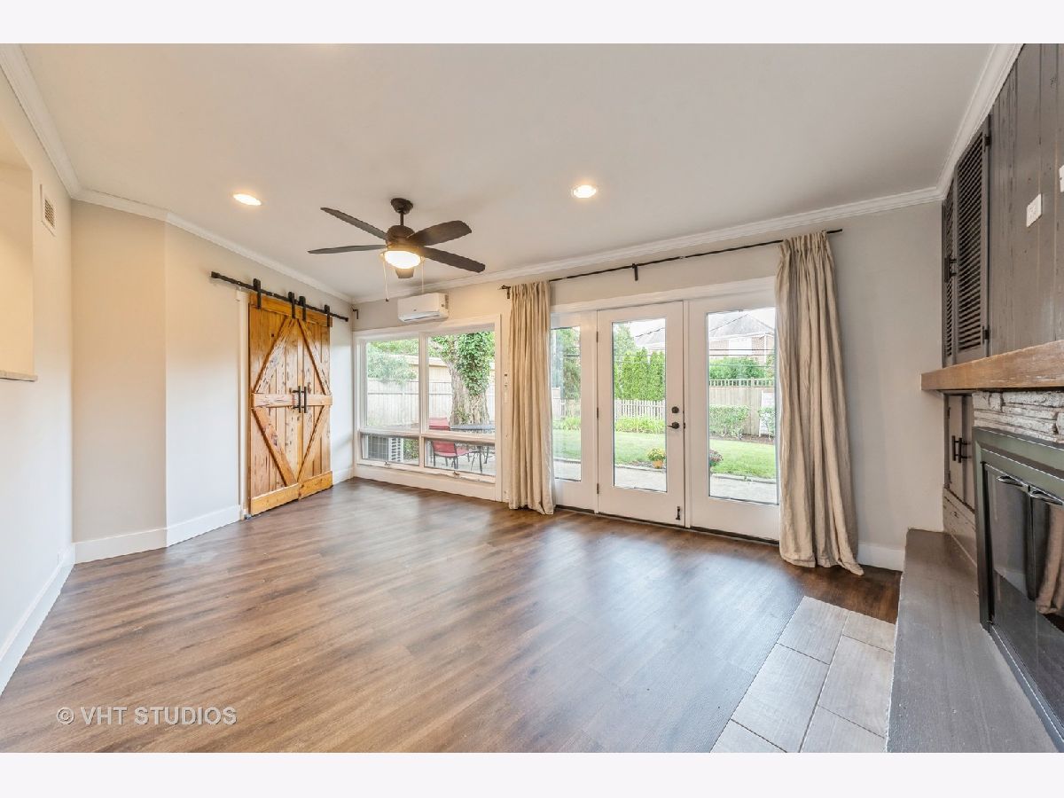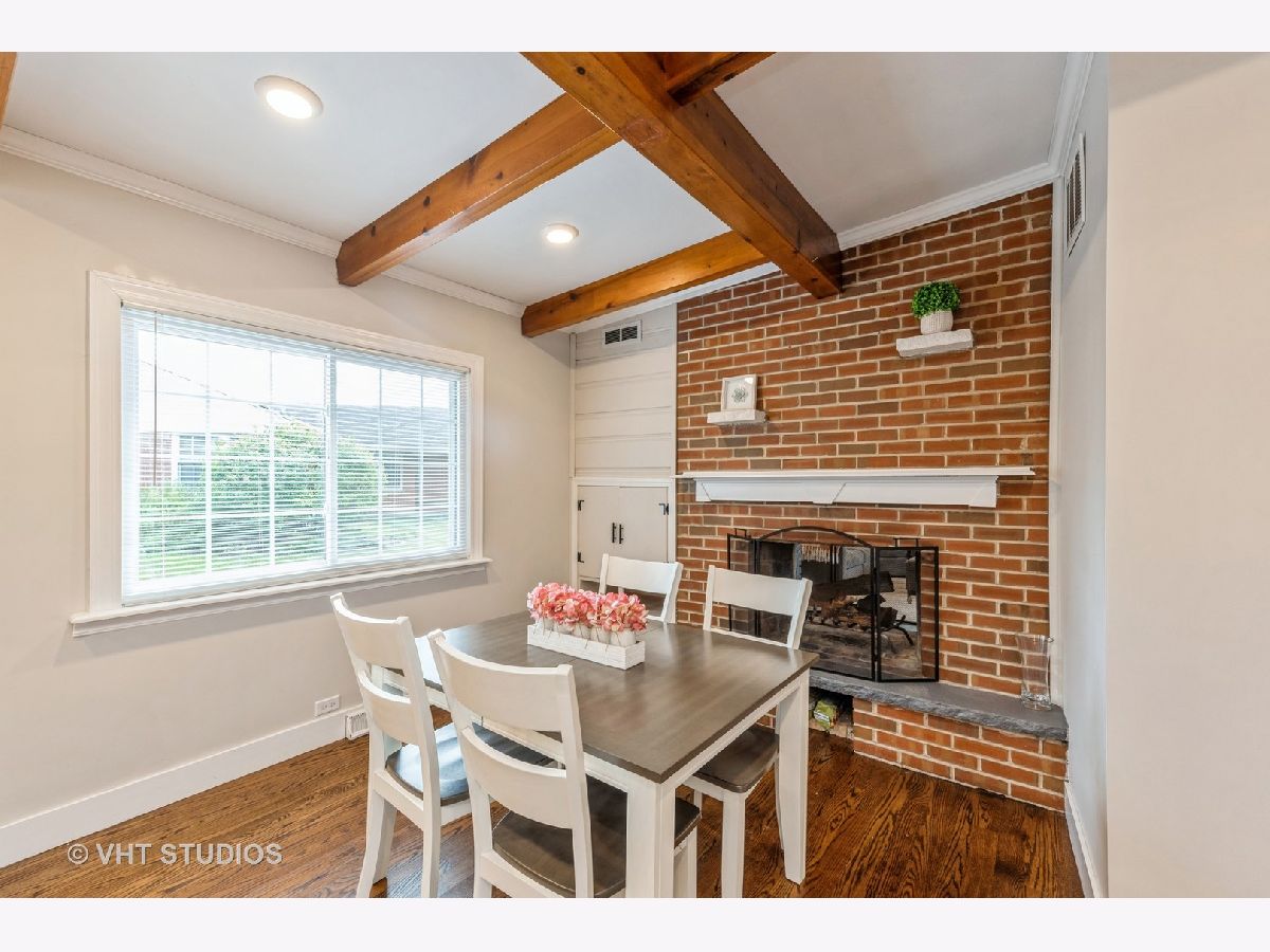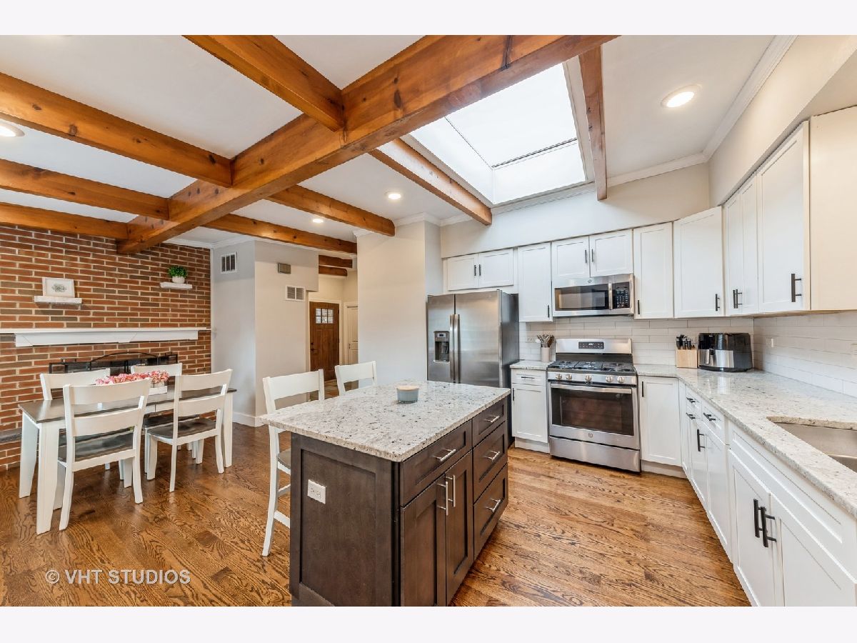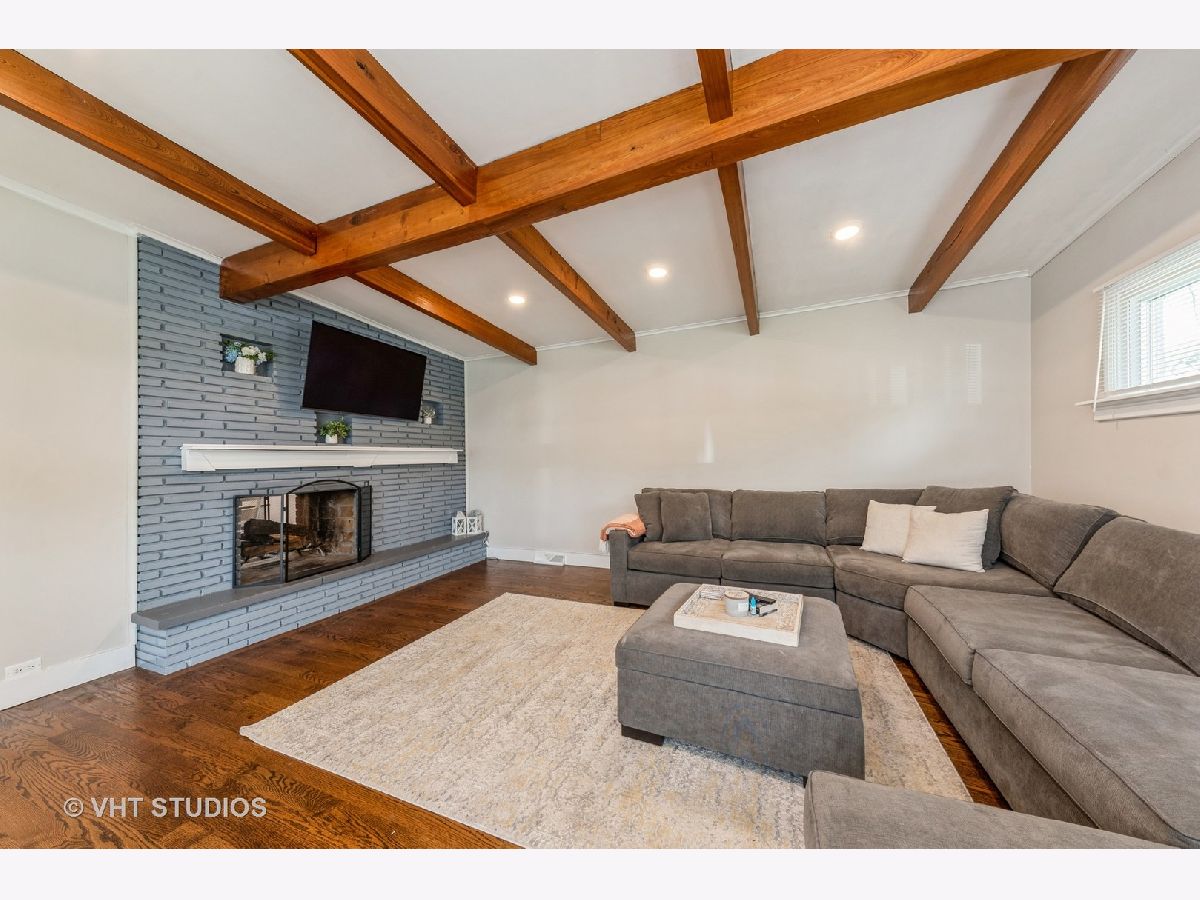 Modernized Mid-Century Modern! Enjoy the ease of one-level living in this updated, move-in ready ranch with NO BASEMENT near Downtown Glenview! The spacious family room features striking beamed ceilings, updated expansive windows, and a cozy wood-burning fireplace. Updated oversized kitchen further showcases beam ceilings and boasts ample white shaker cabinets contrasted with a dark island, granite countertops, a white subway tile backsplash, and stainless steel appliances and opens to the welcoming living room that overlooks the backyard. A sliding reclaimed wood barn door cleverly conceals the laundry room, complete with tile flooring, a mud sink, and front-load washer and dryer. This well planned layout features the bedrooms and bathrooms all on one wing of the home, with all three bedrooms offering hardwood floors, great closet space, and are conveniently located near two full hall bathrooms! One bath has a walk-in shower and double vanity, and the other with a tub/shower combo. Additional features include a spacious and fenced backyard with a huge patio, attached heated+insulated+drywalled two-car garage. Updates and upgrades galore, don't forget to check out the full list when seeing this home. Sought after Glenview Dist. 34 Henking, Hoffman, Springman and Glenbrook South Schools! Ultra-Convenient location near Swenson Park & Johns Park, Glenview Park Golf Club, Downtown Glenview Train Station, Glenview Library, and the re-imagined Downtown Glenview Area with tons of new restaurants just announced that are in the works plus many fabulous already established options. ~Welcome Home~ Just don't wait to see this one, or it will be someone else's home.