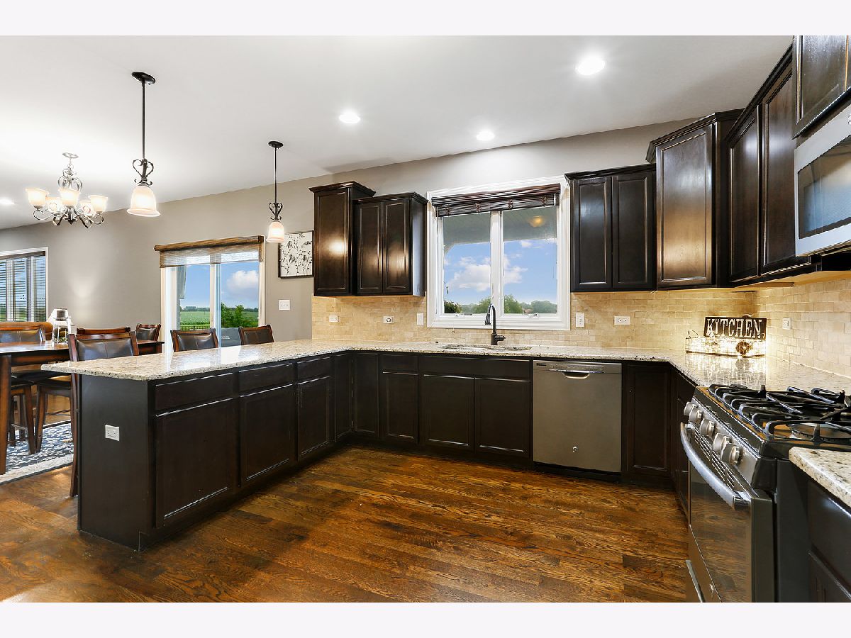 Extraordinary, custom residence set amidst a private, 1 acre lot that exudes serenity. Classic architectural design highlighted by brick and stone construction. Breathtaking grounds complete with over $80,000 in upgrades and $100,000 in custom landscaping. Inviting two story foyer with a designer wrought iron staircase and re-finished hardwood flooring throughout the main level. Formal living room or can be used as a dining room or home office with tons of natural sunlight. Stunning, gourmet kitchen with custom cabinetry, granite countertops, stainless steel appliances and a walk in panty with organization. Lovely eat in area with a sliding door to spectacular, expansive covered outdoor kitchen and patio space. Open concept family room with a beautiful floor to ceiling stone fireplace. A quaint mud room great for added storage. Second level features a spacious loft area with plush wall to wall carpeting and can be converted to a 4th bedroom. Incredible master suite with custom tray ceilings and a sizable walk in closet. Private master bath features a sprawling vanity, soaking tub and a gorgeous walk in shower. Two additional bedrooms on the second level with walk in closets and a shared full private bathroom. Second level laundry room for everyday convenience. Full, partially finished basement offers custom finishes (rounded wall edges, custom tray ceilings and epoxy flooring). The basement features, a bar, bathroom (rough in), recreation, gaming, storage and more. Unbelievable grounds with an outdoor kitchen with granite countertops, two firepits, custom stone work, outdoor surround sound system. Many updates include; Refinished hardwood flooring, Backyard upgrades-$80K, Landscaping-$100K, Partially finished basement- $35K, outdoor fence-$18K, sump pump-$2,500, security system-$3K, outdoor speaker system-$3-4K and updated bladder for the well system. Close to shopping, dining, schools, expressways and more. For any discerning buyer looking for ultimate privacy and acreage. Call for your private showing today