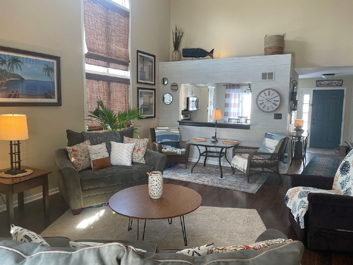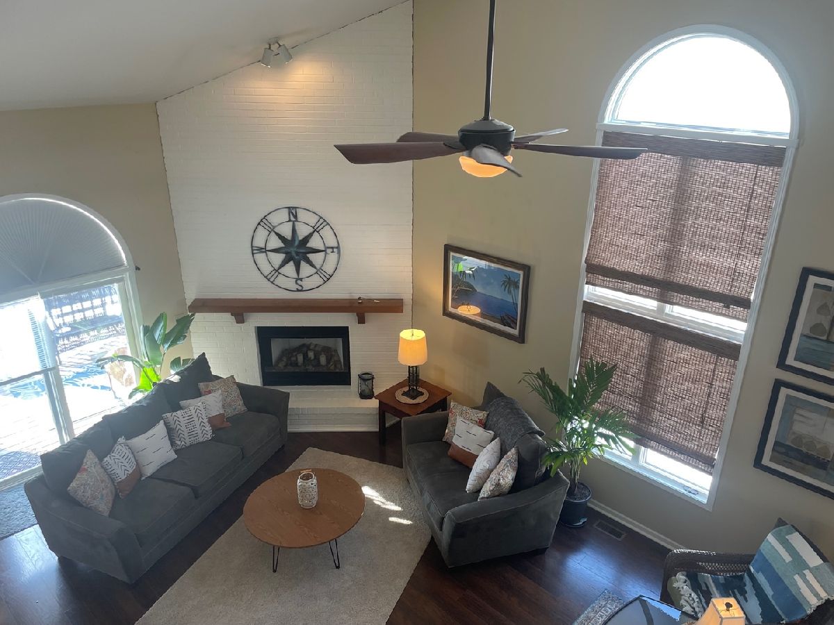 Welcome Home to this beautiful rarely available 2 bed with enclosed loft/bonus room (for possible 3rd bedroom), 2.1 bath 1/2 duplex in Plainfield's highly desired Winding Creek. Main floor master suite! Upon entry, you are greeted with neutral colors and gorgeous stone and wood laminate flooring. The updated kitchen features all stainless-steel appliances, Silestone counters, white cabinetry, and tile backsplash. The view from the bay window allows you to see Winding Creek Pond. Move on into the family room and prepare to be wowed. 15-foot vaulted ceilings and brick wood burning, gas start fireplace complimented by lots of windows for tons of natural light. The huge main floor master suite is light and bright. Master bath has massive vanity, with tons of space. The laundry room, which is attached to the master closet, and a half bath round out the main floor. Head upstairs to see the second bedroom, full bath, and loft/bonus room. The large loft, which features 2 skylights (that can be opened), has been enclosed to be used as a third bedroom, office, playroom, library, or media room. Huge full unfinished basement is waiting for your finishing touches. Basement has large egress windows, great for adding a bedroom, and is already plumbed, making a 3rd bathroom easy to add! The options are endless. Outside is a 10x10 covered hard top canopy over the deck, allowing you to enjoy the professionally landscaped yard in shade and privacy. Established neighborhood with mature trees, walking path, and community parks nearby. Home is conveniently located near shopping, dining, and highway access. Brand new roof in 2021. No HOA!