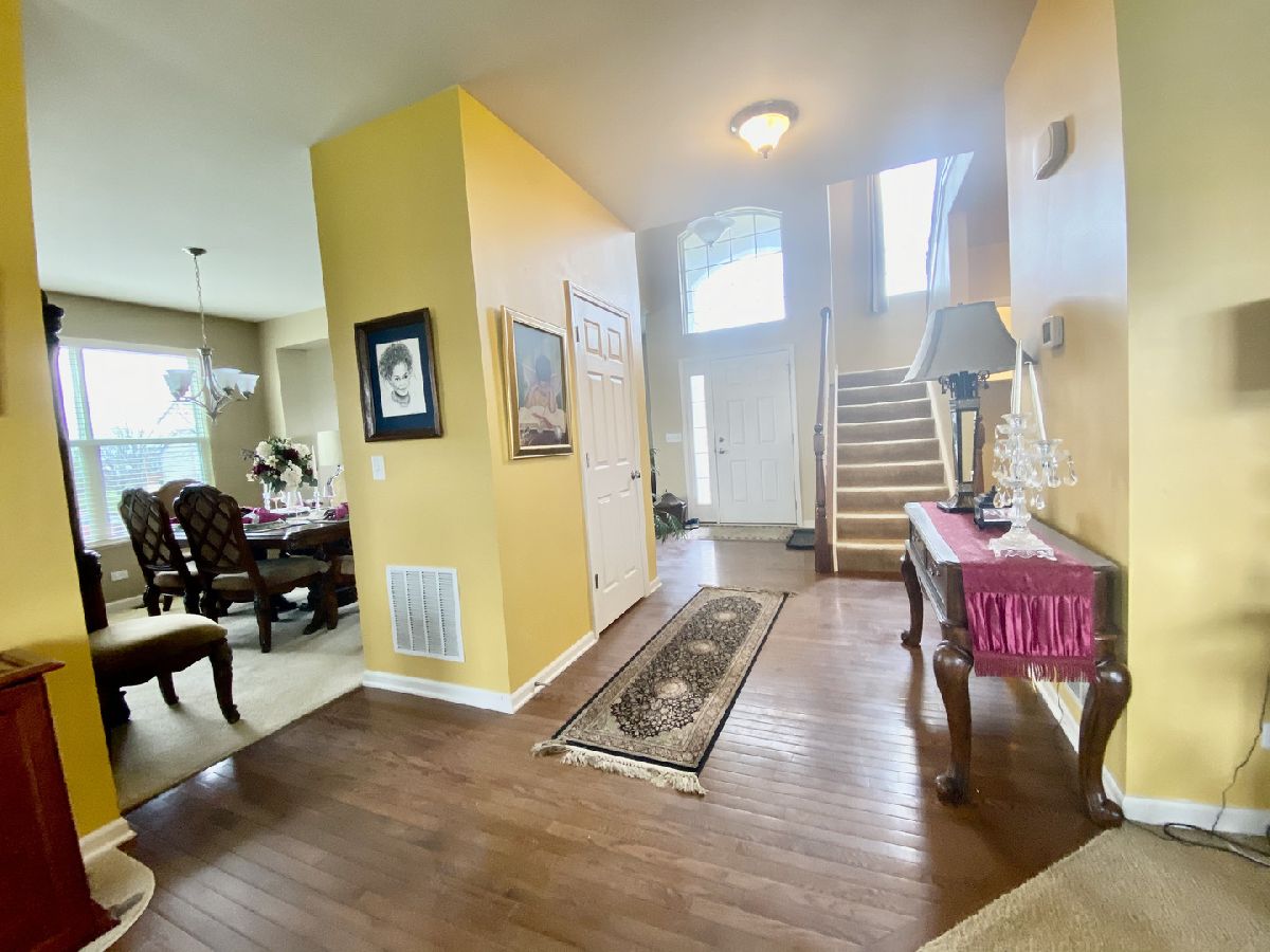 Vacant & MOVE-IN READY! Meticulously maintained and spacious. This 2 story home boasts 4 bedrooms, 2.1 baths, an open floor plan and is zoned to Yorkville schools. Upon entry, a grand first impression with its large foyer adjacent to a formal living and dining room with a switchback staircase. Hardwood floors on the main floor, large windows flooding the home with light. Cook's kitchen with 42" maple cabinets, upgraded stainless steel appliances, center island, and pantry. Large eating area with sliding door opens to a large deck and fully fenced backyard. The spacious family room is a great place to unwind and entertain. 1st-floor laundry with washer and dryer included. The expansive master suite has a vaulted ceiling, two closets, a luxury bath with dual sinks, a soaking tub, and a separate shower. Three generous-sized bedrooms with great closet spaces and a full hall bath. 2 bedrooms have full-sized walk-in closets. Expanded, unfinished basement. Plenty of room to plan an additional bedroom, recreational area, and media room. This home has a 50-gallon water heater and a built-in whole house humidifier. There is plenty of room for storage. Professionally landscaped large corner lot. This is an awesome community with plenty of trails parks and ponds. Great neighborhood to raise a family. Close to shopping, sports complex, and activities around the home.