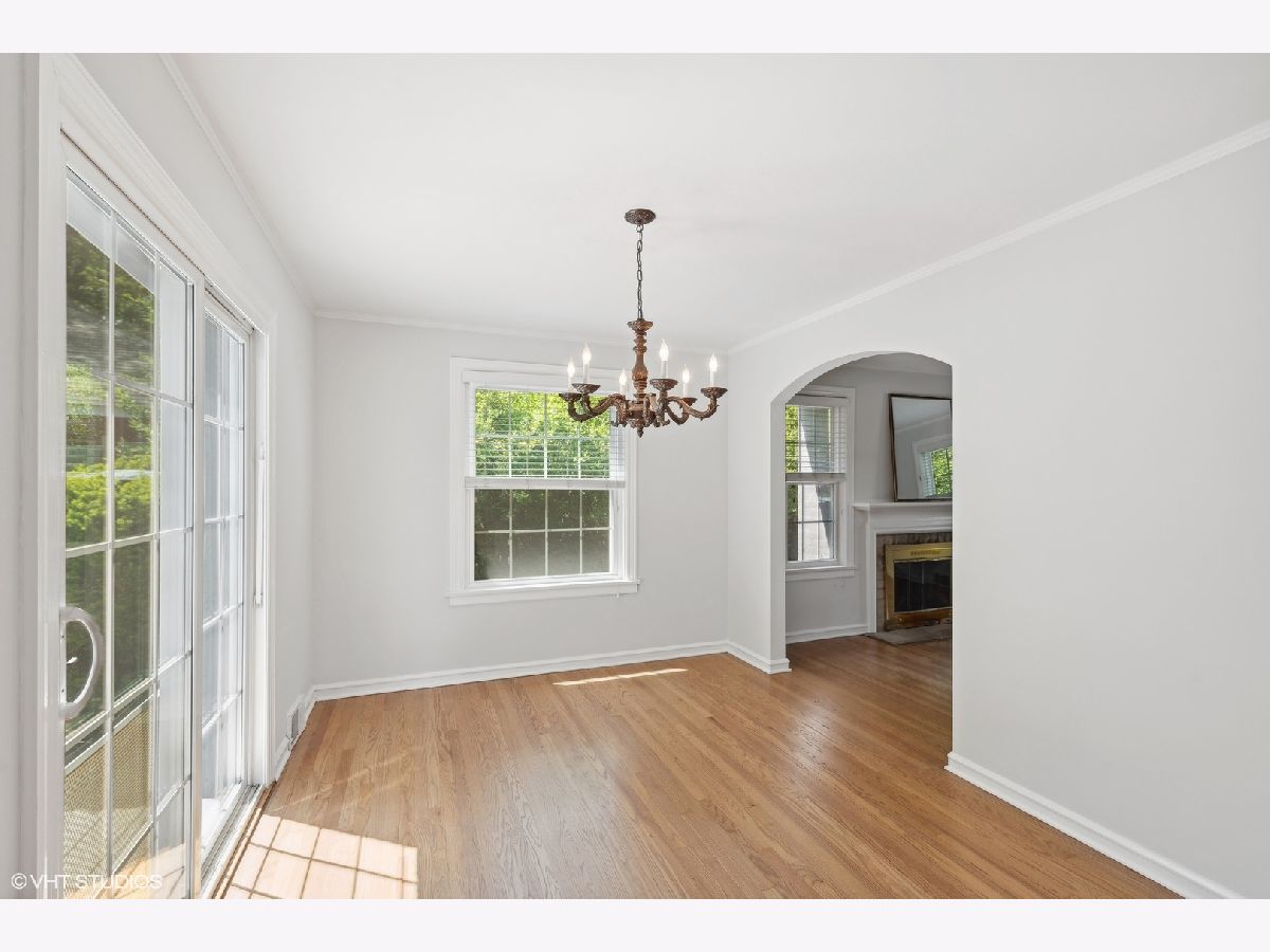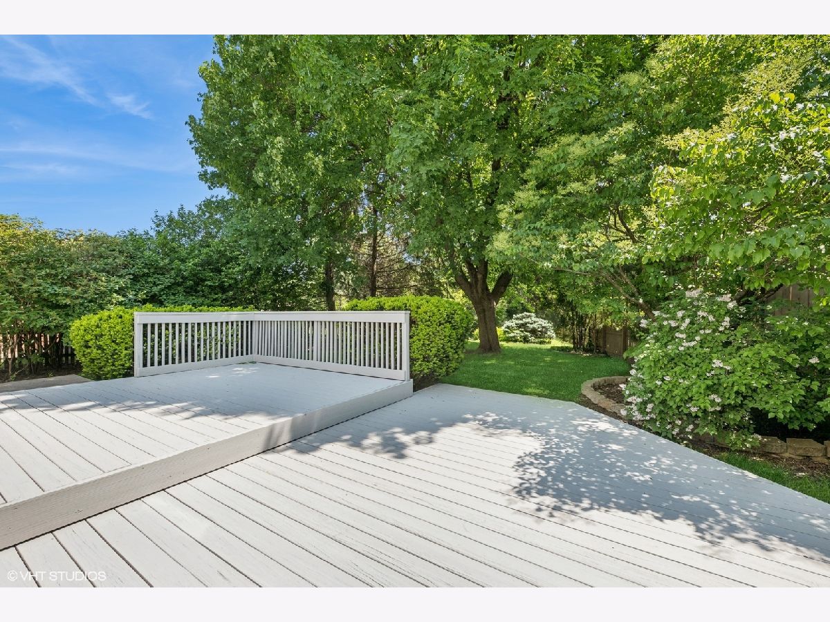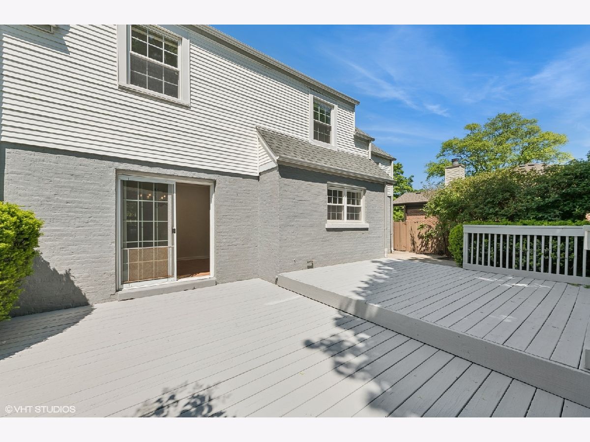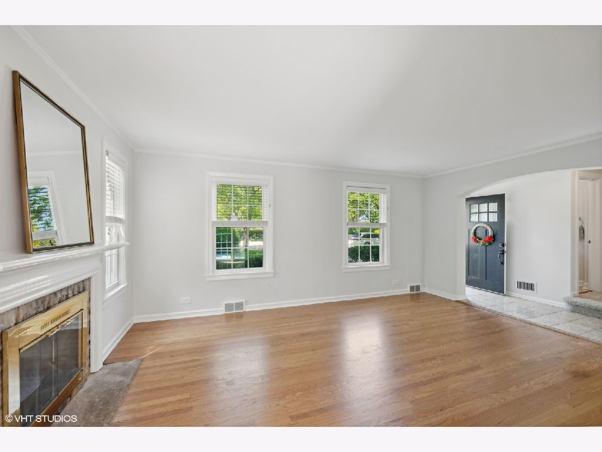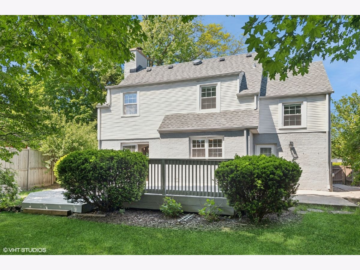 Nestled in a charming neighborhood, this exquisite two-story home seamlessly blends timeless elegance with modern conveniences. Step into the inviting foyer, adorned with porcelain tile flooring and a guest coat closet, setting the tone for the sophisticated interiors. The expansive living room boasts rich hardwood flooring, intricate crown molding, and a cozy wood-burning fireplace with a stately wood mantle, creating a perfect setting for intimate gatherings. Adjacent, the dining room features hardwood flooring, crown molding, and a sliding glass door that opens to a delightful wood deck, ideal for alfresco dining. The kitchen is a chef's dream, with sleek porcelain tile flooring, a suite of GE appliances including an oven/range, microwave, and dishwasher, along with a Whirlpool refrigerator. The double sink, complete with disposal and brushed nickel plumbing fixture, adds to the kitchen's functionality. A conveniently located powder room on the main level features porcelain tile flooring, a neutral vanity, a Kohler commode, and a medicine cabinet for additional storage. Ascend to the second level, where the primary bedroom offers a serene retreat with hardwood flooring, crown molding, and two ample closets. Two additional bedrooms also feature hardwood flooring, crown molding, and generous closets. The upper level includes a linen closet and a walk-in closet, ensuring ample storage space. The shared bathroom is beautifully appointed with ceramic tile flooring, a neutral vanity, a shower/tub combination with ceramic tile surround, a Kohler commode, and a medicine cabinet. The unfinished basement presents a versatile recreation area, a laundry space equipped with an Amana dryer, GE washer, utility sink, American Standard furnace, and a GE hot water heater (40 gal, 2005). Practicality meets style with a sump pump featuring a battery backup, ensuring peace of mind. The home's exterior, a blend of brick and vinyl, is complemented by an asphalt driveway, a spacious patio, and a newly installed roof, offering both durability and curb appeal. Other improvements include: chimney and flue were rebuilt, freshly painted, hardwood floors refinished and so much more! This residence is a perfect blend of luxury and comfort, ready to welcome you home and superbly located near Metra, library, parks, pool, golf and fabulous schools!